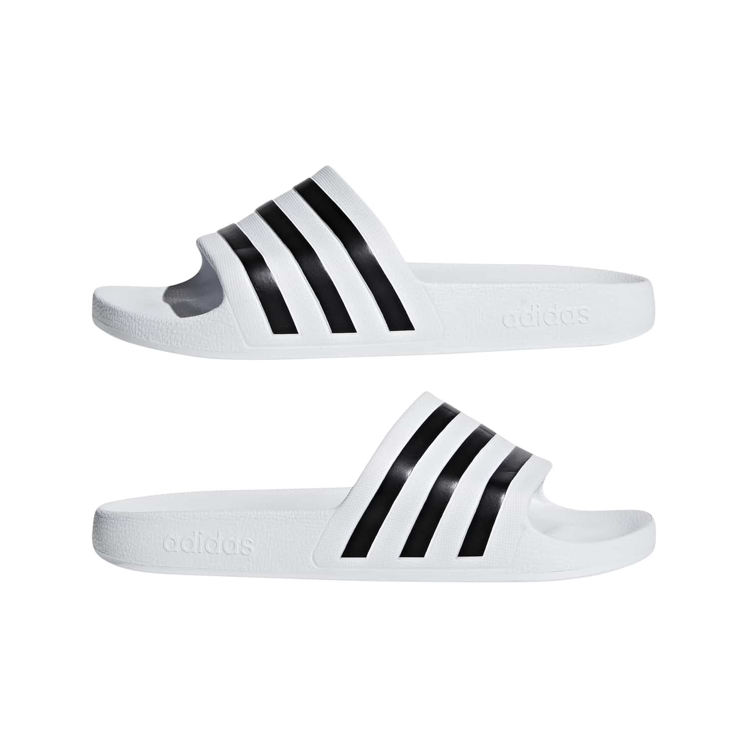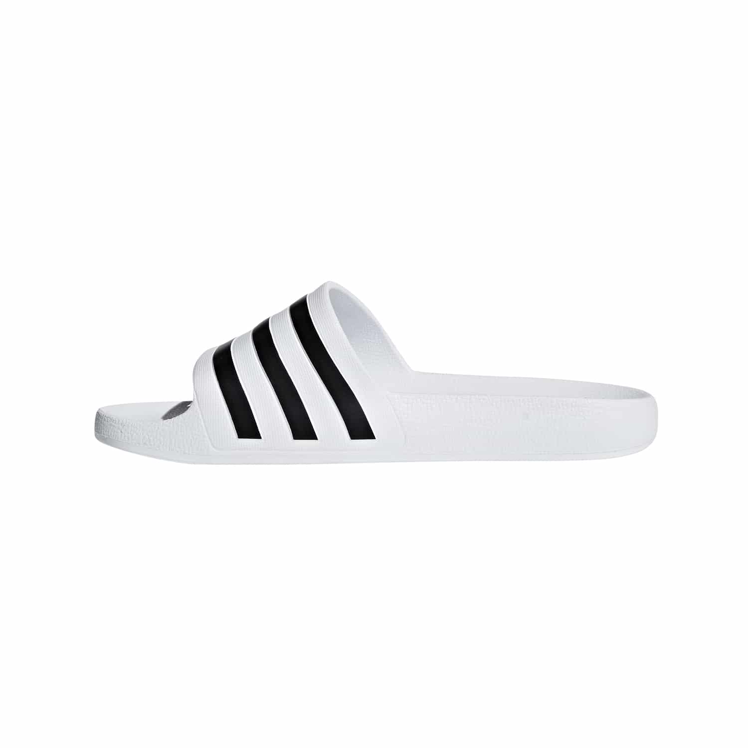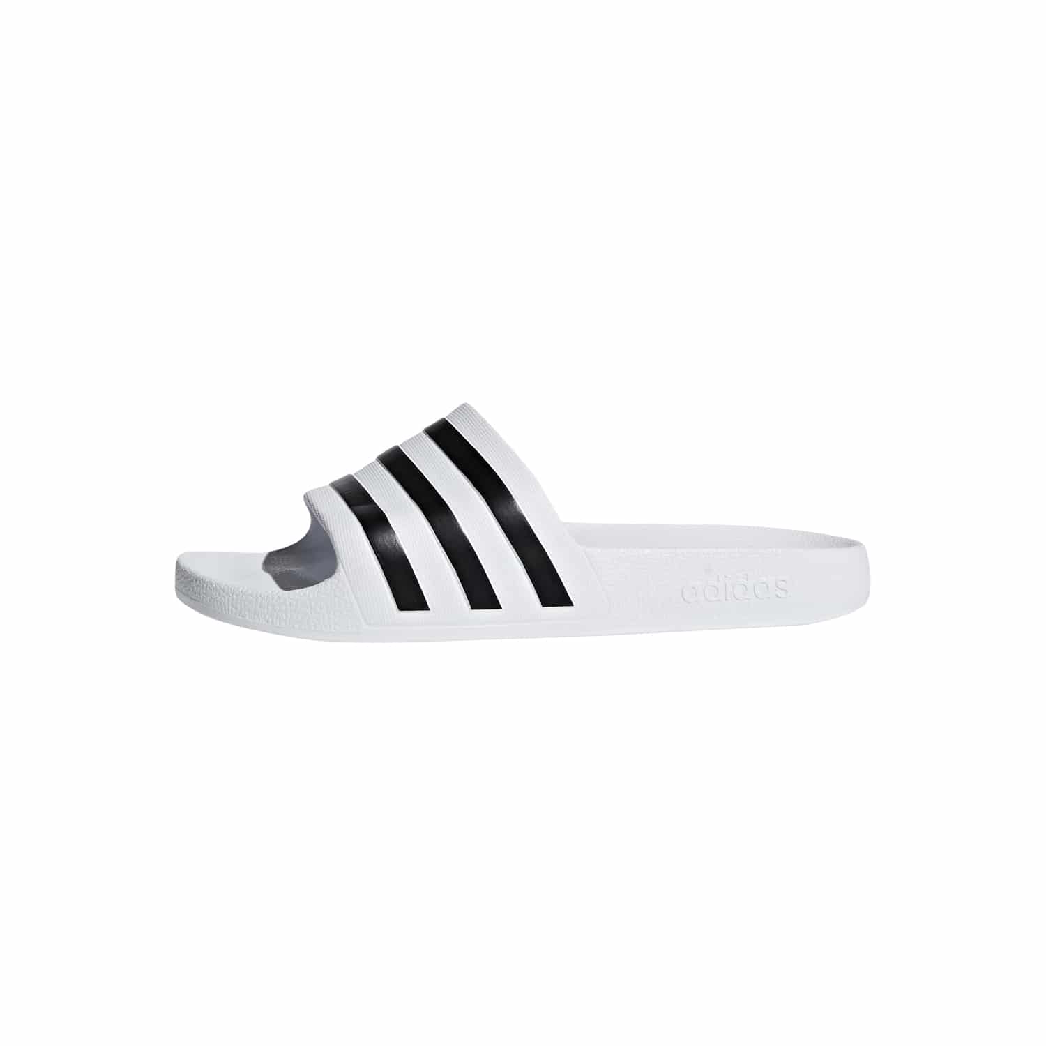 Die adidas Adilette Aqua sind leichte Badeschlappen für Herren. Sie bestehen aus einem synthetischen Obermaterial, das schnell trocknet und für ein angenehmes Tragegefühl sorgt. Das konturierte Fußbett bietet Komfort und Unterstützung für deine Füße, während die rutschfeste Außensohle einen sicheren Halt auf nassen Oberflächen gewährleistet. Mit ihrem klassischen Design, das die berühmten adidas 3-Streifen enthält, verleihen die Adilette Aqua deinem Sommer-Look einen sportlichen Touch. Hol dir diese praktischen und stylischen Badeschlappen für den Pool, den Strand oder die Dusche.
