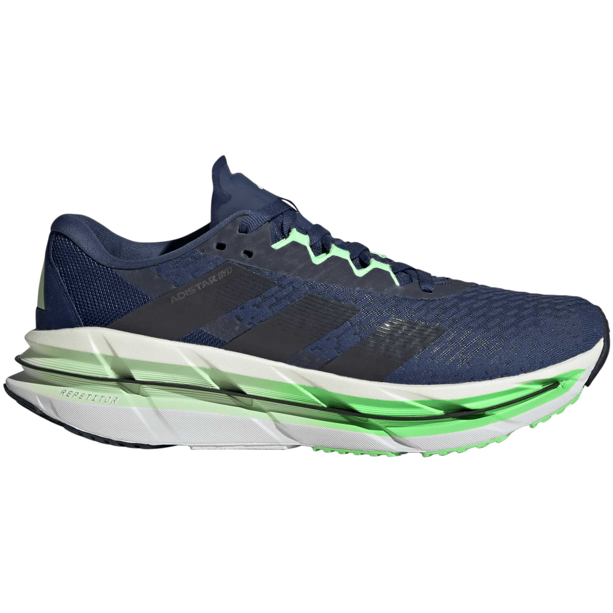 Der Adistar Byd ist der ideale Laufschuh für lange Strecken und konstante Pace – perfekt für dein Ausdauertraining. Die REPETITOR 2.0 Zwischensohle bietet ein energiegeladenes Laufgefühl mit gezielter Stabilisierung im Fersenbereich. So läufst du gleichmäßig und effizient – auch bei hohen Distanzen. Für zusätzliche Dynamik sorgt die integrierte Distance Drive Platte mit Carbonfasern, während die Kombination mit Lightstrike Pro eine reaktive Dämpfung garantiert. Die Continental™ Gummiaußensohle liefert dir zuverlässigen Grip auf nassem wie trockenem Untergrund – ideal für wechselnde Wetterbedingungen. Der Schuh wird mit mindestens 20 % recycelten Materialien hergestellt – ein Beitrag zur Reduktion von Plastikmüll und für nachhaltigere Sportausrüstung.