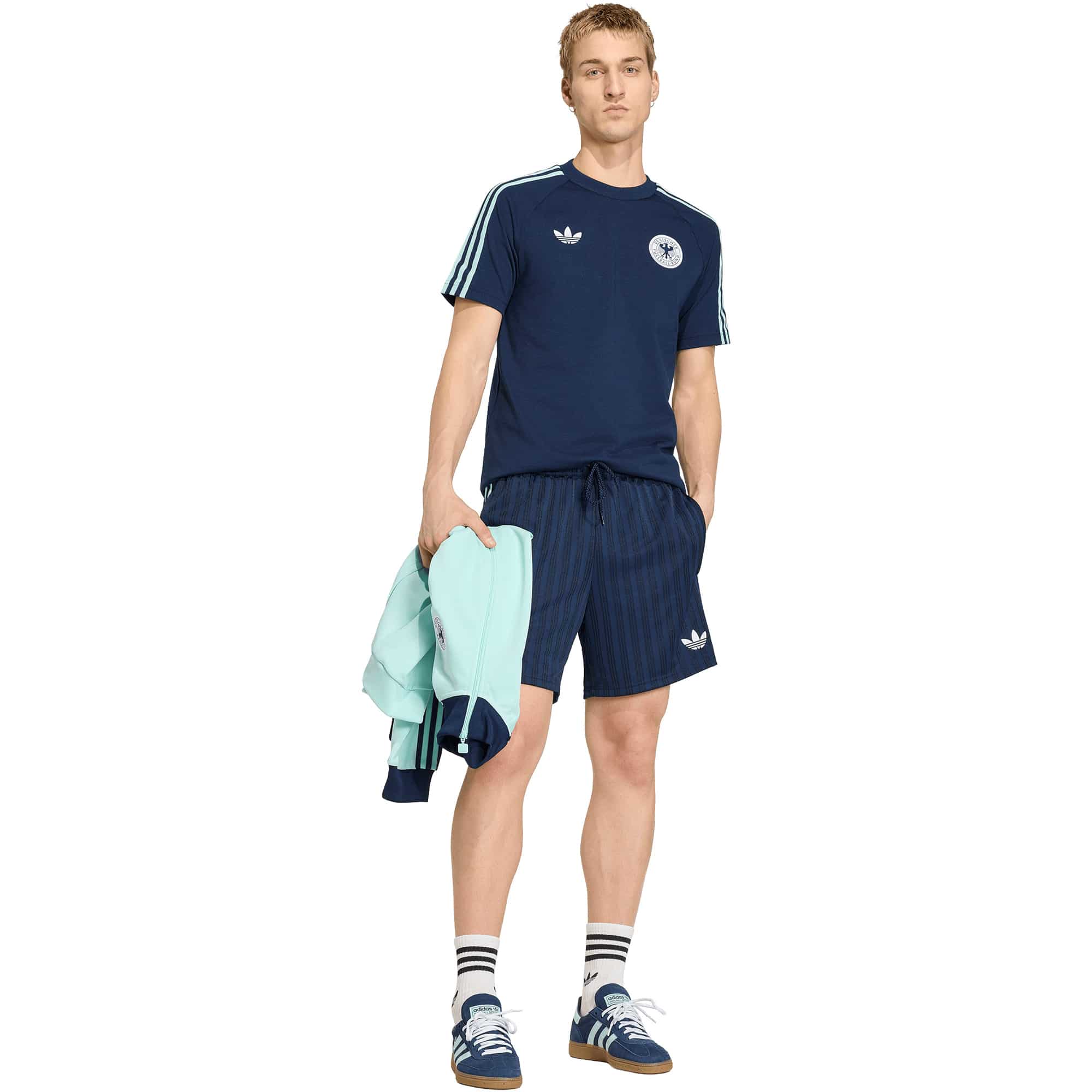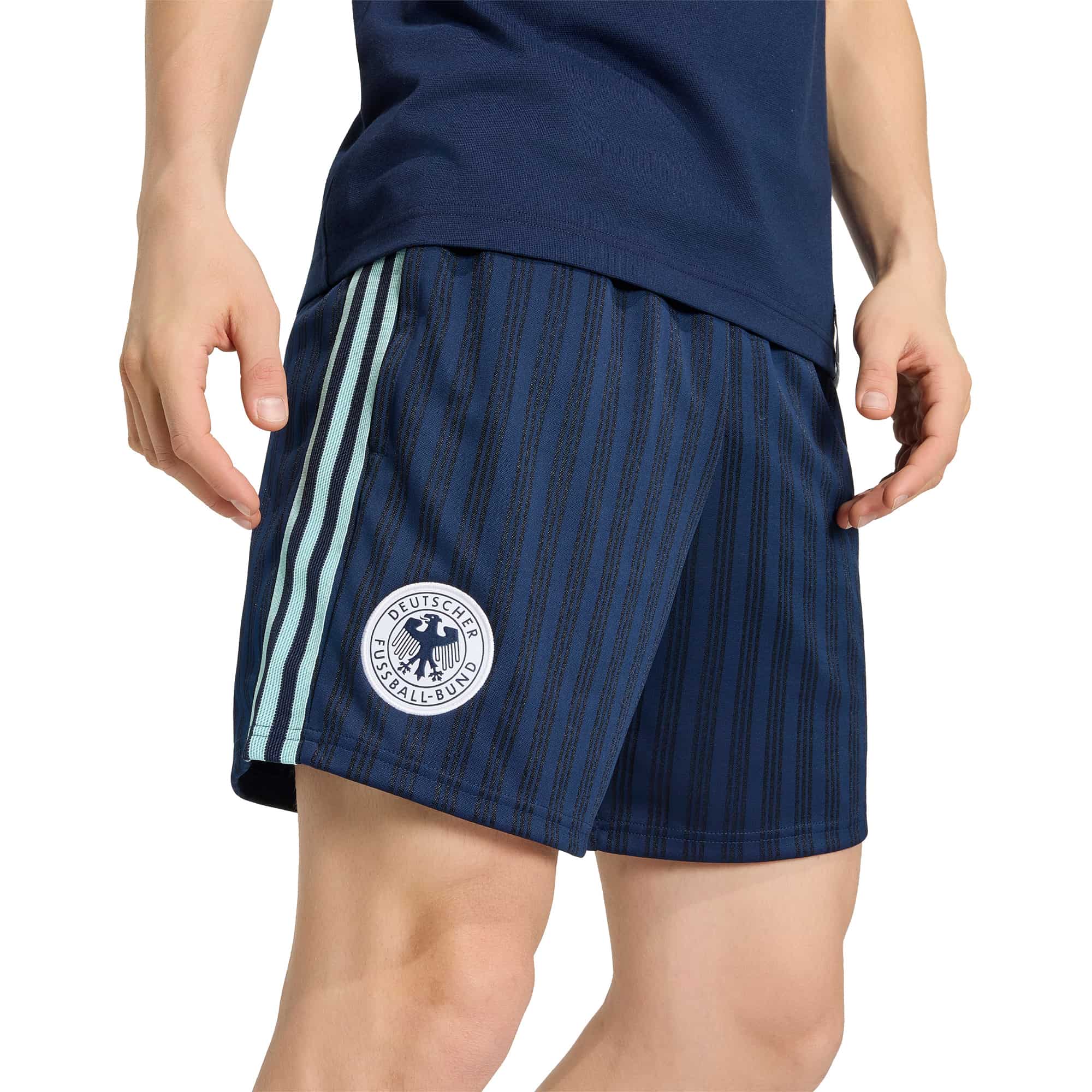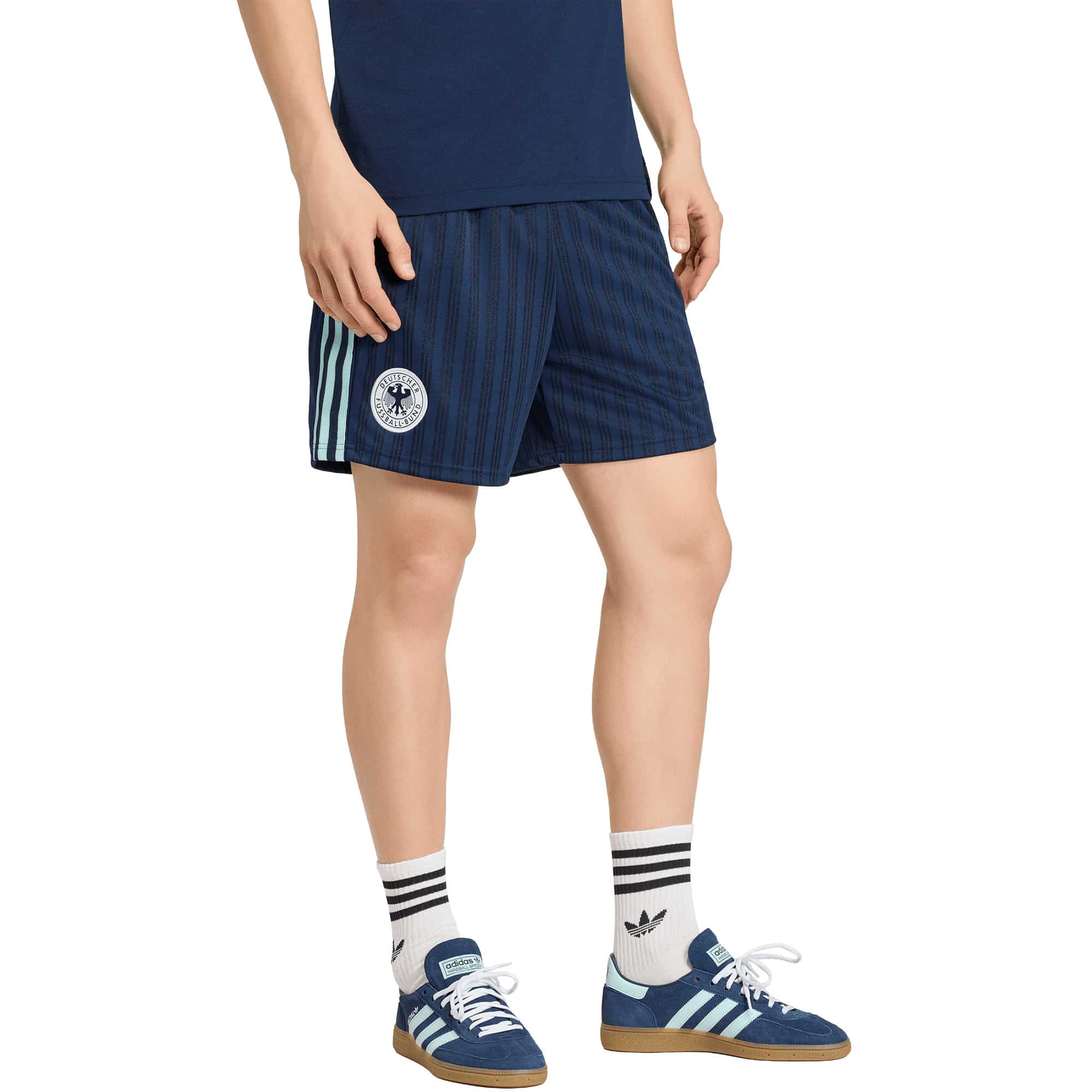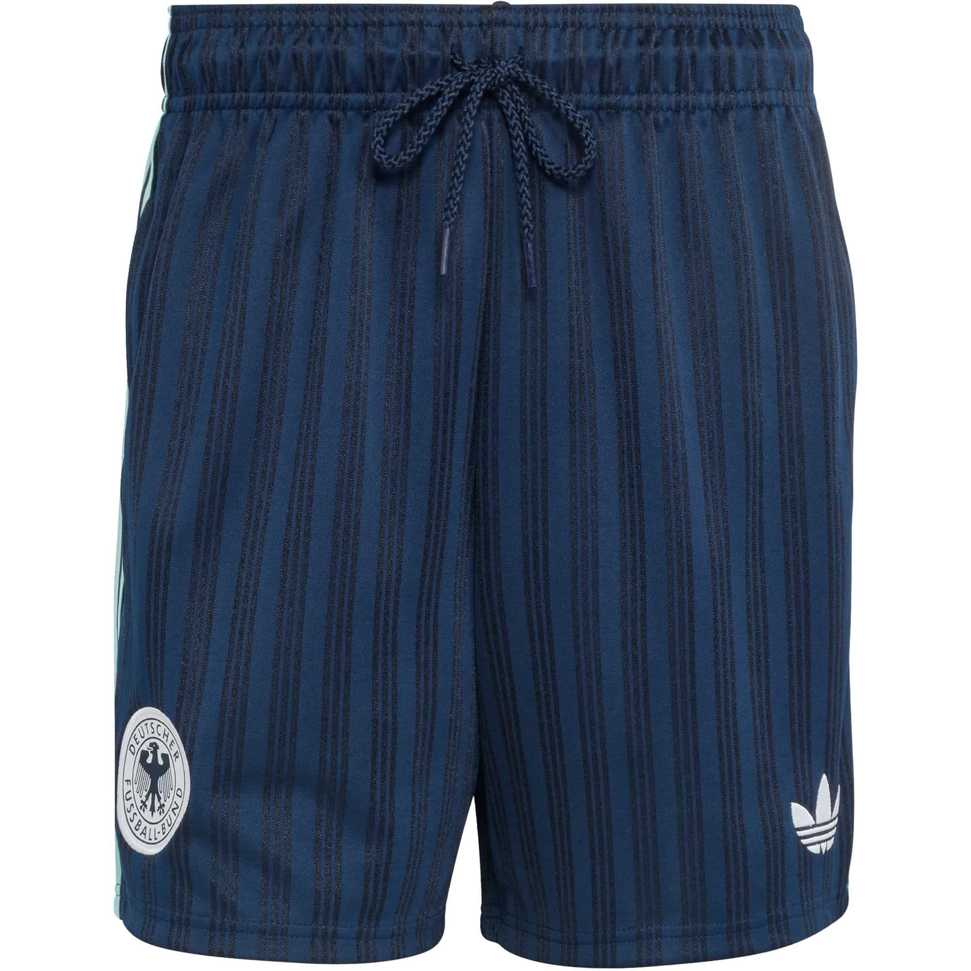 Die DFB Originals Shorts bringen Fans ein Stück Fußballtradition direkt in den Alltag und verbinden die historischen Farben der Auswärtstrikots mit modernem Komfort. Sie sind perfekt für alle, die ihr Leben dem Fußball verschrieben haben und ihren Style mit sportlicher Leidenschaft ausdrücken möchten. Der lockere Schnitt und der mittelhohe Bund bieten volle Bewegungsfreiheit, egal ob beim Entspannen oder unterwegs, während der praktische Kordelzug eine individuell anpassbare Passform ermöglicht. Die hochwertige Jacquard-Konstruktion sorgt für ein angenehmes Tragegefühl und einen markanten Look, während das ikonische Trefoil Branding die unverwechselbare adidas DNA verkörpert. Mit diesen Shorts zeigen Fans ihre Liebe zum Spiel und kombinieren dabei Funktionalität mit lässigem Style.