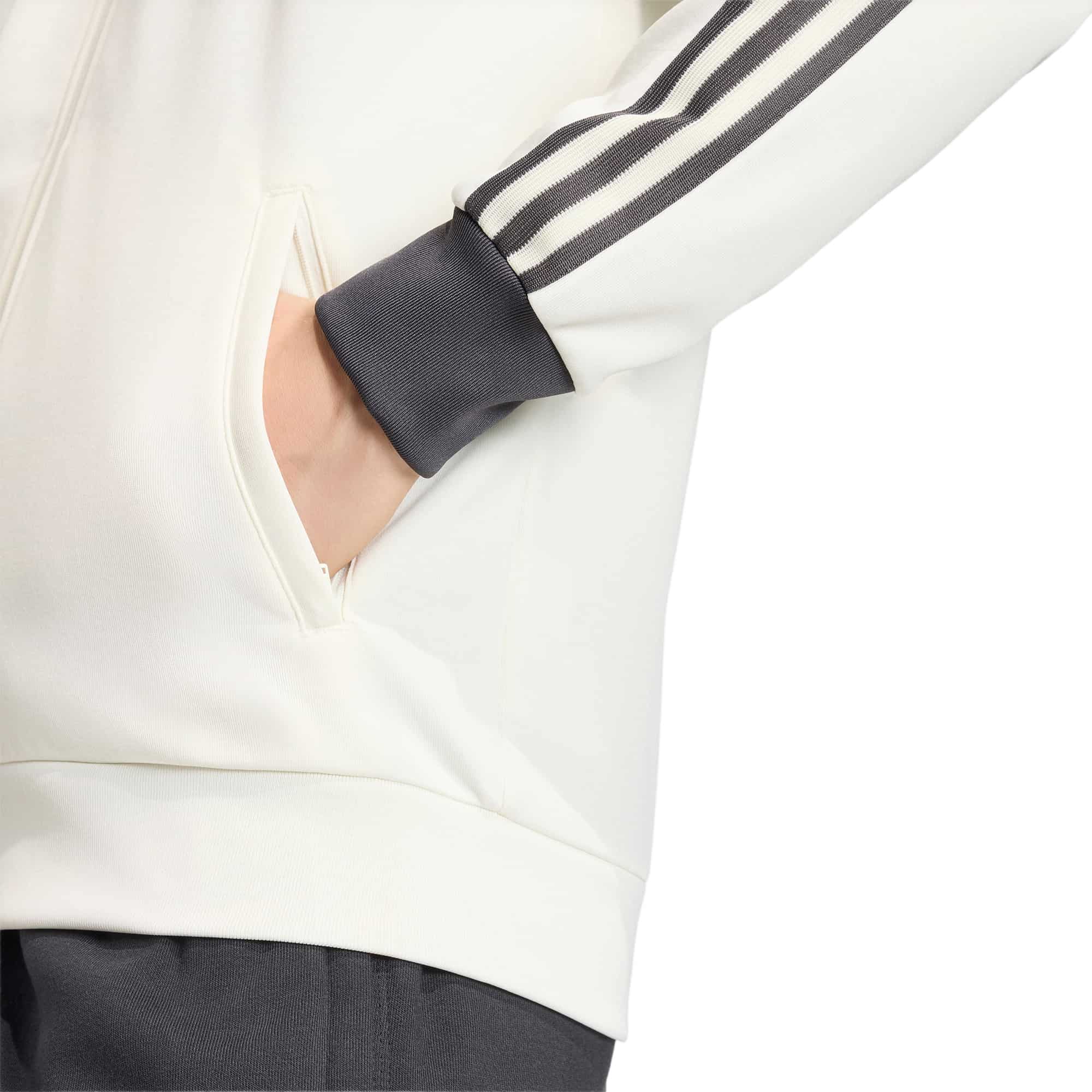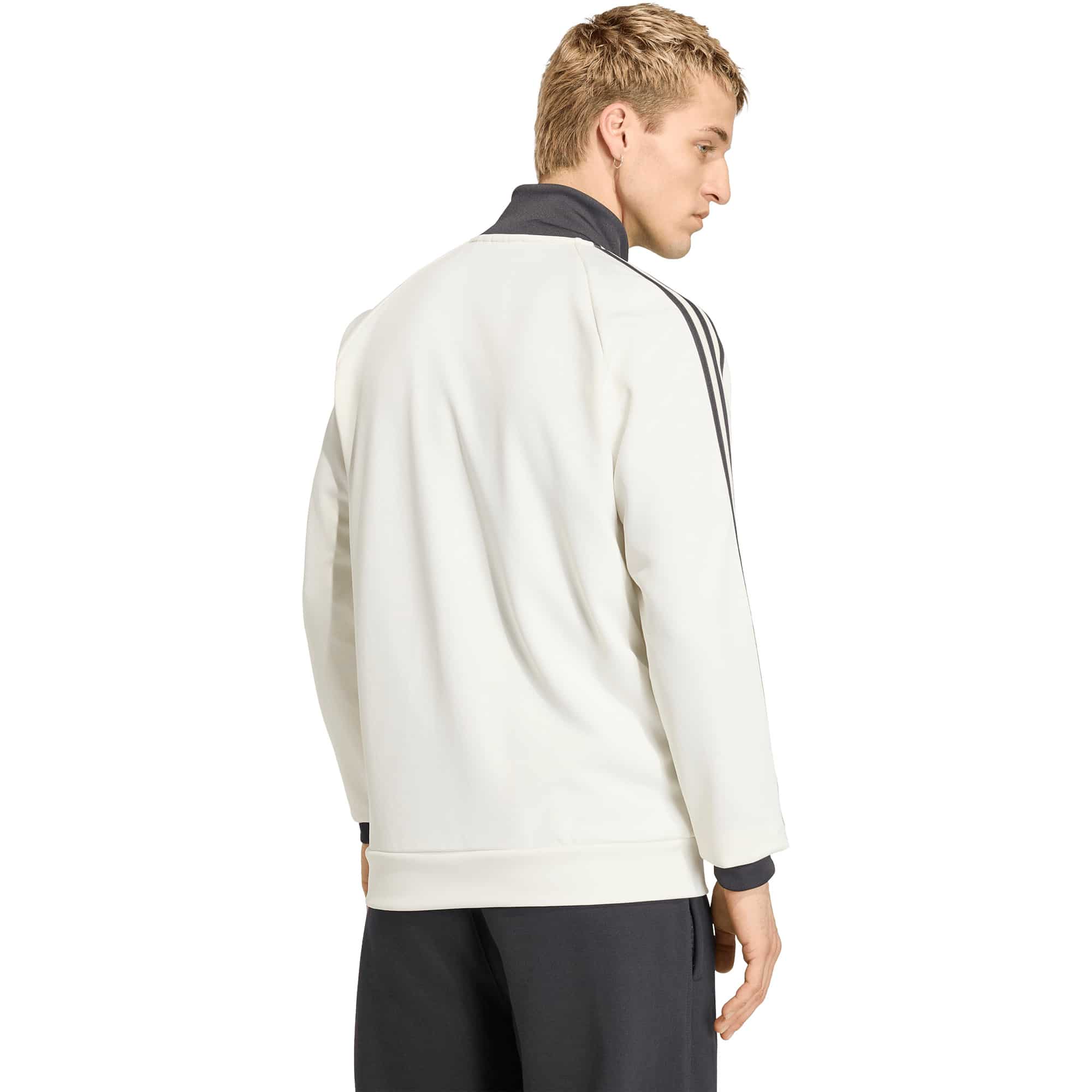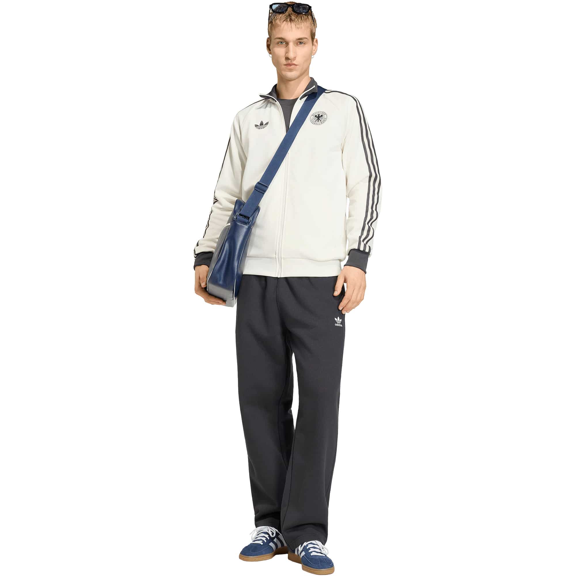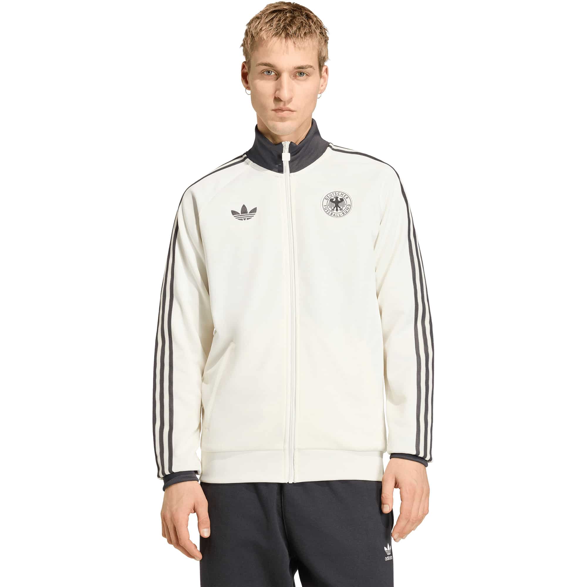 Die adidas DFB Originals Trainingsjacke von adidas verbindet Fußballtradition mit modernem Komfort und ist ein vielseitiger Begleiter für Freizeit, Stadionbesuche oder den Alltag. Inspiriert vom Auswärtstrikot der Nationalmannschaft, bringt sie die Fußballkultur in einen stilvollen, alltagstauglichen Look. Das weiche Interlock-Material bietet Strapazierfähigkeit und angenehmen Tragekomfort, während die reguläre Passform Bewegungsfreiheit garantiert. Das markante Trefoil-Logo setzt einen authentischen adidas-Akzent und unterstreicht den sportlichen Heritage-Charakter, sodass die Jacke zeitlos, selbstbewusst und stilvoll zugleich wirkt.