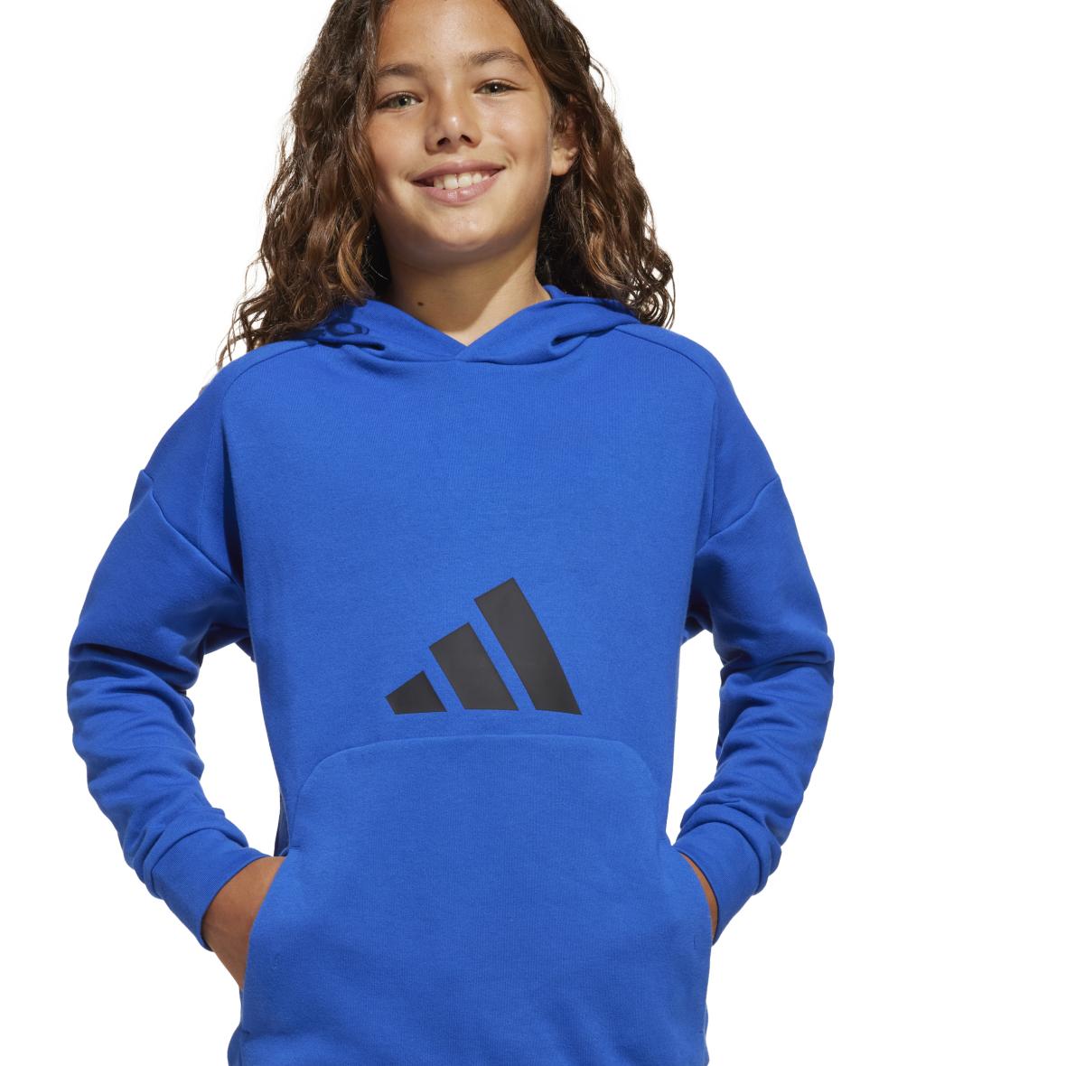 Dieser adidas Hoodie für Kinder und Jugendliche ist für den täglichen Einsatz konzipiert – ob in der Schule, unterwegs oder zu Hause. Das weiche Spacer-Material bietet ein angenehm leichtes und bequemes Tragegefühl über den ganzen Tag hinweg. Rippbündchen an Ärmeln und Saum sorgen für eine gute Passform, während das dezente 3-Streifen Logo auf der Brust einen sportlichen Akzent setzt. Die reguläre Passform macht den Hoodie vielseitig kombinierbar mit Jeans, Jogginghose oder Shorts.