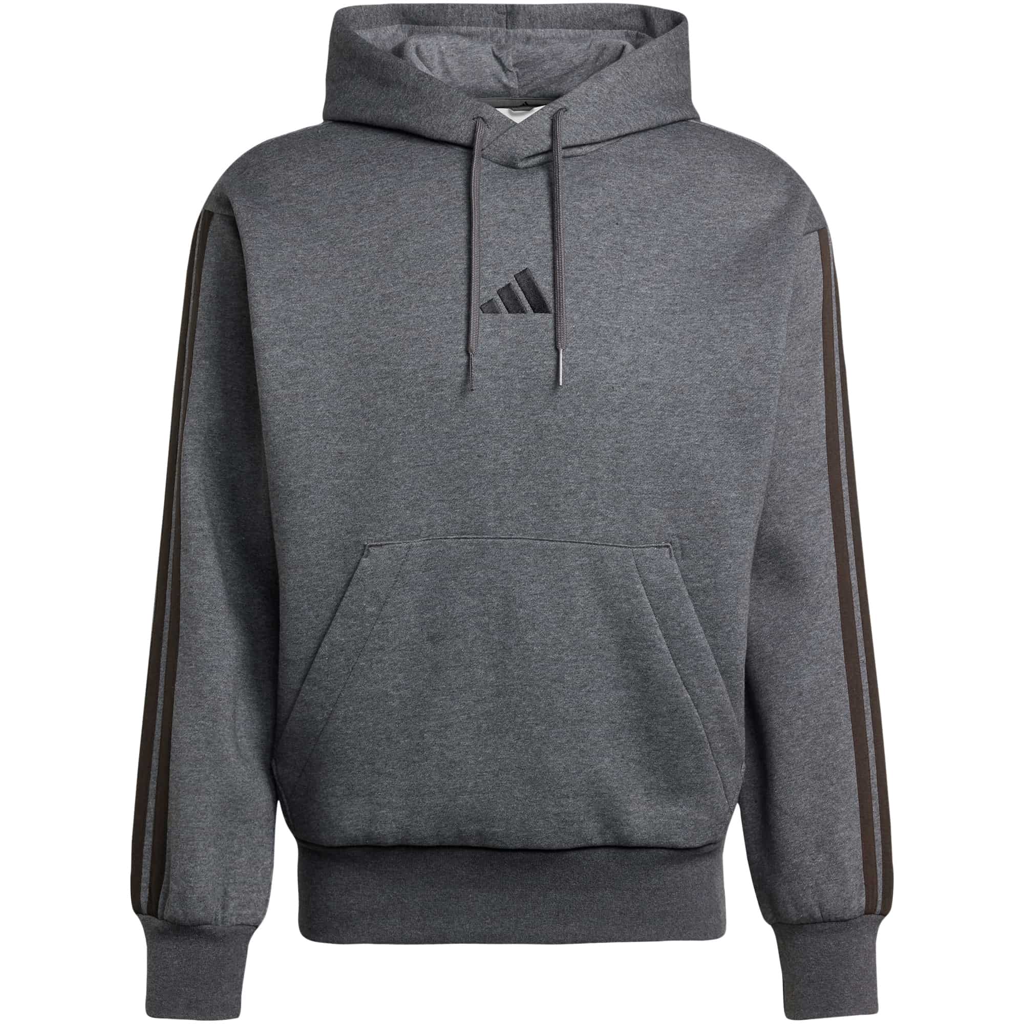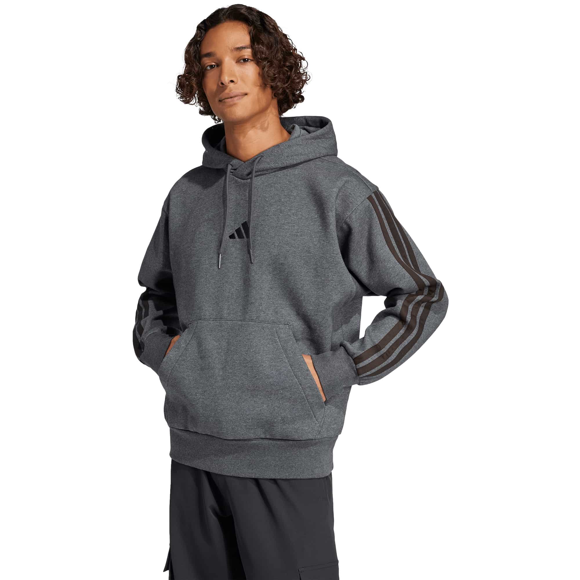 Der adidas 3 Stripes Herren Hoodie überzeugt mit seinem lässigen Design und hohem Tragekomfort. Er besteht aus einem weichen Baumwollmix mit flauschiger Innenseite und ist ideal zum Entspannen oder für den Alltag. Klassische Details wie die Kängurutasche und das aufgestickte 3-Streifen-Logo auf der Brust runden den Look ab.