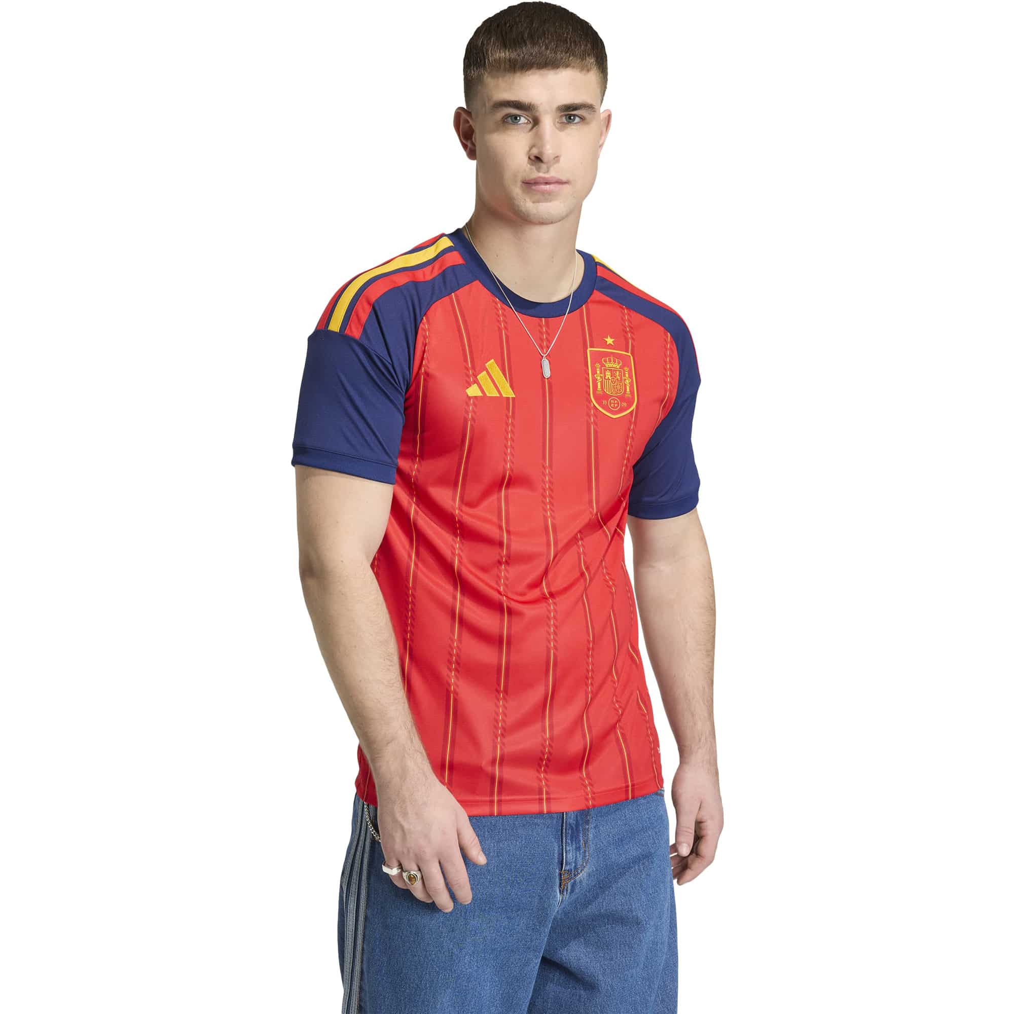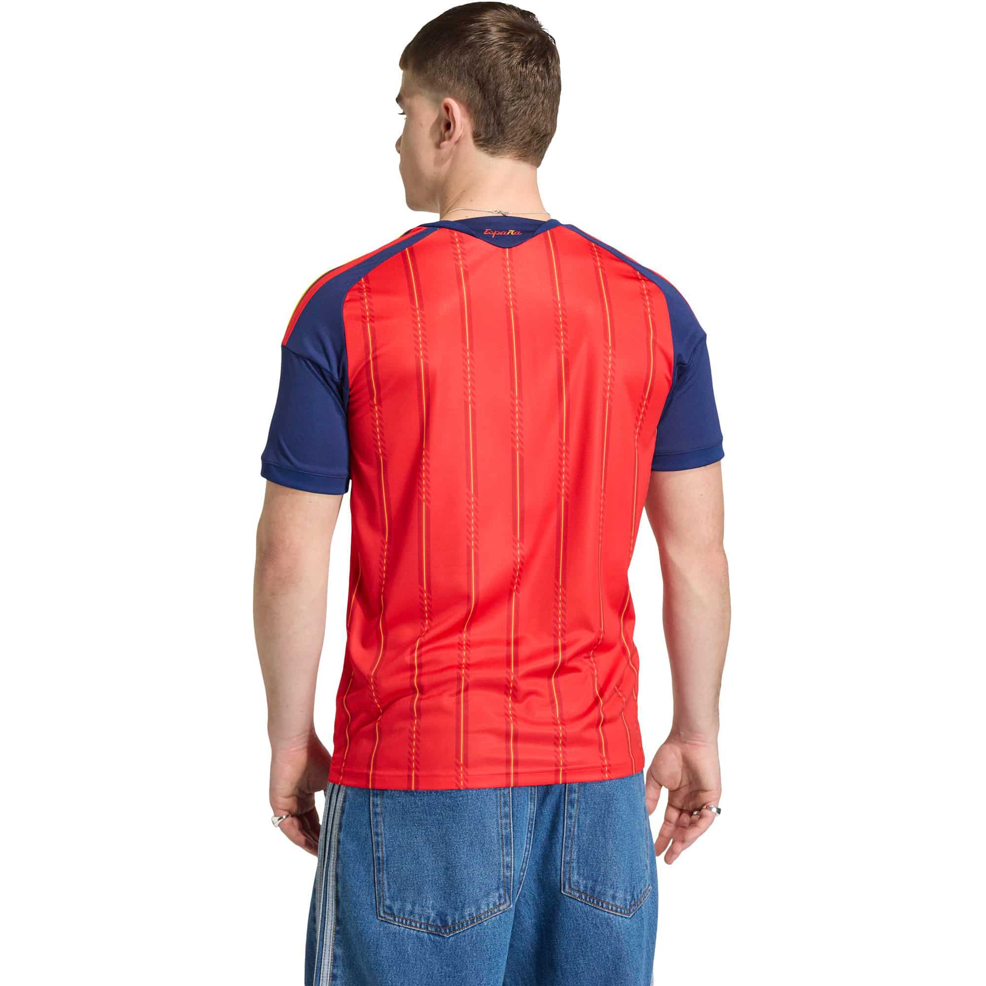 Entdecke das Spanien 2026 Herren Fußballtrikot von adidas, das für aktive Männer und Frauen entworfen wurde. Dieses Trikot vereint Stil und Funktionalität, um dir während des Spiels den optimalen Komfort zu bieten. Die atmungsaktive Climacool-Technologie hält dich kühl, während das feuchtigkeitsableitende AEROREADY-System dafür sorgt, dass du trocken bleibst, egal wie intensiv dein Einsatz ist. Das Material ist teilweise aus recyceltem Material gefertigt, was diesen Artikel nicht nur für Sportbegeisterte, sondern auch für umweltbewusste Käufer attraktiv macht. Mit seinem körperbetonten Schnitt und dem modernen Rundhalsausschnitt schmiegt sich das Trikot perfekt an deinen Körper, während der kurzärmelige Stil für Bewegungsfreiheit sorgt. Egal, ob beim Training oder im Spiel, du wirst in dieser Ausstattung glänzen. Halte dich nicht zurück, zeige deinen Teamgeist und erlebe, wie dieses Trikot dein Spiel auf ein neues Level hebt.