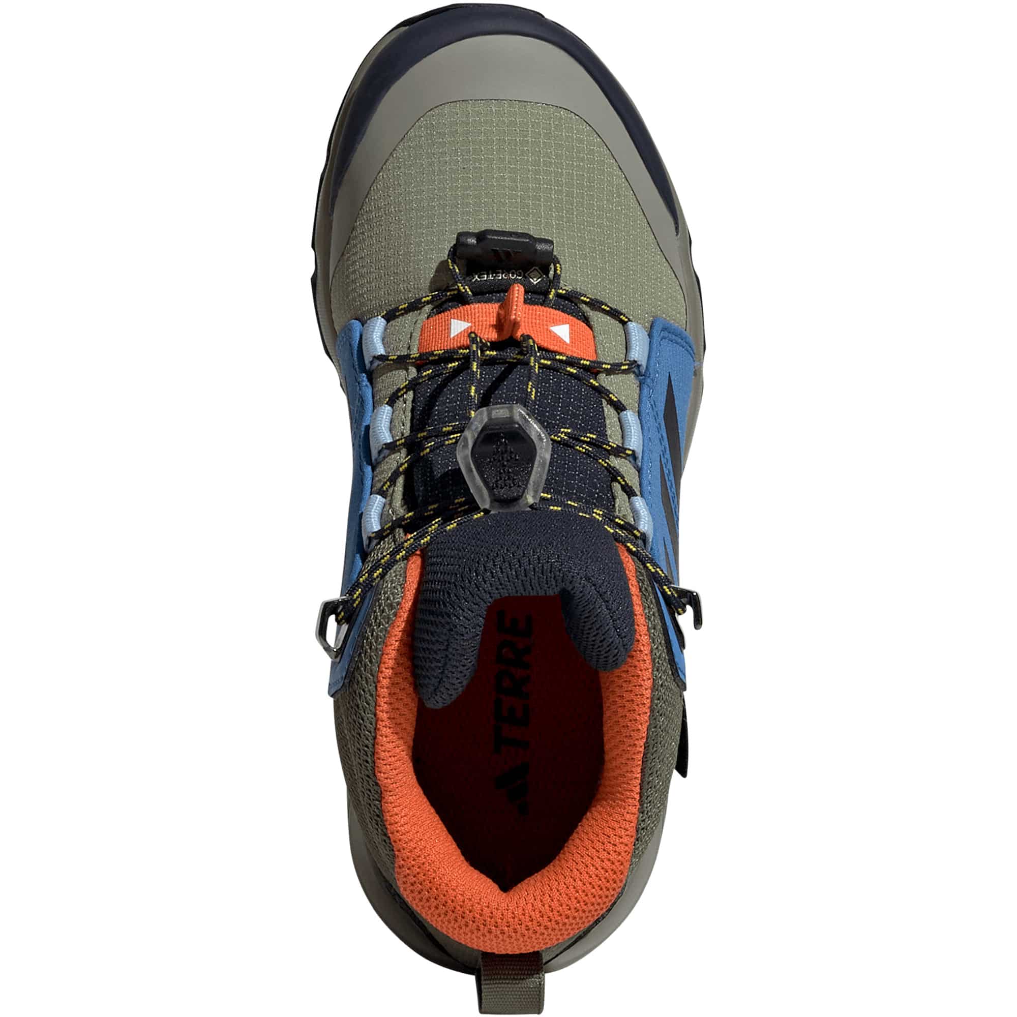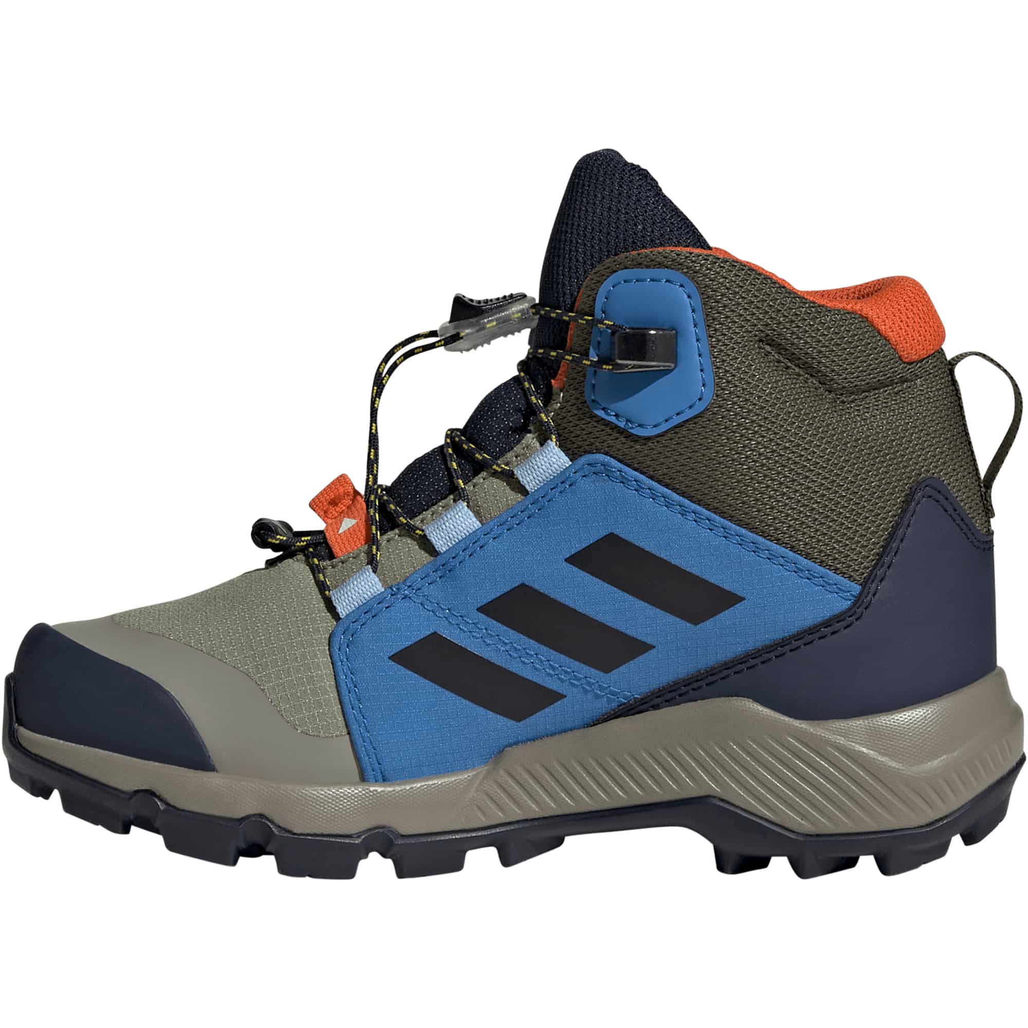 Die adidas Terrex Mid GORE-TEX Wanderschuhe für Kinder sind ideal für kleine Outdoor-Fans, die bei jedem Wetter draußen aktiv sind. Ob bei Regen, Matsch oder Sonnenschein – mit diesem Schuh sind junge Abenteurer*innen bestens ausgerüstet. Die integrierte GORE-TEX Membran schützt zuverlässig vor Nässe und sorgt gleichzeitig für ein atmungsaktives Tragegefühl, damit Kinderfüße auch bei längeren Touren angenehm trocken bleiben. Die leichte EVA-Zwischensohle bietet eine komfortable Dämpfung bei jedem Schritt und entlastet junge Füße – ob beim Toben im Garten oder bei Ausflügen in die Natur. Für zusätzlichen Schutz sorgen abriebfeste Overlays, die den Schuh besonders strapazierfähig machen. Das praktische Speed-Lacing System ermöglicht ein schnelles An- und Ausziehen – ideal für Kinder, die keine Zeit verlieren wollen. Die Traxion Außensohle bietet optimalen Halt auf rutschigen Wegen und unebenem Untergrund.