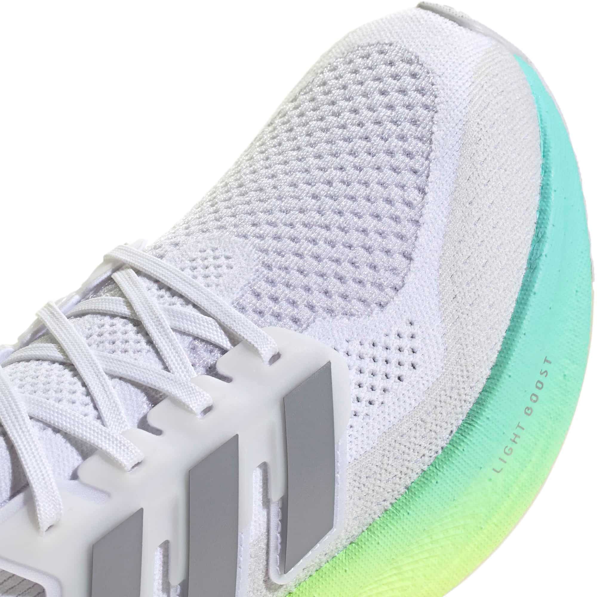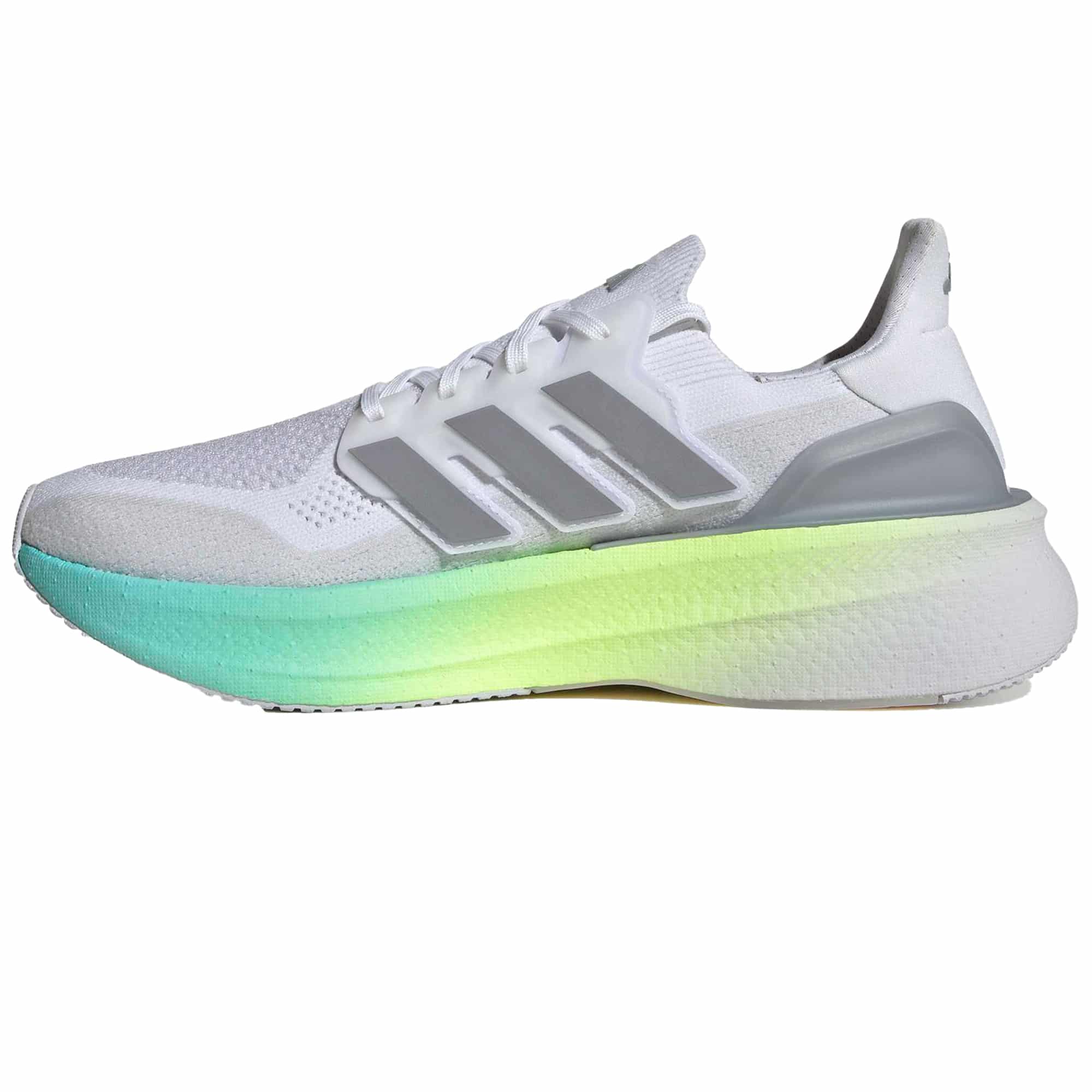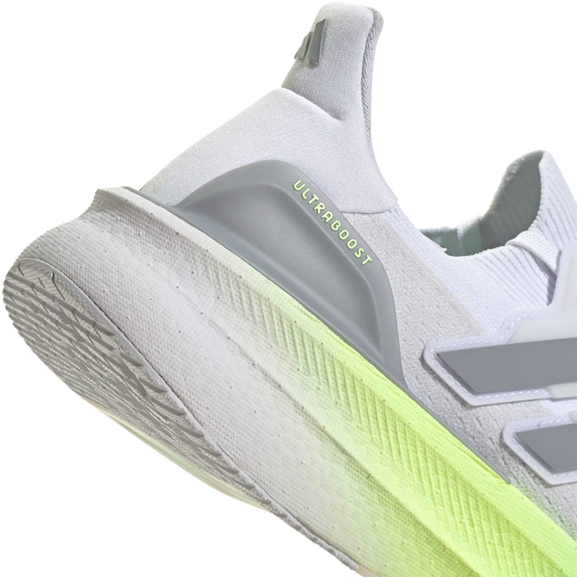 Der adidas Ultraboost 5 liefert mit seiner Light BOOST-Zwischensohle eine spürbare Energierückgabe und sorgt so für ein dynamisches Lauferlebnis. Das nahtlose Primeknit-Obermaterial passt sich flexibel dem Fuß an und bietet gleichzeitig Stabilität, wodurch ein sockenähnliches Tragegefühl entsteht. Dank des Torsion-Systems bleibt die Bewegungsfreiheit zwischen Ferse und Vorfuß erhalten, was das Abrollen sehr geschmeidig macht. Die Continental™-Gummiaußensohle garantiert exzellenten Grip auf unterschiedlichstem Untergrund. Zusätzlich setzt der Schuh auf Nachhaltigkeit und ist zu mindestens 20 % aus recycelten Materialien gefertigt.