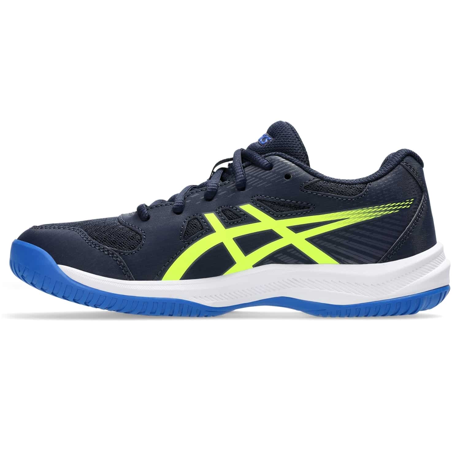 Der ASICS Upcourt 6 ist ein vielseitiger und leichter Hallensportschuh für Kinder, der speziell für schnelle Bewegungen und intensive Trainingseinheiten in der Halle entwickelt wurde. Das atmungsaktive Mesh-Obermaterial sorgt für gute Belüftung und hohen Tragekomfort, während strapazierfähige Verstärkungen an stark beanspruchten Stellen zusätzliche Stabilität bieten. Die flexible Passform unterstützt natürliche Bewegungen, und die verstärkte Fersenkappe sorgt für sicheren Halt bei schnellen Richtungswechseln. Der Upcourt 6 eignet sich ideal für Schulsport, Training und Freizeitspiele in der Halle – ein komfortabler und robuster Begleiter für aktive Kids.