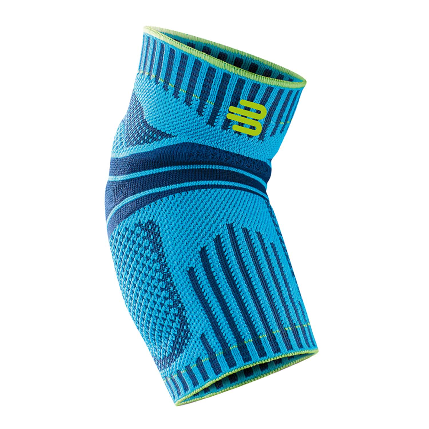 Der Sports Elbow Support von Bauerfeind Sports umschließt den Ober- und Unterarm und verbessert durch leichte, wohltuende Kompression die Bewegung des Ellenbogens während längerer Sporteinheiten und schützt vor Überlastung. Durchblutung und Stoffwechsel werden gefördert, denn bei Bewegung massieren die Pelotten in Kombination mit dem Gestrick der Bandage das Bindegewebe und die Muskeln.