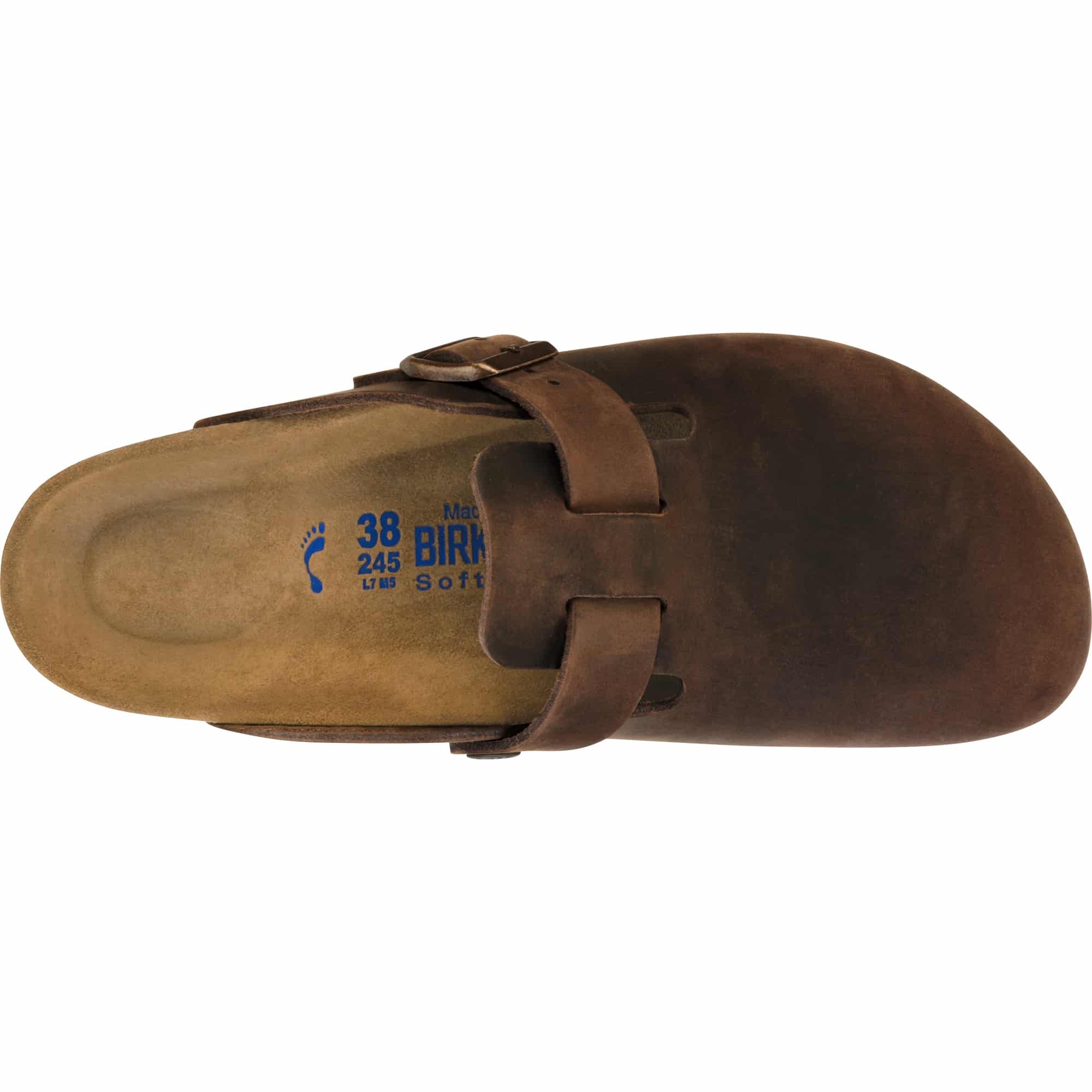 Der BIRKENSTOCK Boston Soft-Footbed Narrow ist ein moderner Klassiker in schmaler Passform, der sich das ganze Jahr über komfortabel tragen lässt. Das individuell verstellbare Riemen-Design sorgt für einen sicheren Halt und passt sich jeder Fußform optimal an. Das Obermaterial besteht aus besonders dickem, geöltem Nubukleder mit offenkantiger Verarbeitung, das Robustheit und edle Optik vereint. Das Soft-Fußbett aus Kork-Latex ist anatomisch geformt, aber zusätzlich leicht gepolstert, wodurch jeder Schritt noch weicher und komfortabler wirkt. Es unterstützt das Längs- und Quergewölbe und sorgt für ein angenehmes Laufgefühl – besonders für schmale Füße. Die Veloursleder-Decksohle sorgt für ein angenehmes Fußklima, während die EVA-Laufsohle leicht, flexibel und stoßdämpfend ist. Die individuell verstellbare Dornschnalle aus Metall rundet das durchdachte Design ab. Gefertigt in Deutschland steht der Boston Soft-Footbed Narrow für hochwertige Materialien, Langlebigkeit und den typischen BIRKENSTOCK-Komfort – besonders komfortabel für schmale Füße.
