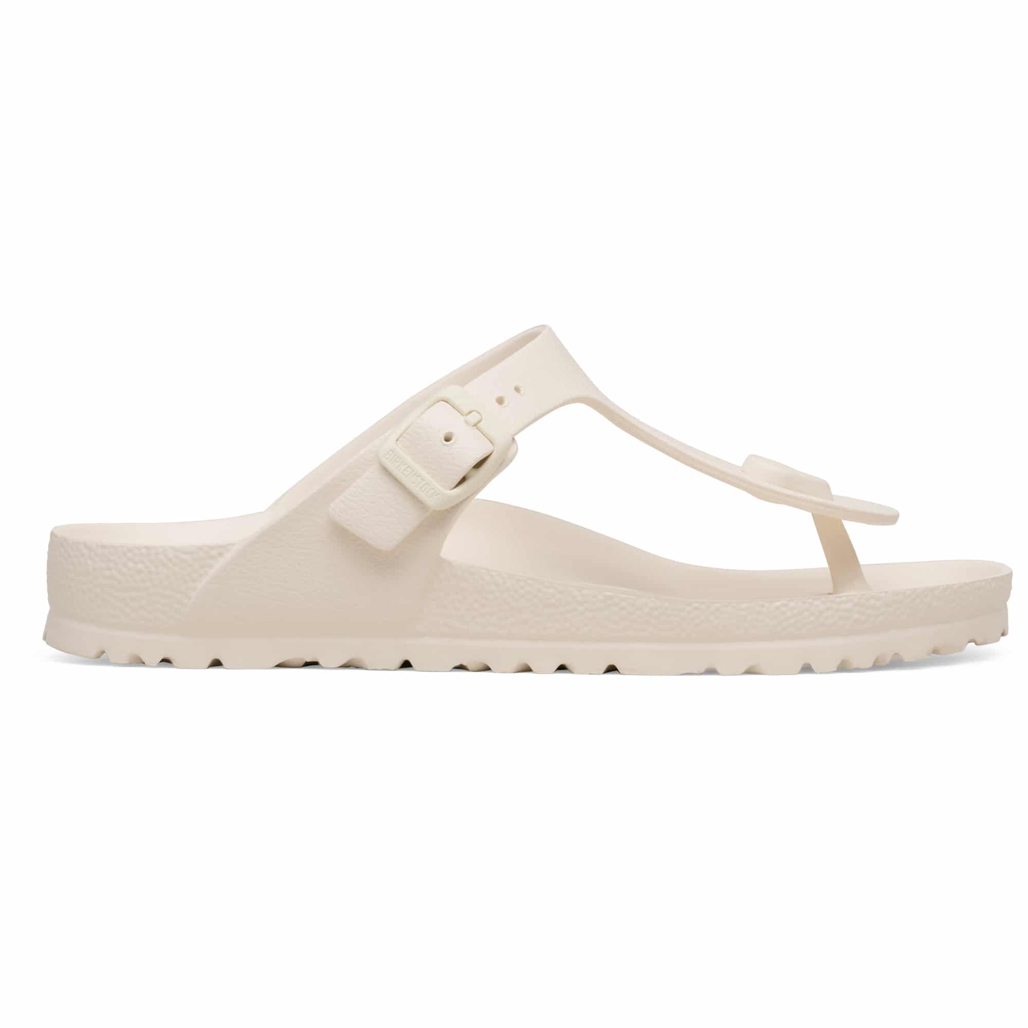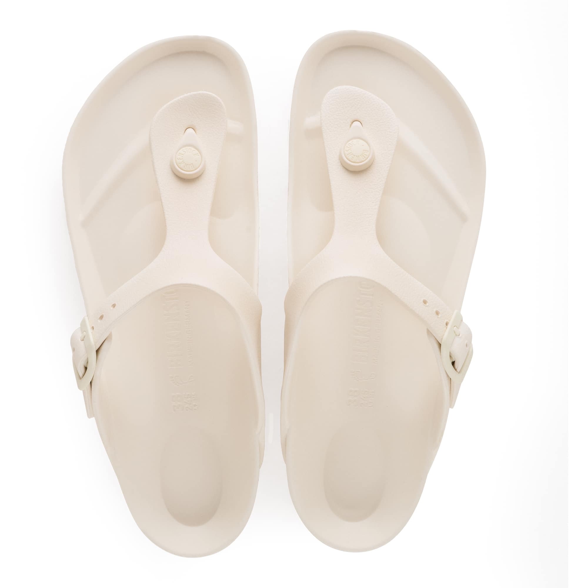Der BIRKENSTOCK Gizeh ist ein zeitloser Klassiker, der sich an der bewährten Kork-Sandale orientiert und in dieser Variante vollständig aus dem besonders leichten und flexiblen Material EVA gefertigt ist. Der hochwertige, geruchsneutrale und schadstoffgeprüfte Kunststoff überzeugt durch seine zahlreichen positiven Eigenschaften: Er ist hochelastisch, wasserfest, hautfreundlich und bietet dabei den gewohnten BIRKENSTOCK Tragekomfort. Das anatomisch geformte Fußbett aus EVA unterstützt den natürlichen Gang und sorgt für ein angenehmes Laufgefühl. Obermaterial, Decksohle und Sohle bestehen aus einem Guss, wodurch die Sandale besonders robust, ultraleicht und pflegeleicht ist. Sie ist wasserfest und abwaschbar und eignet sich ideal für Strand, Pool oder Freizeit. Abgerundet wird das Modell durch das Qualitätssiegel „Made in Germany“.