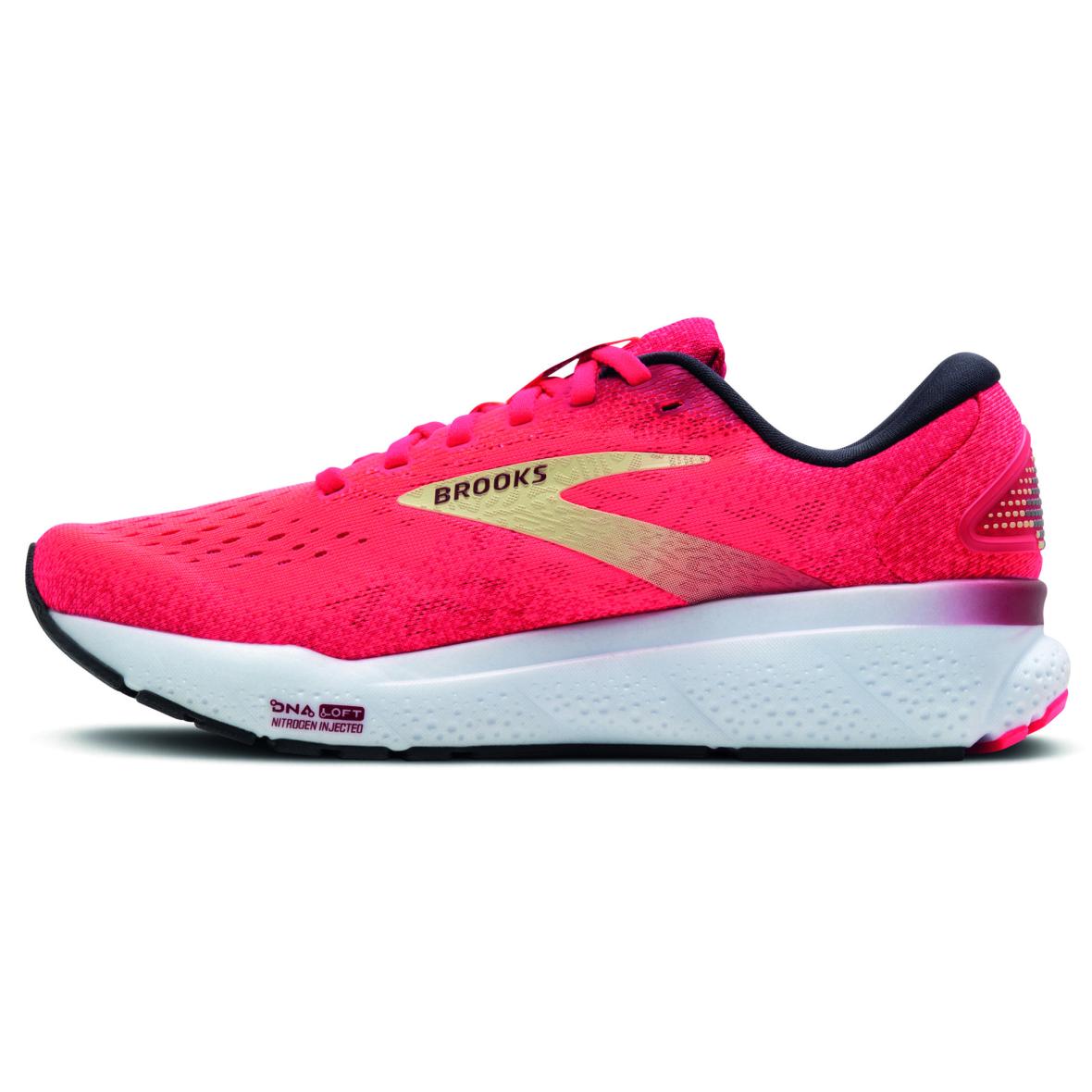 Die Brooks Ghost 16 Damen Laufschuhe bieten Läuferinnen ein Höchstmaß an Komfort und Leistung. Die DNA LOFT-Dämpfung sorgt für weiche Landungen und ein angenehmes Laufgefühl, egal ob du kurze Sprints oder lange Strecken zurücklegst. Das Engineered Air Mesh-Obermaterial bietet eine optimale Atmungsaktivität und hält deine Füße kühl und trocken, während du dich in Bewegung setzt. Der segmentierte Crash Pad ermöglicht reibungslose Übergänge von der Ferse bis zum Zeh, damit du mühelos von einem Schritt zum nächsten übergehst. Diese Schuhe sind die perfekte Wahl für Läuferinnen, die Wert auf Komfort, Unterstützung und Stil legen.