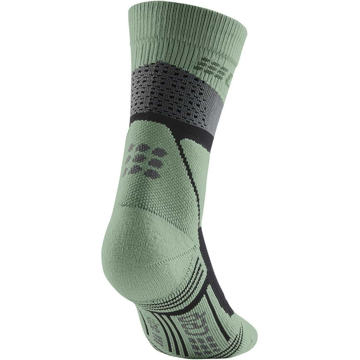 Schütze deine Füße beim Wandern vor unangenehmen Druckstellen und verbessere gleichzeitig deinen Stand. Die halbhohen Max Cushion Socks Hiking Mid Cut von CEP Activating Sportswear bieten optimal platzierte Polster und smarte Lösungen für ein perfektes Fußklima, damit du ein rundum angenehmes Gehgefühl genießen kannst. Ideal für anspruchsvolle Bergtouren, sind diese Socken die perfekte Ergänzung zu deinen festen Bergstiefeln. Das maximal große Polster am Fußrücken ist strategisch platziert, um deinen Fuß im Schuh zu unterstützen und Druckstellen zu verhindern. So kannst du dich ganz auf die Schönheit der Natur konzentrieren, während du den hohen Tragekomfort genießt. Die Sorgen um Blasen gehören der Vergangenheit an. Die speziell geschützten Zonen rund um die Achillessehne und den Knöchel sorgen dafür, dass du länger ohne Beschwerden laufen kannst. Dank der Airflow-Channels im Fußpolster und einem Mesheinsatz an der Wade bleibt dein Fußklima optimal reguliert, selbst bei schweißtreibenden Wanderungen.