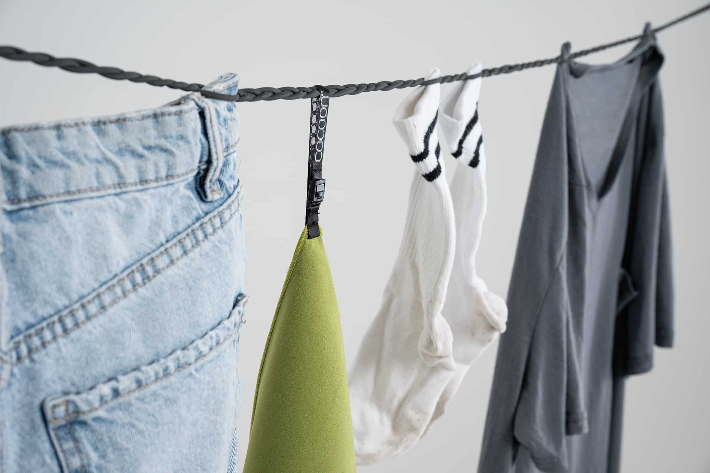 Die Cocoon Travel Clothesline ist die ideale Wahl für Reisende, die eine unkomplizierte Lösung zum Trocknen ihrer Kleidung unterwegs suchen. Diese Wäscheleine ist einfach zu befestigen und kann dank ihrer elastischen Beschaffenheit flexibel genutzt werden. Mit integrierten Haken und Saugnäpfen ausgestattet, kannst du sie fast überall anbringen, ob im Hotelzimmer, im Wohnmobil oder im Freien. Genieße die Freiheit, deine Kleidung schnell und einfach zu trocknen, wo immer du dich befindest.