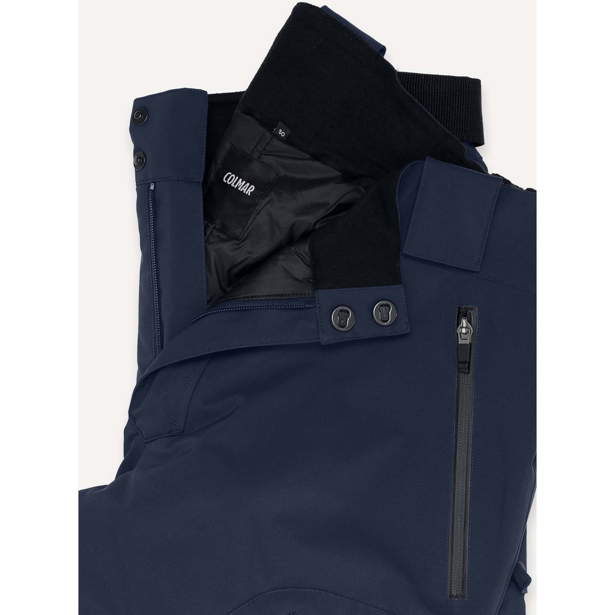 Die wattierte Colmar Cargo Herren Skihose mit abnhembaren Trägern ist perfekt für kalte Tage auf der Piste - technisch klug und optisch stark. Gefertigt aus mechanischem Stretchgewebe aus recyceltem Polyester, kombiniert sie Bewegungsfreiheit und Nachhaltigkeit in einem. Mit einer Wasserdichtigkeit von 15.000 mm und gleicher Atmungsaktivität hält sie selbst bei nassem Schnee zuverlässig trocken. Die mit Clomax® Flex4way-Wattierung isolierende Füllung sorgt für wohlige Wärme. Der praktische Stil mit abnehmbaren Trägern, der Bund mit Fleece-Rückenpartie und Verstärkungen am Saum sowie ergonomisch geformte Knie machen diese Hose zu einem komfortablen Begleiter. Taschen mit wasserdichten Reißverschlüssen, Belüftungsöffnungen an der Beininnenseite und integrierte Schneegamaschen sichern und schützen beim Fahren.