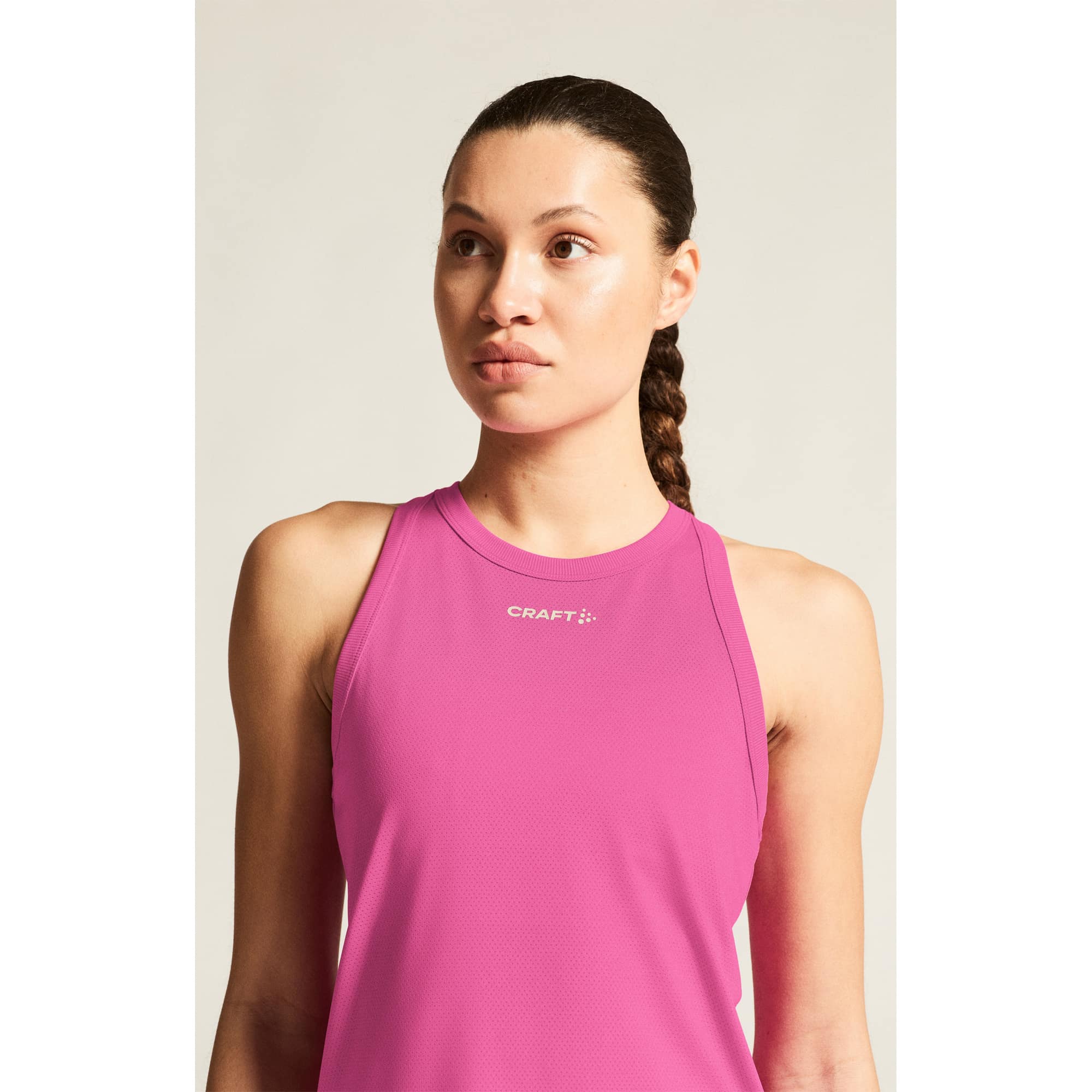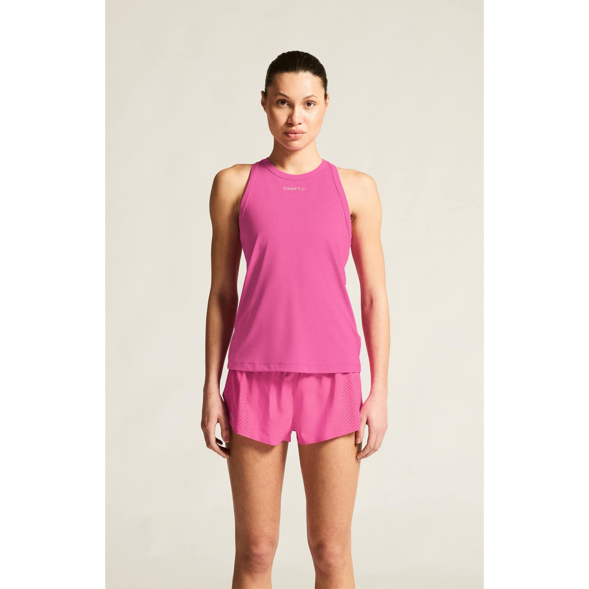 Das Craft Core Essence Mesh Singlet für Damen ist ein eng anliegendes Laufshirt aus recyceltem Polyester und Elasthan, das maximale Bewegungsfreiheit und optimalen Feuchtigkeitstransport bietet. Das weiche Mesh-Gewebe sorgt für effiziente Belüftung, das nahtlose Design verhindert Reibung und garantiert hohen Tragekomfort. Der gerippte Ausschnitt und die gerippten Armlöcher unterstützen eine perfekte Passform bei intensivem Training. Ideal für Laufen, Fitness, Yoga und weitere Sportarten bei warmen Bedingungen, verbindet das Singlet Funktionalität, Nachhaltigkeit und sportlichen Style für aktive Frauen.