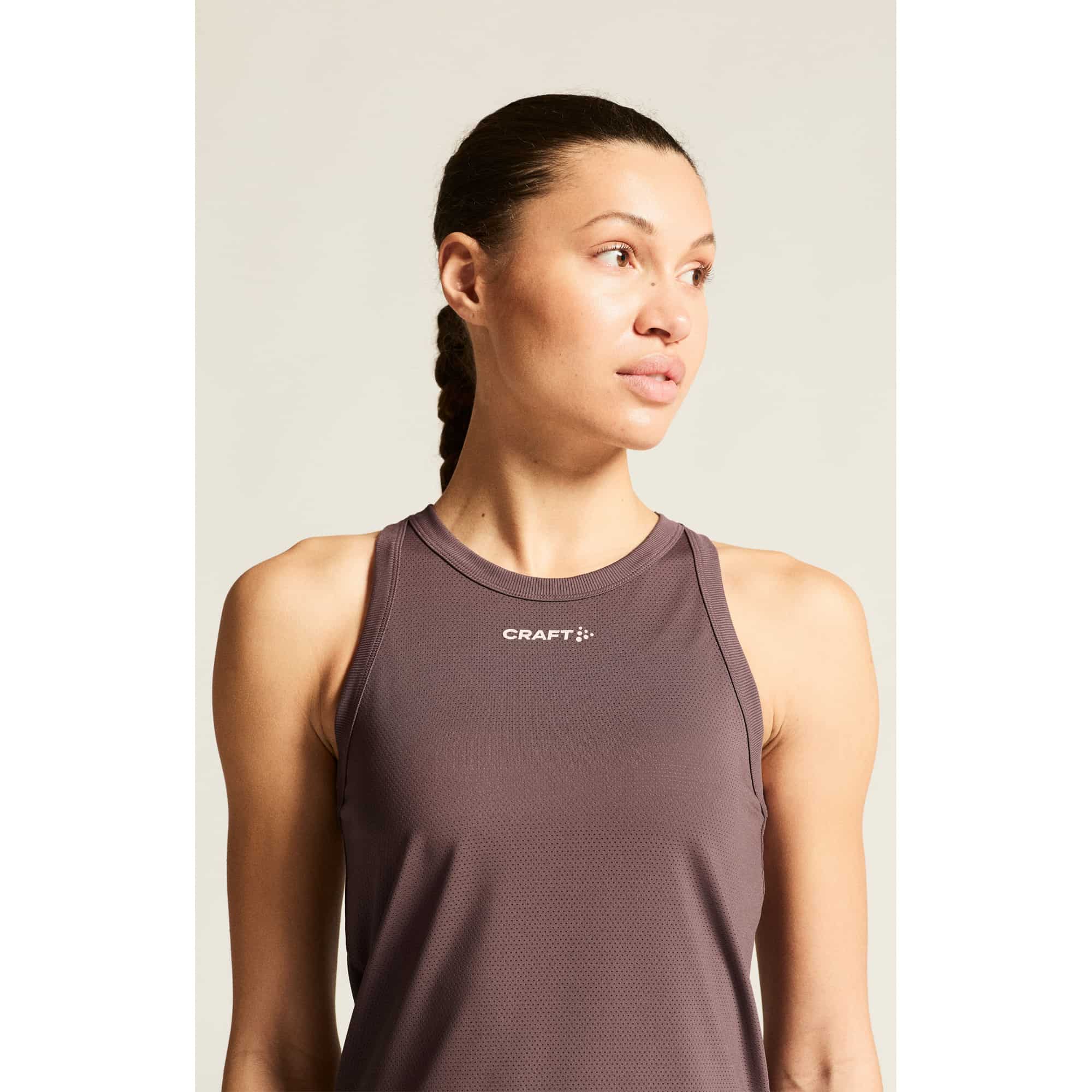Das Craft Core Essence Mesh Singlet für Damen ist ein eng anliegendes Laufshirt aus recyceltem Polyester und Elasthan, das maximale Bewegungsfreiheit und optimalen Feuchtigkeitstransport bietet. Das weiche Mesh-Gewebe sorgt für effiziente Belüftung, das nahtlose Design verhindert Reibung und garantiert hohen Tragekomfort. Der gerippte Ausschnitt und die gerippten Armlöcher unterstützen eine perfekte Passform bei intensivem Training. Ideal für Laufen, Fitness, Yoga und weitere Sportarten bei warmen Bedingungen, verbindet das Singlet Funktionalität, Nachhaltigkeit und sportlichen Style für aktive Frauen.