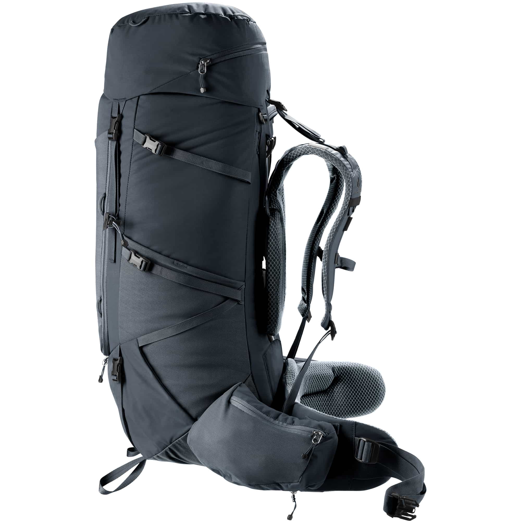 Der deuter Aircontact Core 60 + 10 ist ein ergonomischer Trekkingrucksack, der hohen Tragekomfort und optimale Lastverteilung bietet. Das Aircontact-Rückensystem mit Air Spacer Mesh und großem Belüftungskanal sorgt für angenehme Luftzirkulation, während bewegliche, ergonomische Schulterträger, die VariFlex-Hüftflossen und das Lumbal-Pad die Belastung auf Rücken und Hüfte reduzieren. Mit einem Volumen von 70 Litern und einer empfohlenen Zuladung von 15–20 kg bietet der Rucksack ausreichend Stauraum für längere Touren. Praktische Features wie die J-förmige Frontöffnung, abnehmbare 3-Liter-Hüftflossentaschen, Deckeltasche, Stockhalterung, Vorrichtung für Trinkblasen bis 3 Liter, elastische Seitentaschen, Kompressionsriemen, abnehmbare Regenhülle, Snowskirt mit Kompressionsriemen und Materialschlaufen an Front und Deckel machen ihn vielseitig einsetzbar. Hergestellt aus recycelten Materialien und ohne PFAS bietet der Rucksack umweltfreundliche, langlebige Qualität.
