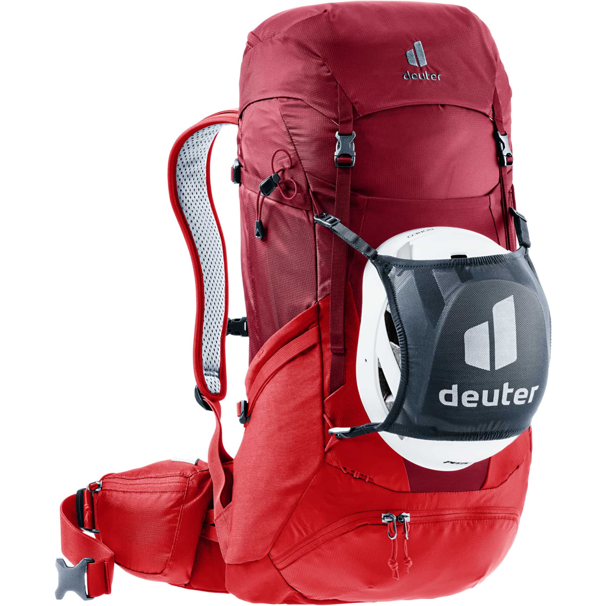 Der Futura Pro 36 von Deuter ist ein geräumiger und leichter Wanderrucksack. Sein Aircomfort Sensic Pro Rückensystem vereint eine effektive Belüftung mit anatomisch geformten Schulterträgern und beweglichen Hüftflossen und sorgt dadurch für einen optimalen Tragekomfort. Sowohl die weich gepolsterten Schulterträger, als auch die komfortablen Hüftflossen lassen sich für einen idealen Sitz mühelos und einfach justieren. Außerdem bieten die zwei Reißverschluss-Taschen an den Hüftflossen genug Platz für Wertsachen oder eine Kamera.