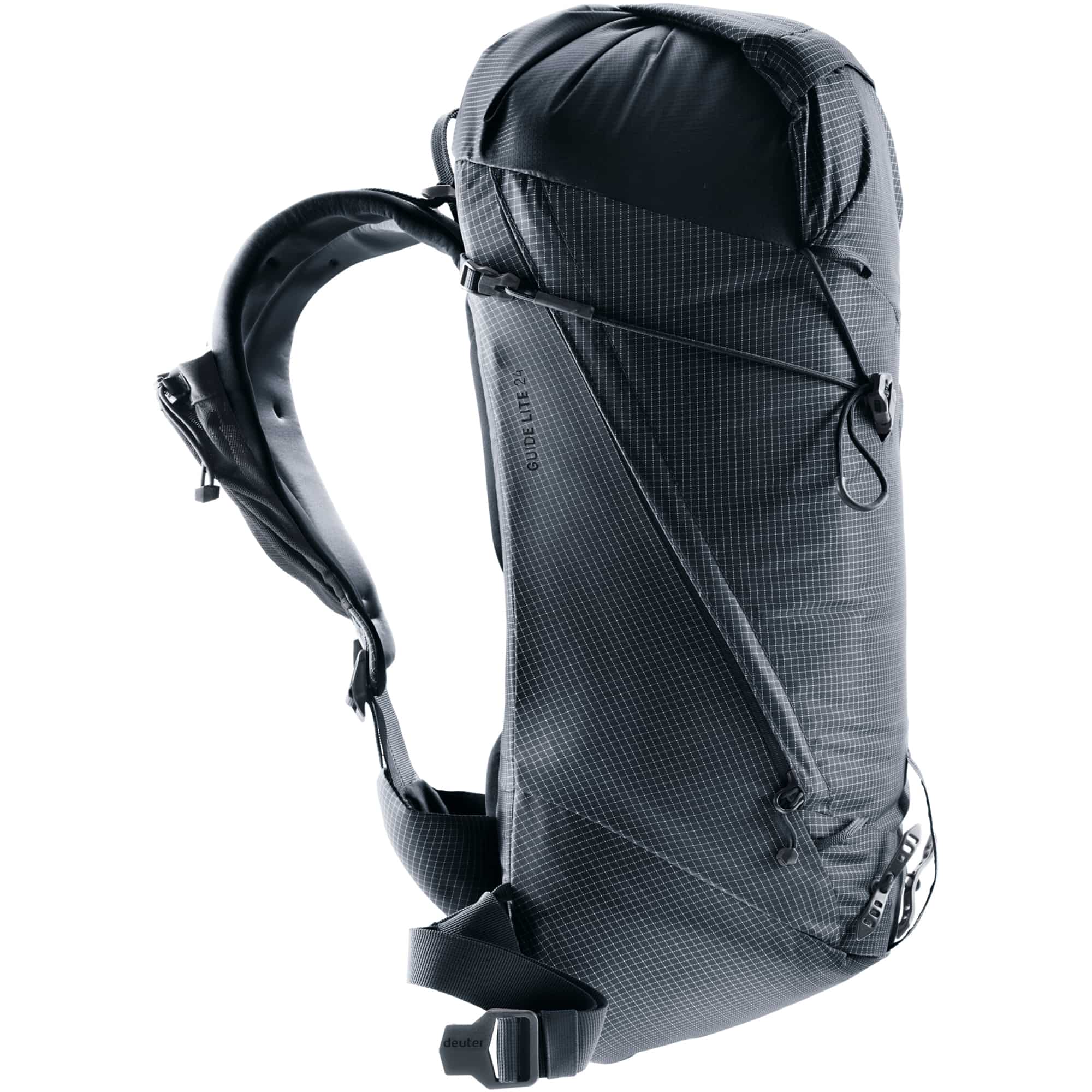 Der deuter Guide Lite 24 Hochtourenrucksack ist ein besonders leichter und funktionaler Alpinrucksack für Bergsteigen, Klettern und anspruchsvolle Touren, der mit nur etwa 670 g Gewicht und 24 Litern Volumen eine ideale Kombination aus geringem Gewicht und hoher Stabilität bietet. Das bewährte Alpine-Rückensystem sorgt für einen körpernahen Sitz, zuverlässige Belüftung und hohen Tragekomfort, während ergonomisch gepolsterte ActiveFit-Schulterträger und ein verstellbarer Hüftgurt eine optimale Lastverteilung ermöglichen. Praktische Features wie beidseitige Pickelhalterung, verstaubare Seilfixierung, abnehmbares Helmnetz, Kompressionsriemen, Trinksystem-Kompatibilität bis 3 Liter sowie eine innovative Flap-Konstruktion mit schnellem Zugriff auf das Hauptfach machen den Rucksack besonders funktional für alpine Einsätze. Gefertigt aus strapazierfähigem, recyceltem 210D Polyamid- und Polyester-Ripstop-Material und PFAS-frei produziert überzeugt der deuter Guide Lite 24 zudem durch nachhaltige Herstellung mit bluesign® und ClimatePartner Zertifizierung und ist damit ein zuverlässiger Begleiter für ambitionierte Bergsport- und Outdoor-Abenteuer.