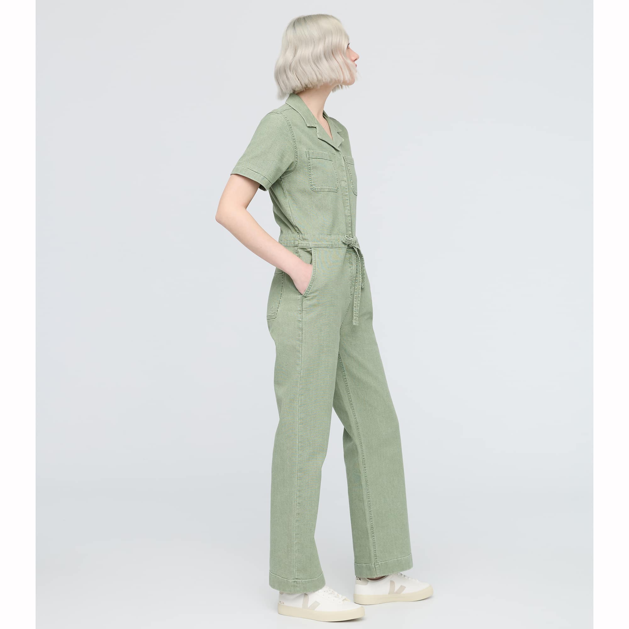 Der Stretch Canvas Girlfriend Jumpsuit Hosenanzug aus Stretch-Canvas bietet optimale Bewegungsfreiheit und ist die Lösung für einen besonders bequemen Jumpsuit mit femininer Ästhetik. Der Taillenbund, der oberhalb der Hüfte sitzt, schafft eine entspannte und schmeichelhafte Silhouette.