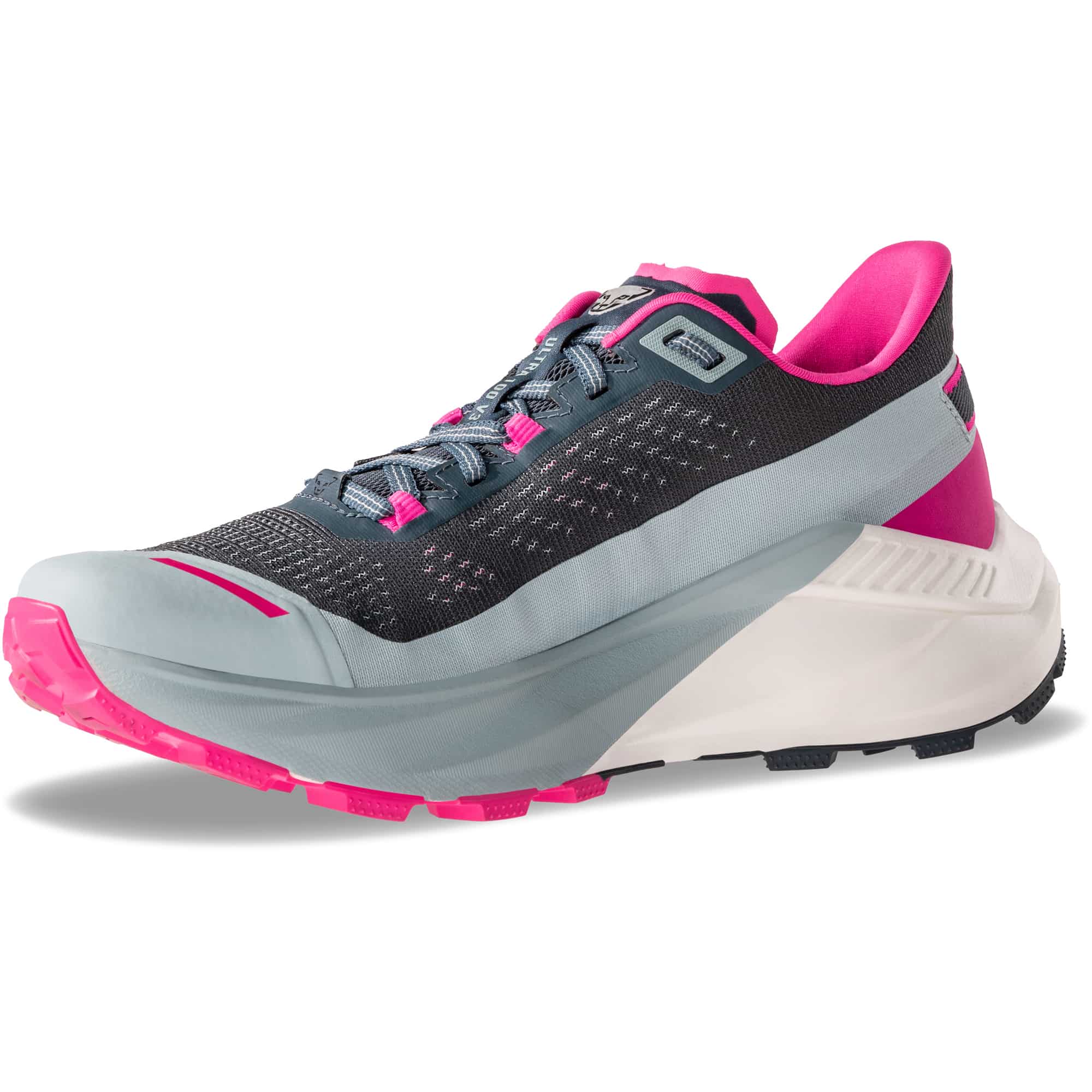 Der Ultra 100 V3 Damen Laufschuh von Dynafit ist ein leistungsstarker Trailrunningschuh für Ultrastrecken, der maximale Dämpfung, Stabilität und Grip in einem durchdachten Gesamtpaket vereint. Die weich abgestimmte SPEEDFOAM Cushion Zwischensohle aus superkritischem Schaumstoff sorgt für hervorragende Stoßabsorption, langanhaltenden Komfort und eine effiziente Energierückgabe – ideal für lange Trainingseinheiten und Wettkämpfe im Gelände. Mit einer Sprengung von 6 mm unterstützt der Schuh einen natürlichen, dynamischen Laufstil, während das Maximum-Volume-Fit-Konzept mit großzügiger Zehenbox die Durchblutung fördert und Ermüdung auf langen Distanzen reduziert. Für sicheren Halt auf jedem Untergrund sorgt die hochwertige Vibram Megagrip Außensohle mit Traction Lug Technology und 4 mm Stollen, die selbst bei Nässe oder technischem Terrain zuverlässige Traktion bietet. Seitliche Stabilitätselemente in der Mittelsohle verbessern die Kontrolle auf anspruchsvollen Trails, während das atmungsaktive Obermaterial mit recyceltem Anteil auch bei intensiven Läufen ein angenehmes Fußklima gewährleistet. Mit einem Gewicht von nur ca. 242 g ist der Ultra 100 V3 ein vielseitiger, komfortorientierter Trailrunning-Schuh für Damen, der speziell für lange Distanzen und unterschiedlichste Geländearten entwickelt wurde.