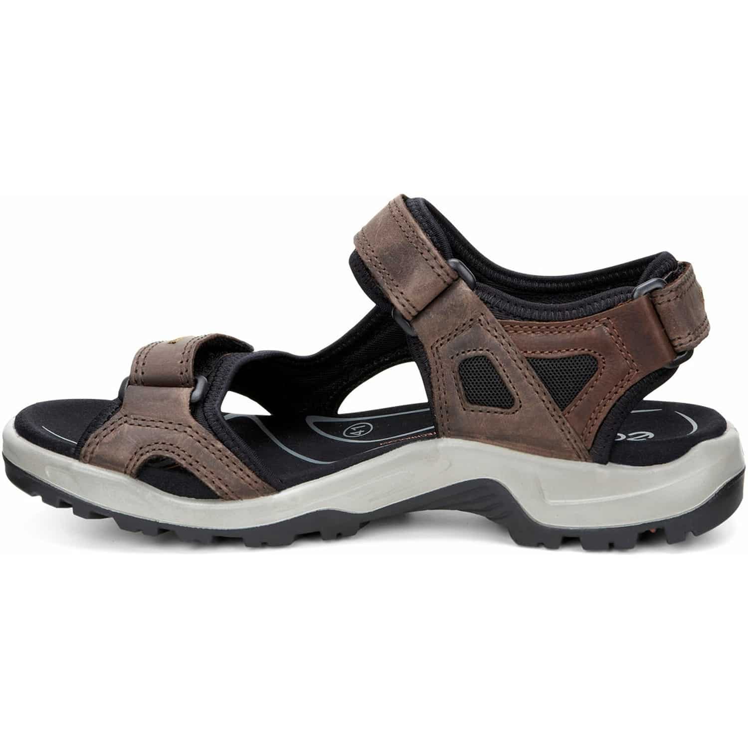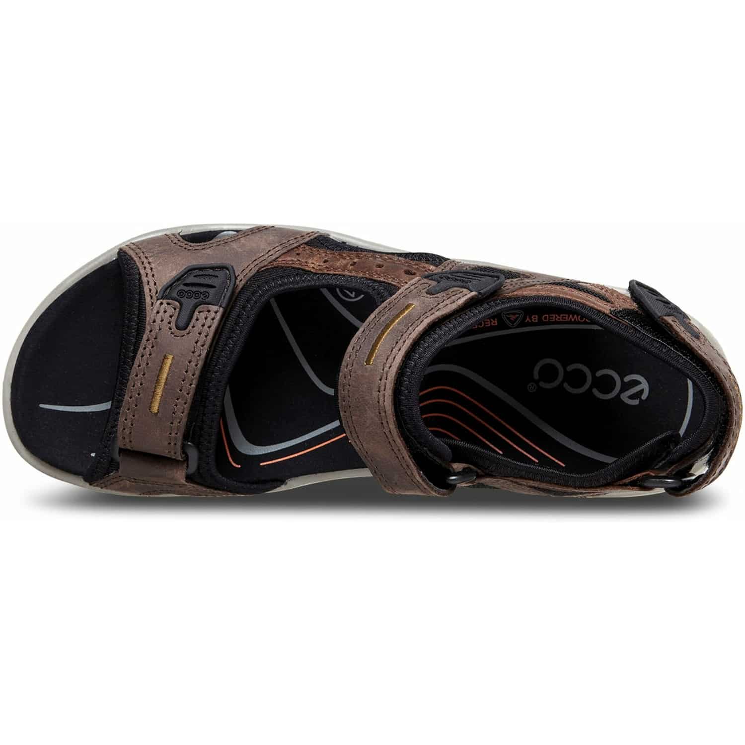 Die Yucatan aus der Ecco Offroad Kollektion ist eine stabile und robuste Outdoorsandale für Herren, die auch abseits der befestigten Pfade eine hohe Stabilität und Griffigkeit bietet. Die Trekkingsandalen bestehen aus hochwertigem, langlebigem Nubukleder mit weichem Neoprenfutter, das sich über drei Klettverschlüsse perfekt an den Fuß anpassen lässt. Das EVA-Fußbett mit weicher Mikrofaser-Beschichtung sorgt dabei für eine optimale Fußunterstützung und hohen Gehkomfort. Zudem kommt die Sandale mit einer dämpfenden Zwischensohle mit RECEPTOR® Technologie für eine dynamische Unterstützung und ein natürliches Abrollverhalten sowie einer abriebfesten Gummilaufsohle für idealen Grip auf rutschigem oder weichem Untergrund.