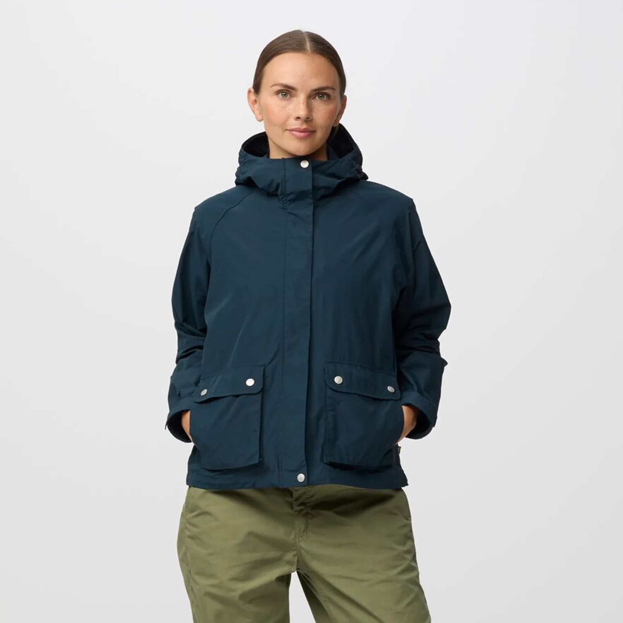 Der Fjällräven Vardag Vindby Windbreaker ist eine wetterfeste Windjacke für Damen, die sich ideal für Outdoor-Abenteuer wie Wandern, Kajak- oder Radtouren eignet und dabei stilvoll im Alltag getragen werden kann. Gefertigt aus einer robusten Mischung aus gewachstem Polyamid und Bio-Baumwolle bietet die Jacke zuverlässigen Schutz vor Wind und leichtem Regen, während die entspannte Relaxed-Fit-Passform vielseitigen Komfort für jede Körperform gewährleistet. Praktische Eingrifftaschen und eine Innentasche mit Reißverschluss sorgen für sicheren Stauraum, die Kapuze mit Tunnelzug passt sich individuell an und Mesh-Einsätze an der Rückenpasse unterstützen die Belüftung bei aktiven Bewegungen. Leicht zu pflegen und ohne PFAS produziert, kann die Vardag Vindby Jacket zusätzlich mit Greenland Wax behandelt werden, um Wasserabweisung und Langlebigkeit zu erhöhen. Mit ihrem zeitlosen Design und funktionalen Details ist sie die perfekte Wahl für Outdoor-Fans, die Wert auf Nachhaltigkeit, Komfort und wetterfesten Schutz legen.