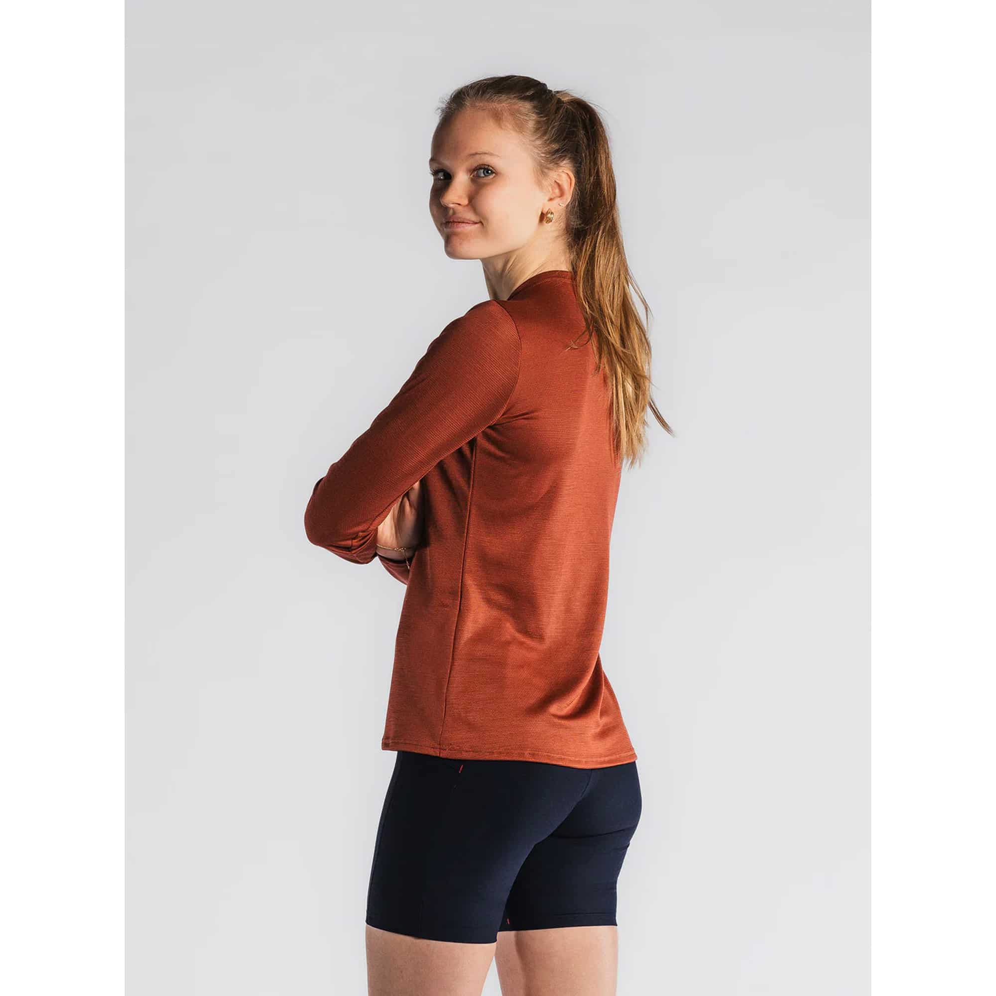 Das Fusion Technical Merino 150 Damen Laufshirt ist ein vielseitiges Langarmshirt aus einer innovativen Merinowolle-Polyester-Mischung, hergestellt in Dänemark, das natürlichen Komfort mit funktionaler Leistung verbindet. Die Merinowolle sorgt für Temperaturregulierung und selbstreinigende Eigenschaften, während Polyester für Strapazierfähigkeit, schnelles Trocknen und Formstabilität sorgt. Das Material macht das Shirt langlebig, ideal für Training, Alltag oder als zusätzliche Schicht bei Kälte – ein multifunktionales Shirt für 24/7-Komfort.