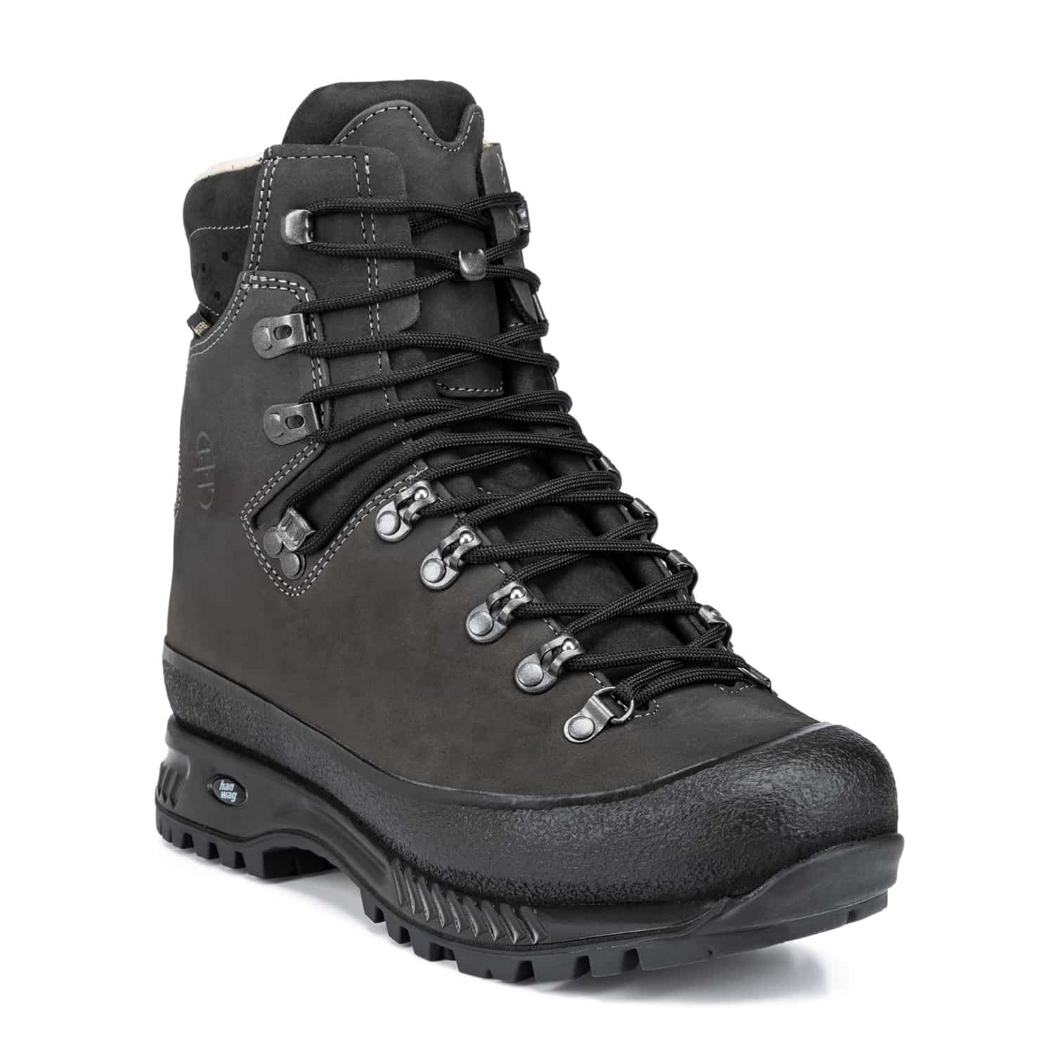Der Alaska GTX® von Hanwag ist ein stabiler Trekkingstiefel für Herren, der mit einem hohen Komfort und einer bequemen Passform überzeugt. Der Bergschuh besteht aus robustem und gewachstem Nubukleder und einem atmungsaktiven GORE-TEX® Futter, um dauerhaft vor Nässe zu schützen und ein angenehmes Fußklima zu vermitteln. Der umlaufende Gummirand schützt dabei vor Geröll und stabilisiert die Schuhform. Der Trekkingschuh kommt mit einer komfortablen Auftrittsdämpfung und einer stabilisierenden Zwischensohle, um die natürliche Abrollbewegung zu unterstützen und auch auf langen Touren mit viel Gepäck einen hohen Gehkomfort zu ermöglichen. Das selbstreinigende Profil mit Bremsstollen in der Mitte ermöglicht zudem in nahezu jedem Terrain einen guten Grip des Bergstiefels.