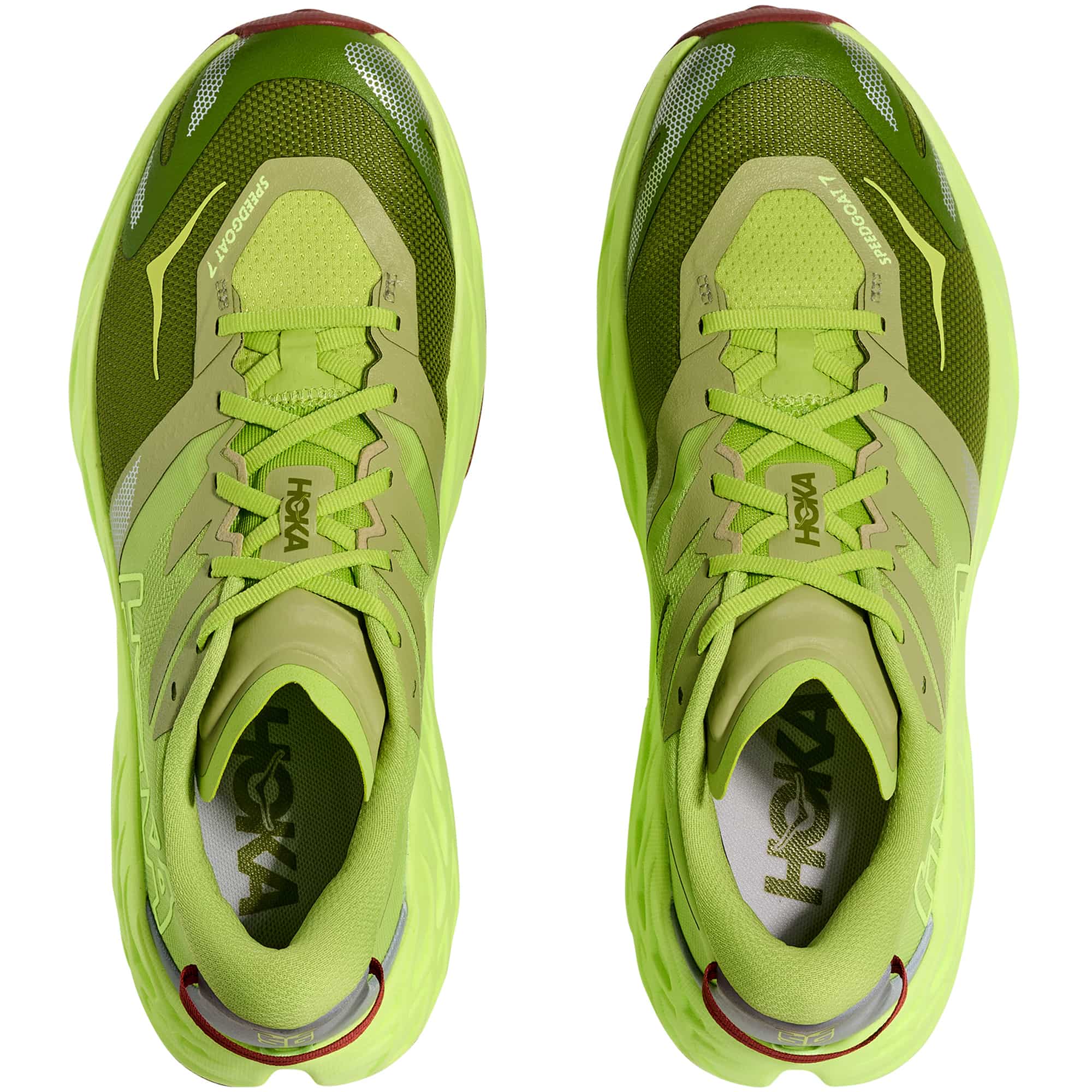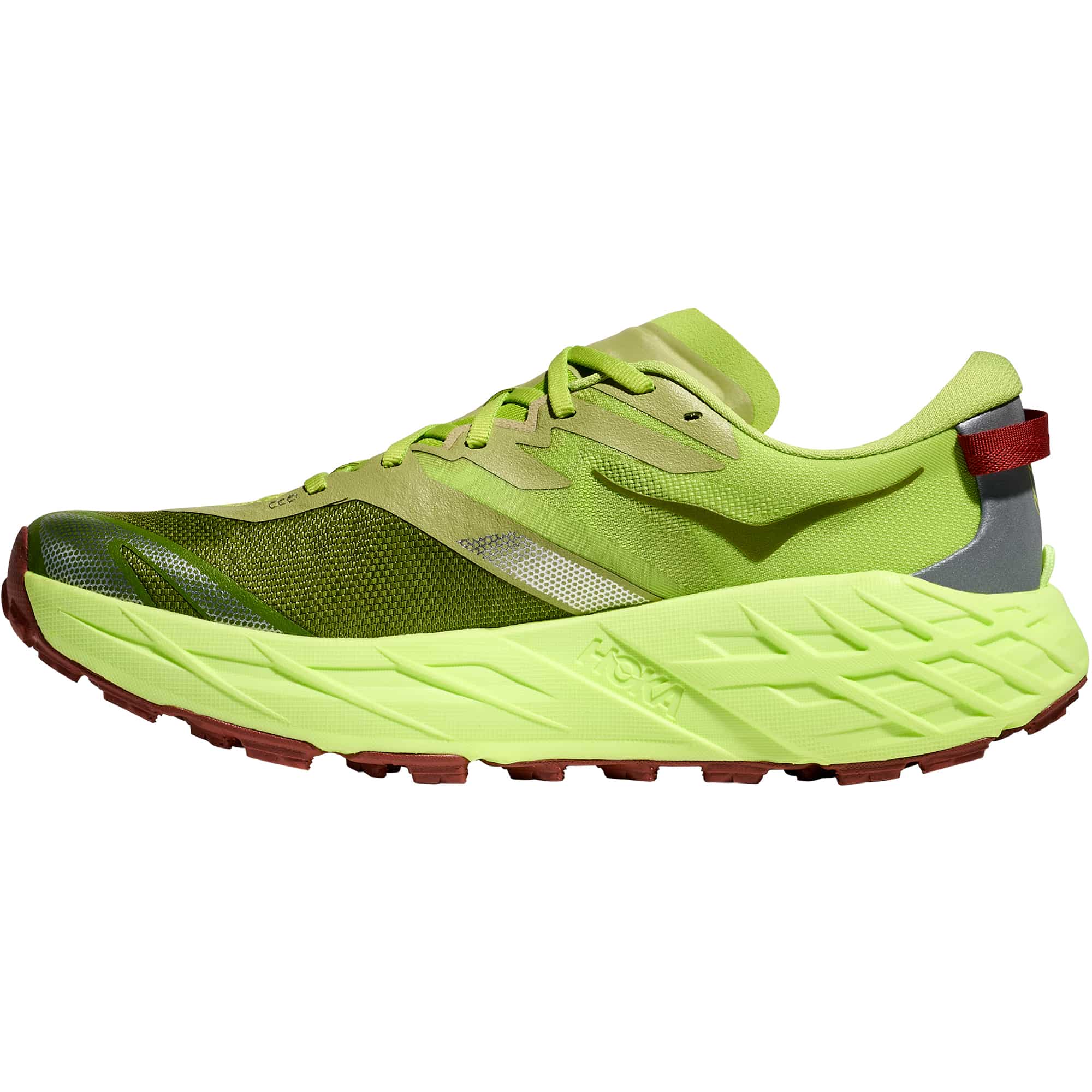 Der HOKA Speedgoat 7 Herren Trailrunningschuh ist für anspruchsvolles, technisches Gelände konzipiert und bietet hohe Griffigkeit sowie ein direktes Laufverhalten. Die neu eingesetzte EVA-Zwischensohle sorgt für eine verbesserte Energierückgabe und eine höhere Reaktionsfreudigkeit, während Passform und Traktion des bewährten Modells erhalten bleiben. Das leichte Obermaterial aus Webtextil mit elastischem Vorfußbereich unterstützt eine präzise und stabile Passform, ergänzt durch eine flach anliegende Zunge mit doppeltem Einsatz zur gleichmäßigen Druckverteilung. Der überarbeitete Fersenkragen erhöht den Tragekomfort, eine integrierte Befestigung für Gamaschen erweitert den Einsatzbereich. Reflektierende Elemente verbessern die Sichtbarkeit bei schlechten Lichtverhältnissen. Die Außensohle aus Vibram® Megagrip mit neu angeordneter Profilstruktur und 5 mm tiefen Stollen bietet zuverlässigen Halt auf wechselndem Untergrund. Durch die technischen Überarbeitungen bleibt der Speedgoat ein leistungsorientierter Trailschuh für vielseitige Einsätze im Gelände.