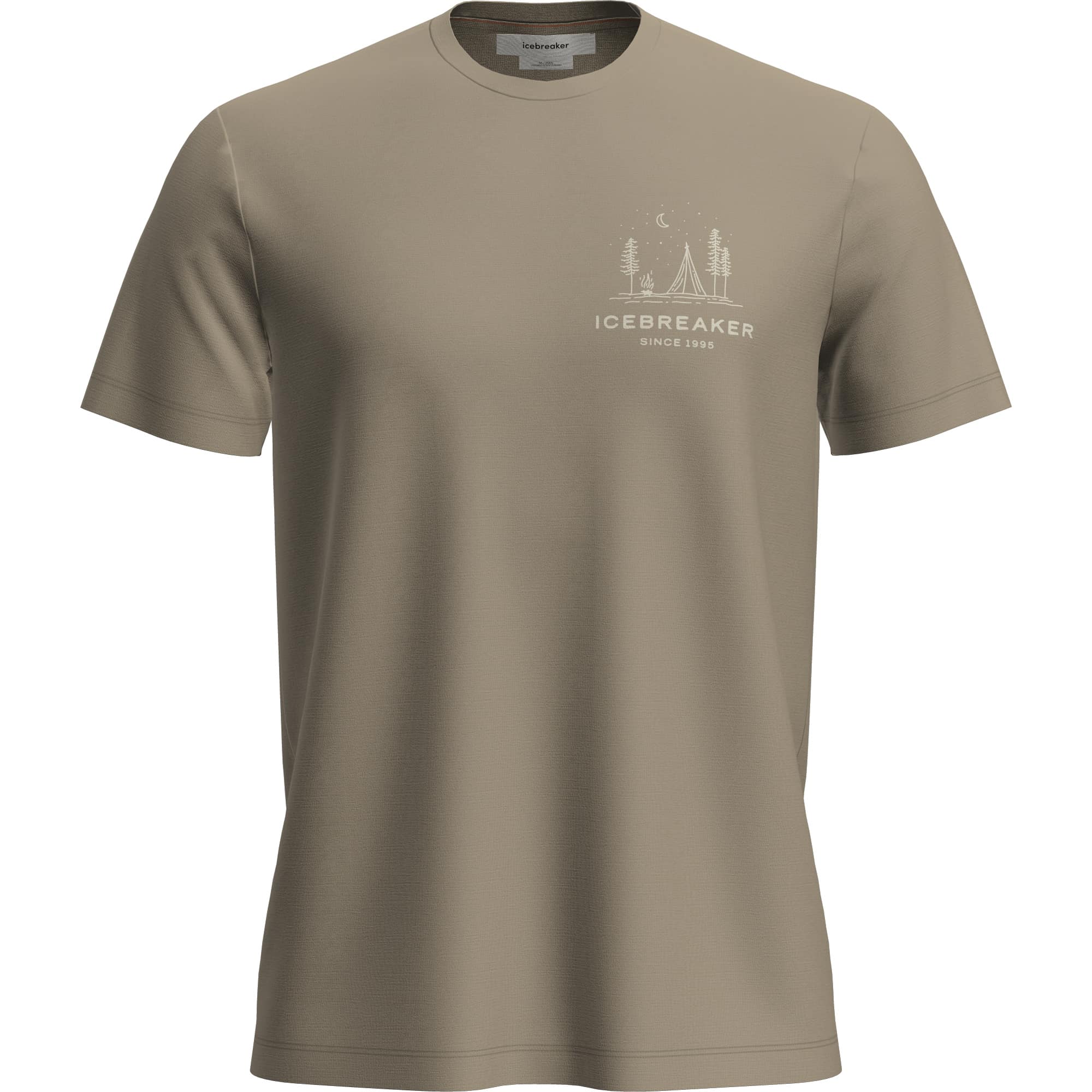 Das vielseitige Merino 150 Tech Lite T-Shirt Peaceful Pass aus 100 % Merinowolle bietet optimalen Komfort, hohe Atmungsaktivität und natürliche Geruchsbeständigkeit für Abenteuer zu jeder Jahreszeit. Die weichen, leichten Merinofasern regulieren das Körperklima und sorgen dafür, dass Sie bei Kälte warm und bei Wärme angenehm kühl bleiben. Der hochwertige Merinostoff unterstützt zudem ein dauerhaft frisches Tragegefühl, auch bei längerer Nutzung. Ein besonderer Blickfang ist der Originalprint mit einer Illustration im naiven Stil, die ein Zeltlager im Wald unter klarem Nachthimmel zeigt. Versetzte Schulternähte reduzieren Reibung und erhöhen den Tragekomfort, wodurch sich das funktionale Merino T-Shirt ideal für Outdoor-Aktivitäten, Reisen und den Alltag eignet.