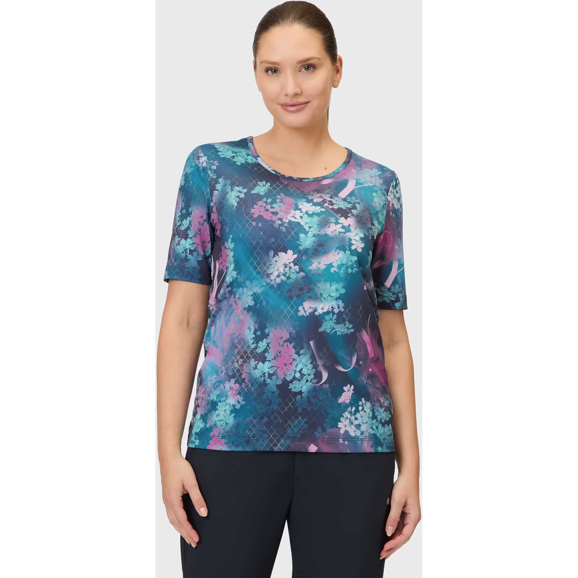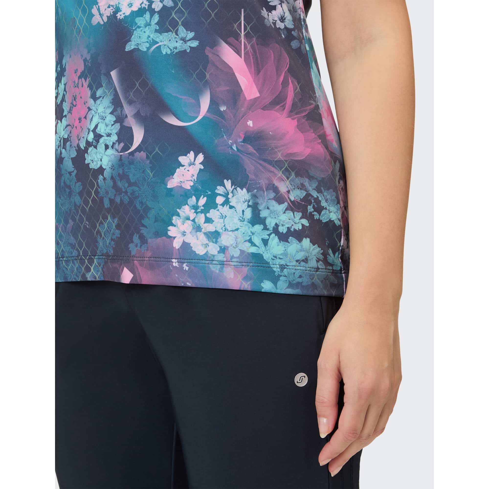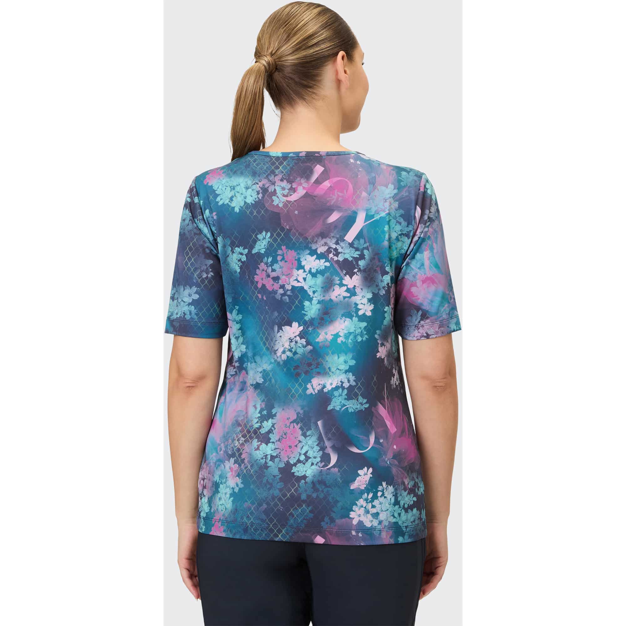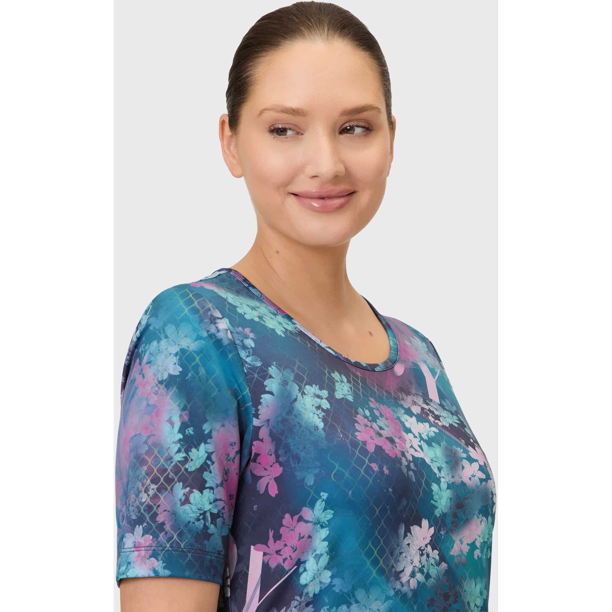 Das Sport-T-Shirt für Damen THEODORA von JOY sportswear vereint Funktionalität und Stil für dein aktives Leben. Egal, ob beim Yoga, im Fitnessstudio oder beim Laufen – mit THEODORA genießt du optimalen Tragekomfort und Bewegungsfreiheit. Das fein abgestimmte Funktionsmaterial ist nicht nur schnelltrocknend, sondern auch atmungsaktiv und pflegeleicht. Du bleibst während intensiver Trainingseinheiten trocken und frisch. Die bequeme Passform und die kurzen Ärmel ermöglichen müheloses Bewegen, egal ob im Freien bei warmen Temperaturen oder in klimatisierten Studios. Das T-Shirt ist in verschiedenen Größen erhältlich und bietet idealen Sitz. Das trendige, schmal geschnittene Design mit buntem Allover-Print macht es zu einem modischen Begleiter für deine sportlichen Aktivitäten sowie für entspannte Momente im Alltag, sei es beim Radfahren zum Einkaufen oder bei der Gartenarbeit. Wähle das THEODORA T-Shirt und erlebe, wie Stil und Funktionalität Hand in Hand gehen.