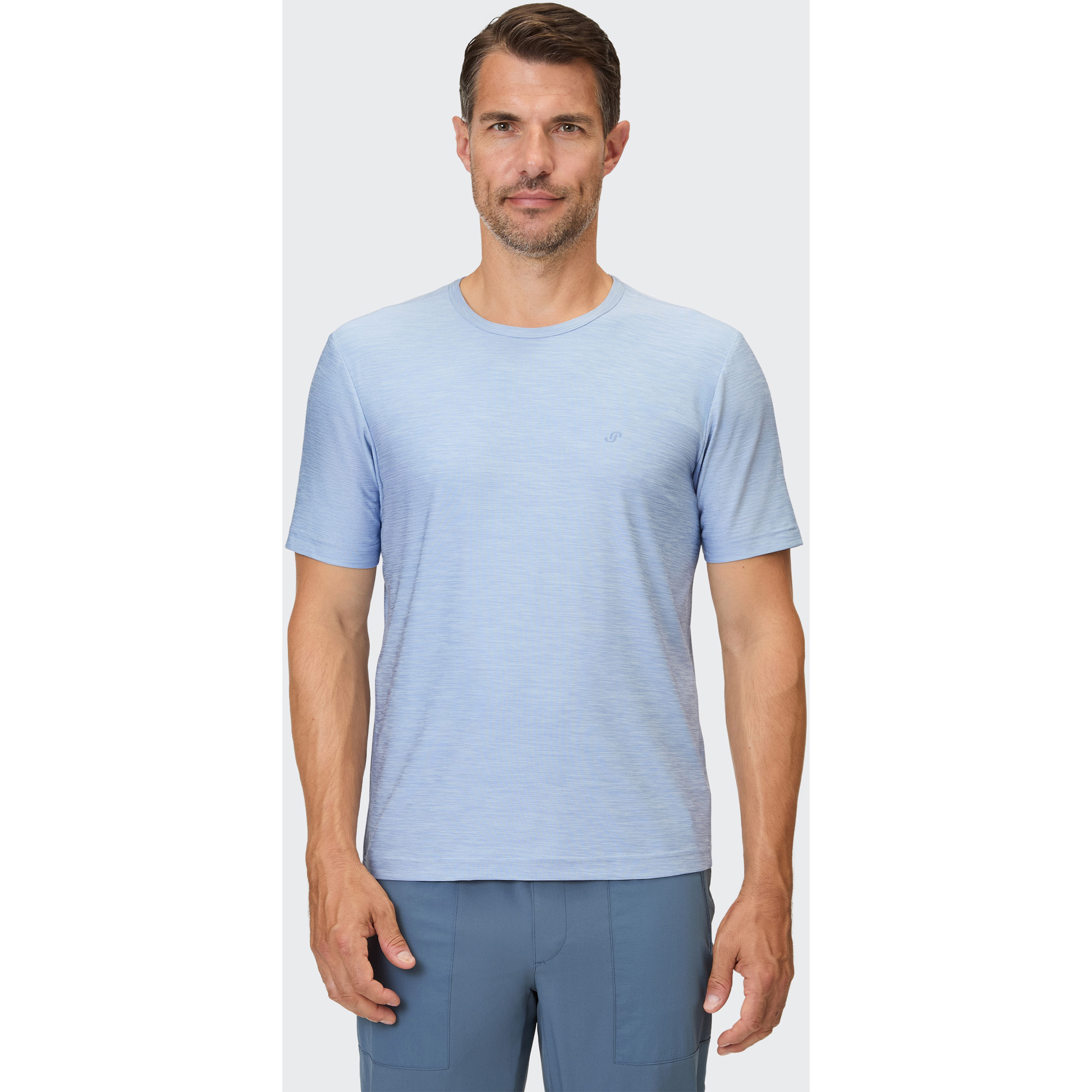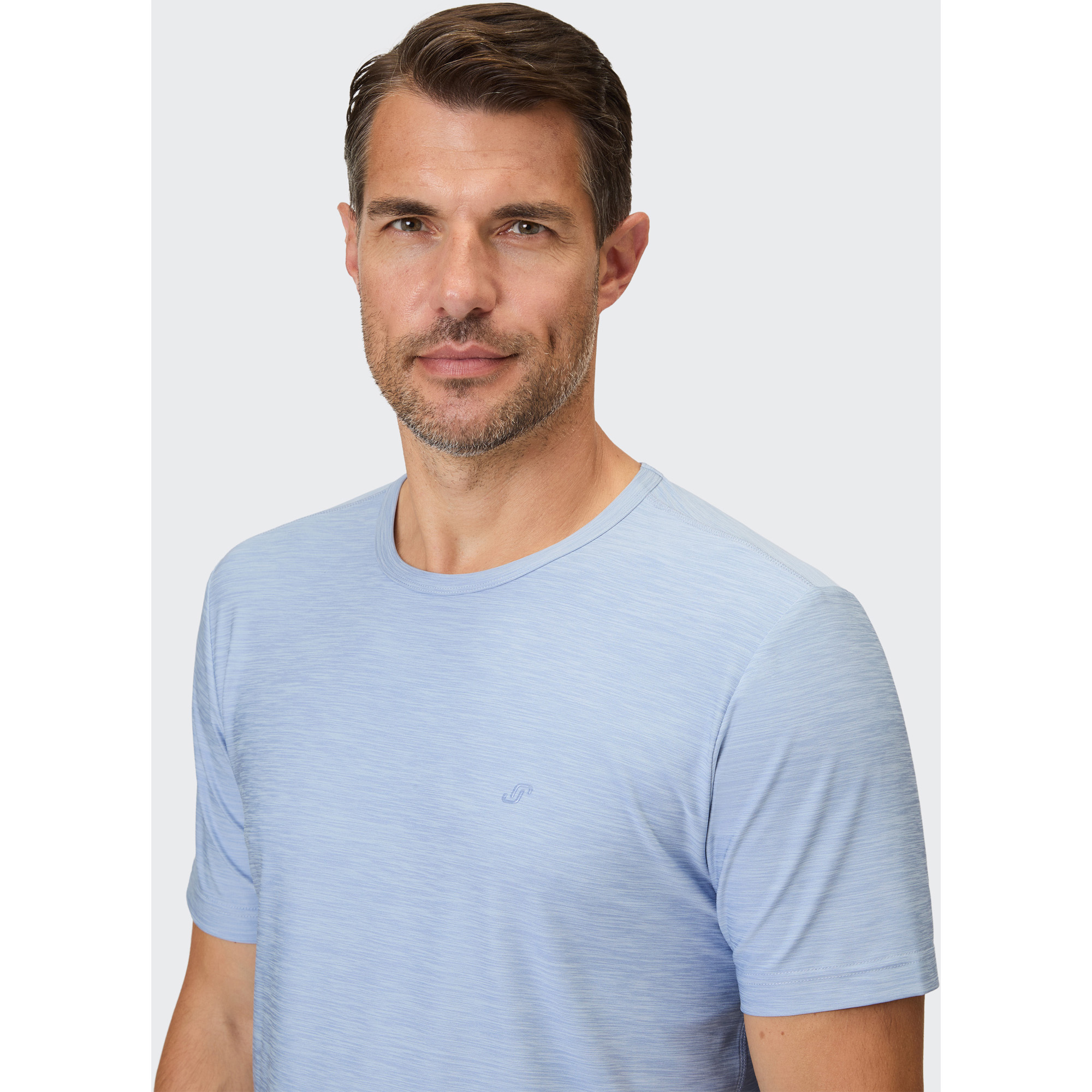 Das Vitus T-Shirt von Joy ist ein leistungsstarkes Funktionsshirt für Herren, ideal für Outdoor-Sport, Fitness und Running. Das glatte, schnelltrocknende Funktionsmaterial transportiert Feuchtigkeit effizient von der Haut weg und sorgt für ein dauerhaft trockenes, angenehmes Tragegefühl – auch bei intensiven Workouts. Dank des elastischen, melierten Stoffs bietet das Sportshirt optimale Bewegungsfreiheit. Kontrastfarbige Flachnähte unterstreichen die sportive Optik. Der hoch abschließende Rundhalsausschnitt mit reibungsarmem Nackenband erhöht den Komfort zusätzlich.