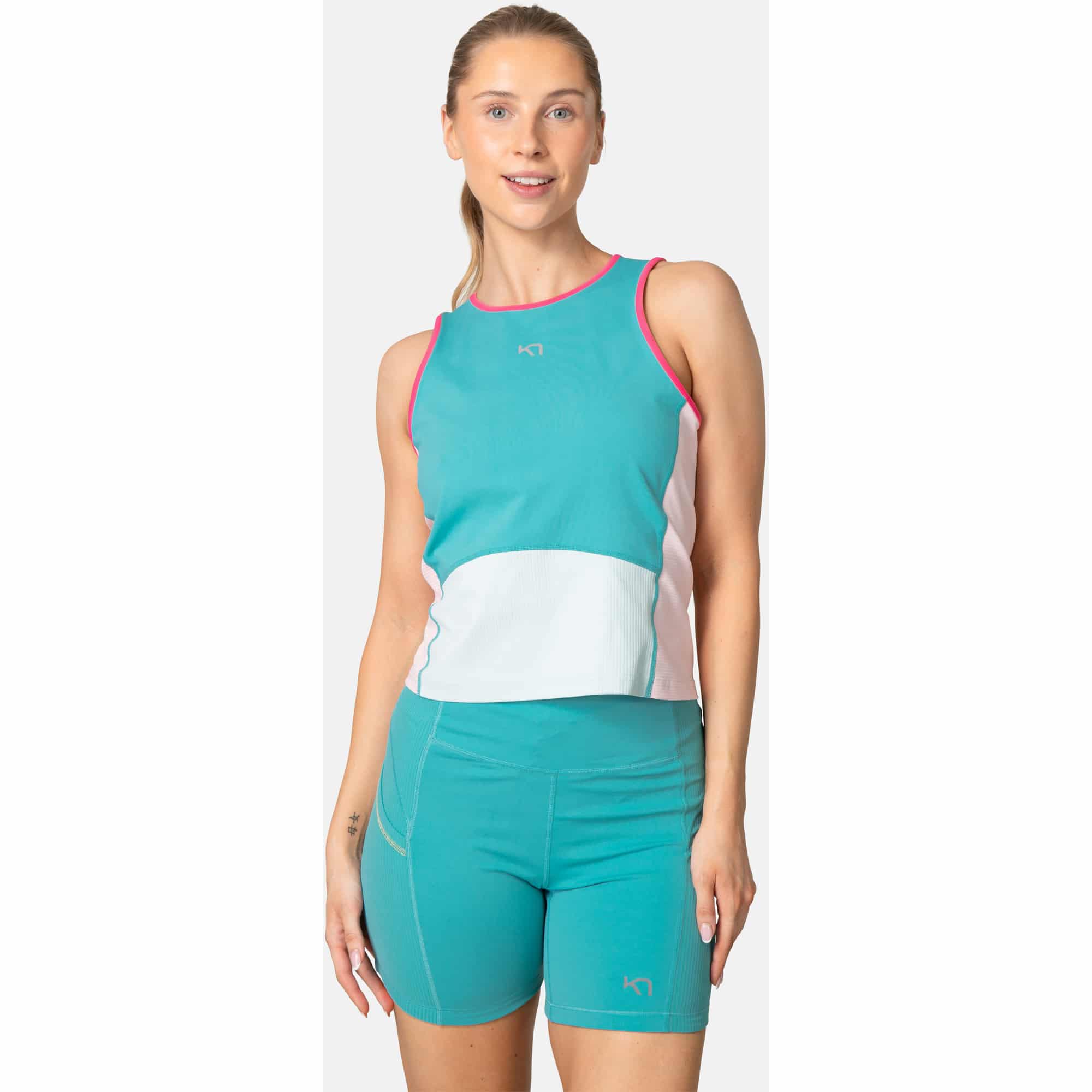 Das Alma Tank ist dein leichtes, funktionales Lieblings-Unterhemd im Color-Blocking-Stil. Dank Body-Mapping-Technologie und strategisch platzierten Tencel-Einsätzen wird Feuchtigkeit schnell abgeleitet. Die Mischung aus Polyester und Wolle hält angenehm warm, ohne zu überhitzen. Der vorteilhafte, feminine Schnitt macht das Alma Tank zu einem stilvollen und zugleich funktionalen Begleiter für jede sportliche Aktivität.