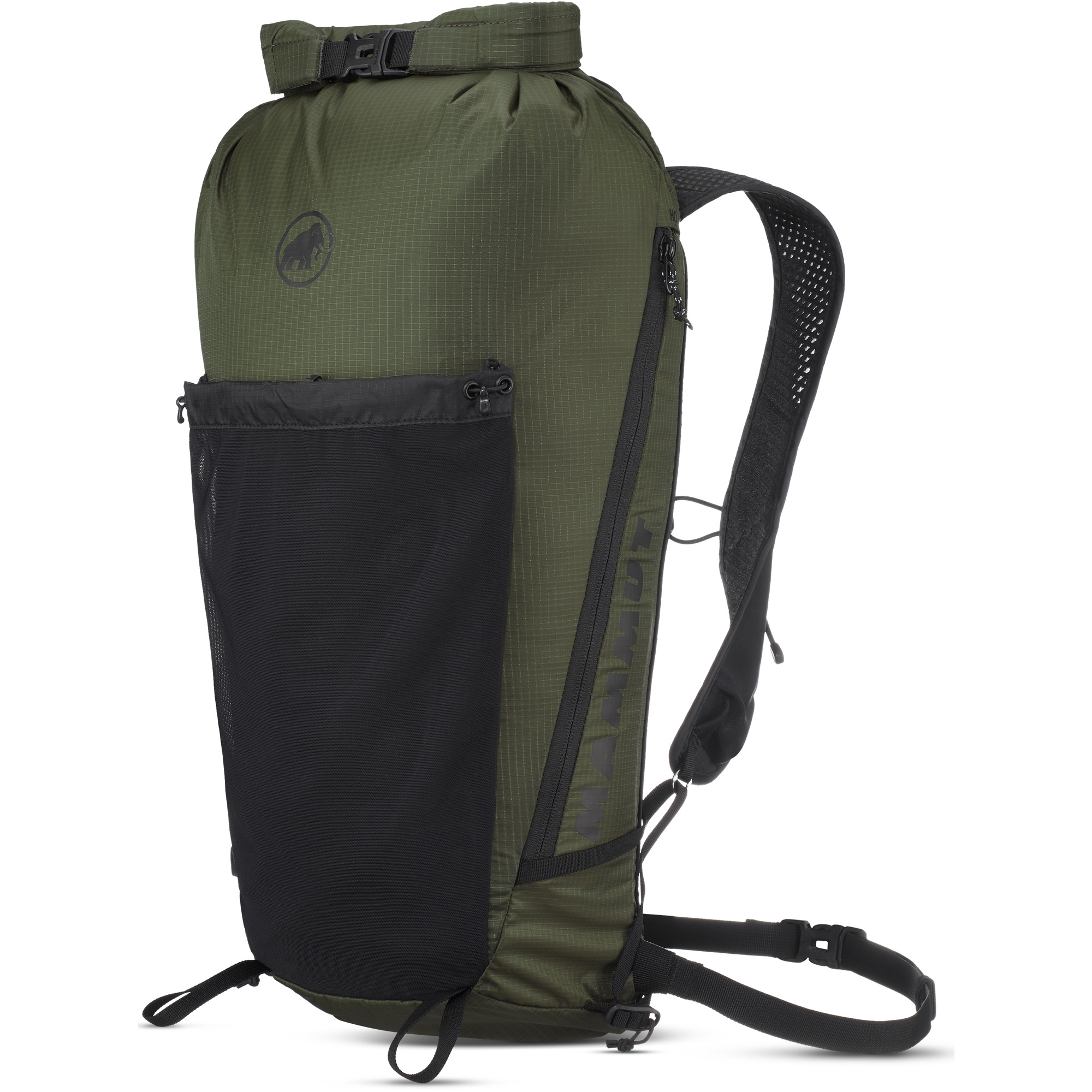 Der Aenergy 18 Laufrucksack von Mammut bringt dich im Gebirge schnell und leichtfüßig ans Ziel. Als unser leichtester Wanderrucksack überzeugt er nicht nur durch ein müheloses Gewicht von nur 380 g, sondern auch durch ein durchdachtes Design. Das Rückenpolster ist so schlank wie nötig, bietet jedoch mehr als genug Komfort dank atmungsaktiver Materialien und ergonomischen Schulterträgern. Mit zwei geräumigen Hauptfächern und einem praktischen Rolltop-Verschluss hast du ausreichend Stauraum für dein Trinksystem und andere wichtige Ausrüstungsgegenstände. Kleinere Snacks und Essentials finden in der Mesh-Außentasche und den zwei Brusttaschen stets ihren Platz. Reflektierende Elemente sorgen dafür, dass du auch bei nächtlichen Abenteuern sichtbar bleibst. Zudem besteht der Rucksack teilweise aus recycelten Materialien, was dir ein gutes Gefühl bei deinem Abenteuer gibt. Mach dich bereit, die Natur zu erkunden, und erlebe mit diesem Fliegengewicht-Champion unvergessliche Momente!
