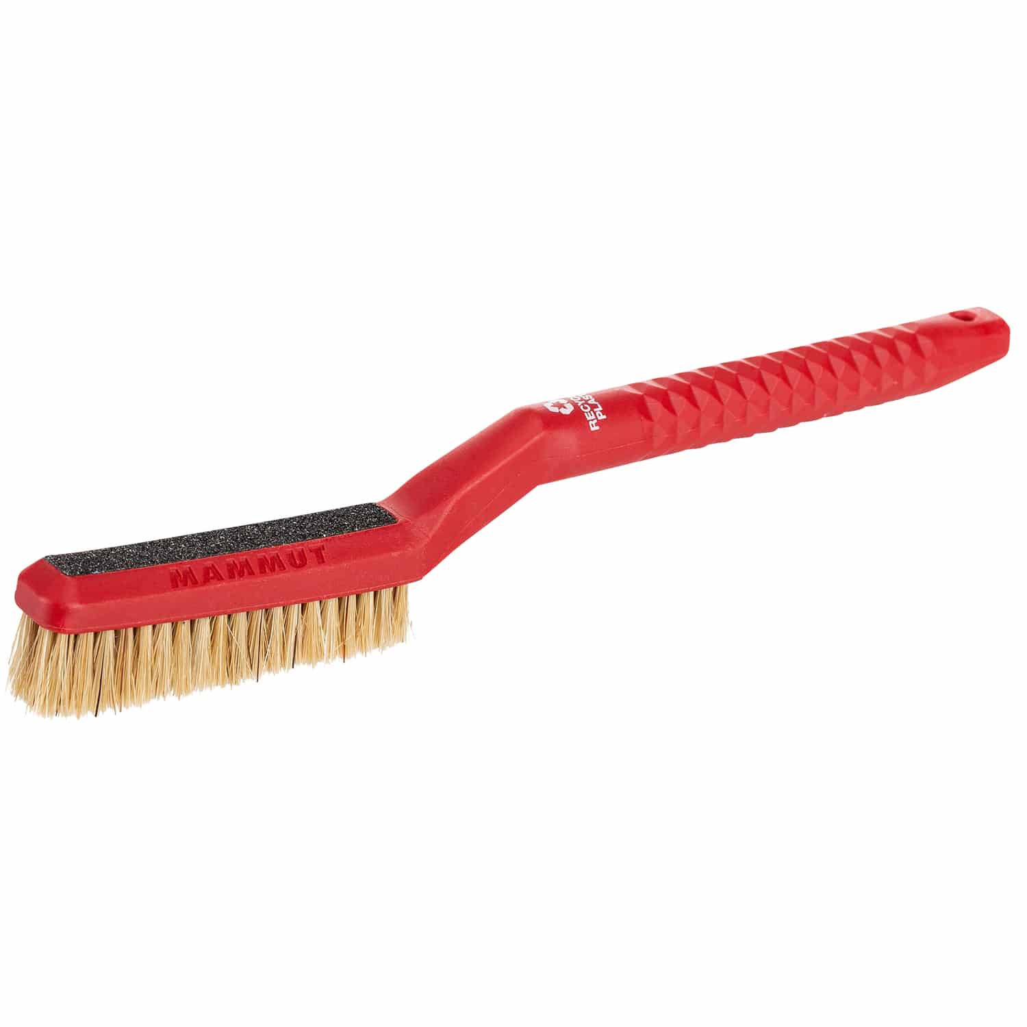 Die Sender Brush von Mammut entfernt zuverlässig Kreidereste und Schmutz. Die leichte Bürste mit robustem Schaft ist aus recyceltem Kunststoff gefertigt. Die natürlichen Borsten sind langlebig und sehr weich, um das Gestein nicht zu beschädigen oder zu polieren. Die Borsten auf der Vorderseite sind länger, um die Lebensdauer noch weiter zu verlängern. Der ergonomisch abgewinkelte Griff erleichtert die Handhabung. Mit dem praktischen Schleifpapier auf der Rückseite des Schafts kann man Haut und Nägel in perfektem Zustand halten. Er eignet sich zum Bouldern und Seilklettern.