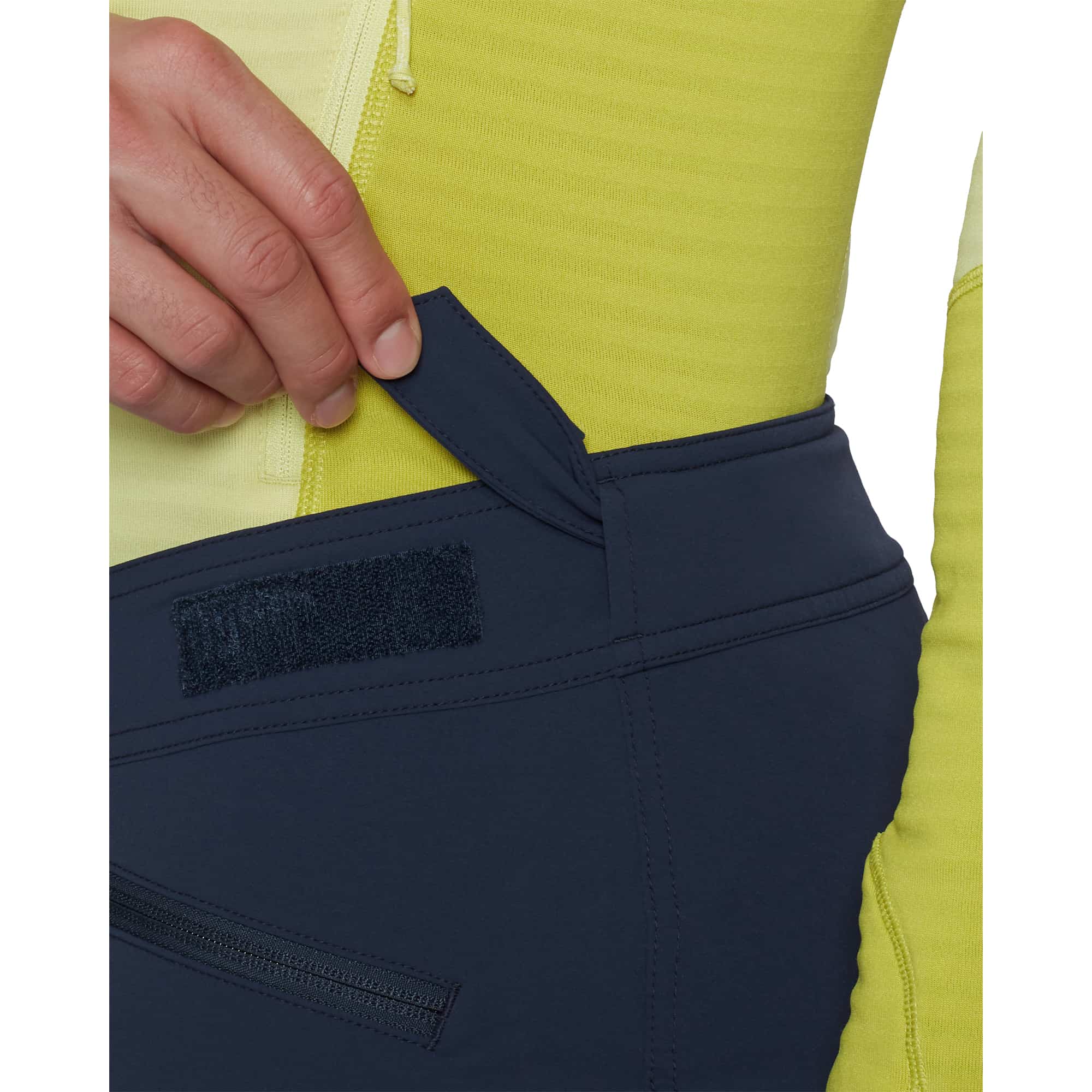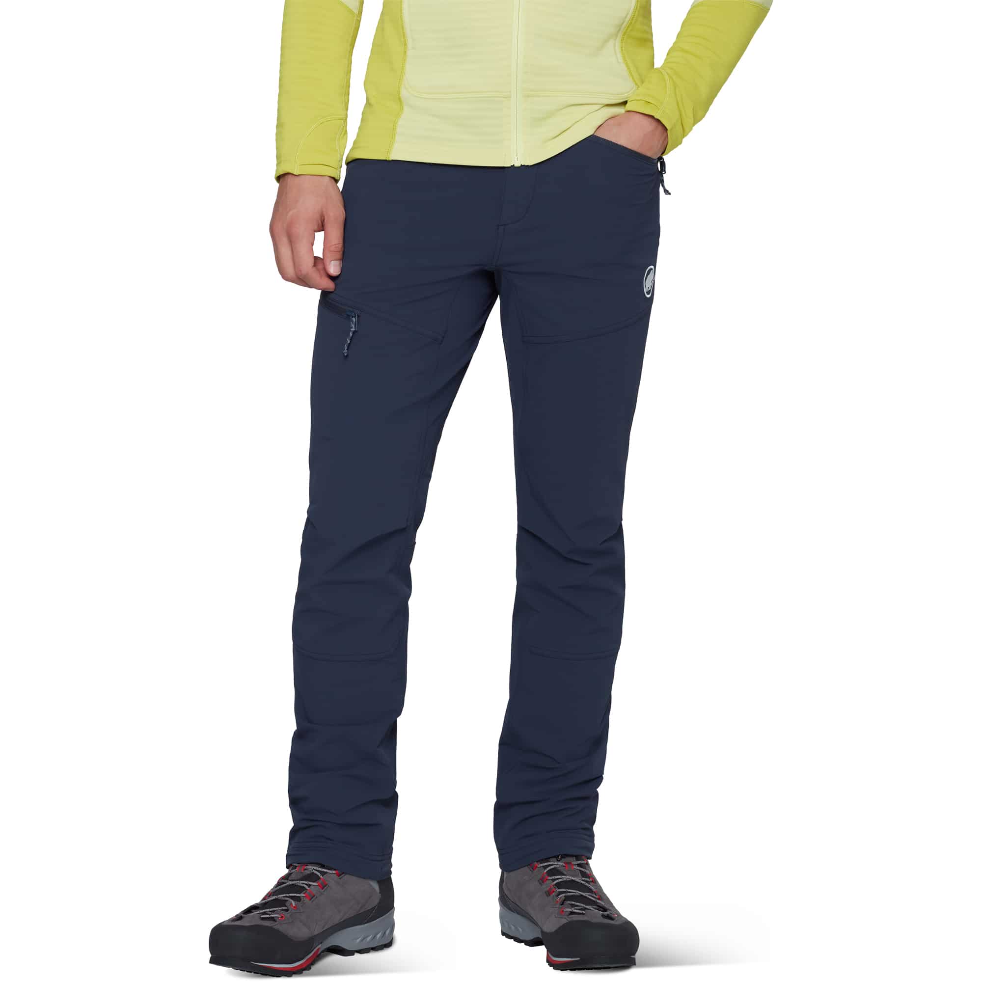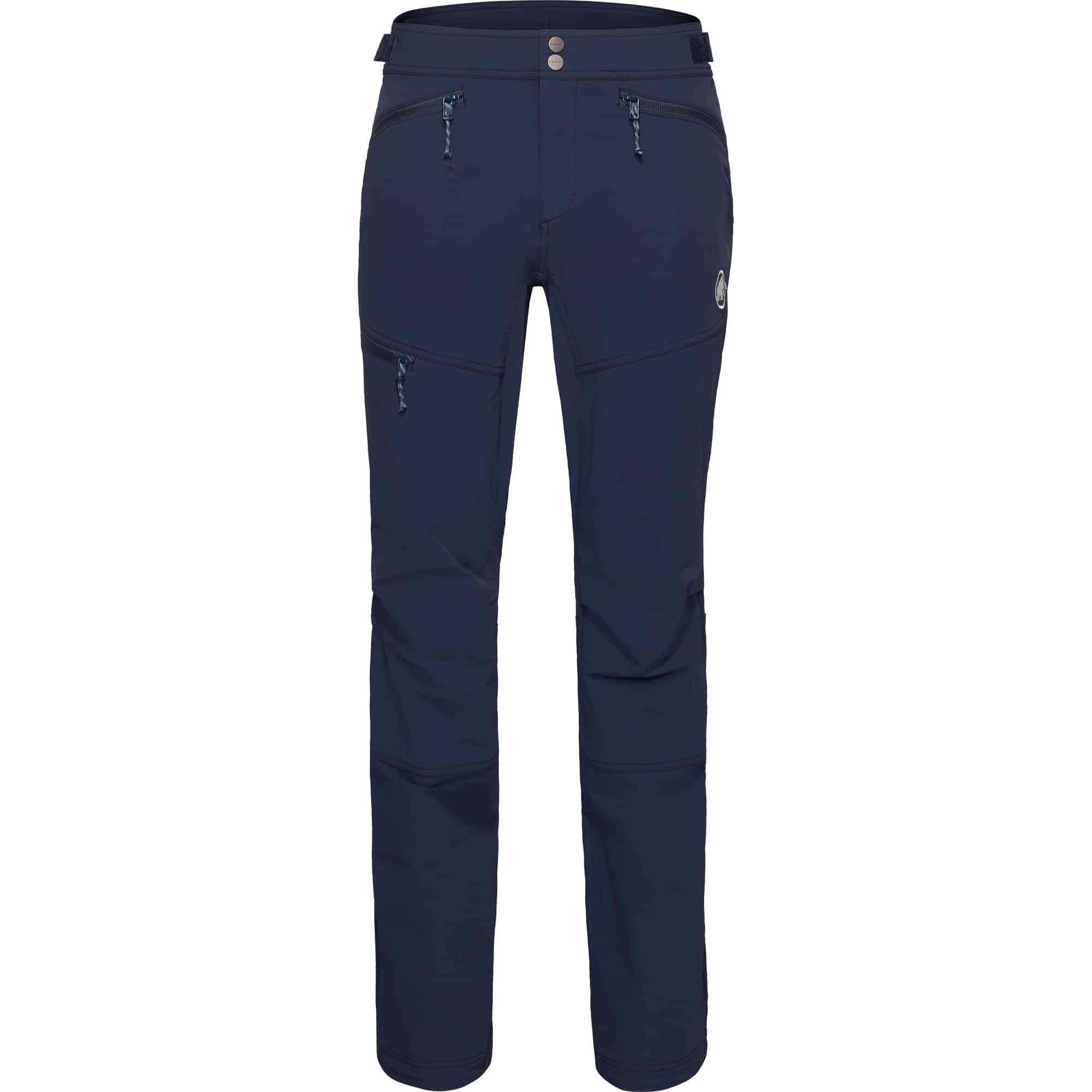 Die Mammut Taiss Herren Softshellhose ist eine strapazierfähige Hose für anspruchsvolle Touren in den Bergen und wurde speziell für Klettern, Bergsteigen und alpine Unternehmungen entwickelt. Das robuste Softshell-Doppelgewebe überzeugt durch hohe Abriebfestigkeit gegenüber Fels und Eis, während die Mammut FLEXGUARD Technologie mit 4-Wege-Stretch maximale Bewegungsfreiheit beim Klettern oder Steigeisengehen ermöglicht. Die windabweisende und atmungsaktive Materialkonstruktion wird durch eine wasserabweisende Imprägnierung ergänzt, die bei leichten Schauern zuverlässig schützt. Ein regulierbarer Bund mit Klettverschluss sorgt für ganztägigen Tragekomfort, verstellbare Beinabschlüsse mit Kordelzug verbessern die Sicht auf die Fußposition, und der verstaubare Befestigungshaken gewährleistet optimalen Halt über Bergschuhen. Klettergurtkompatible Reißverschlusstaschen bieten sicheren Stauraum für wichtige Essentials.