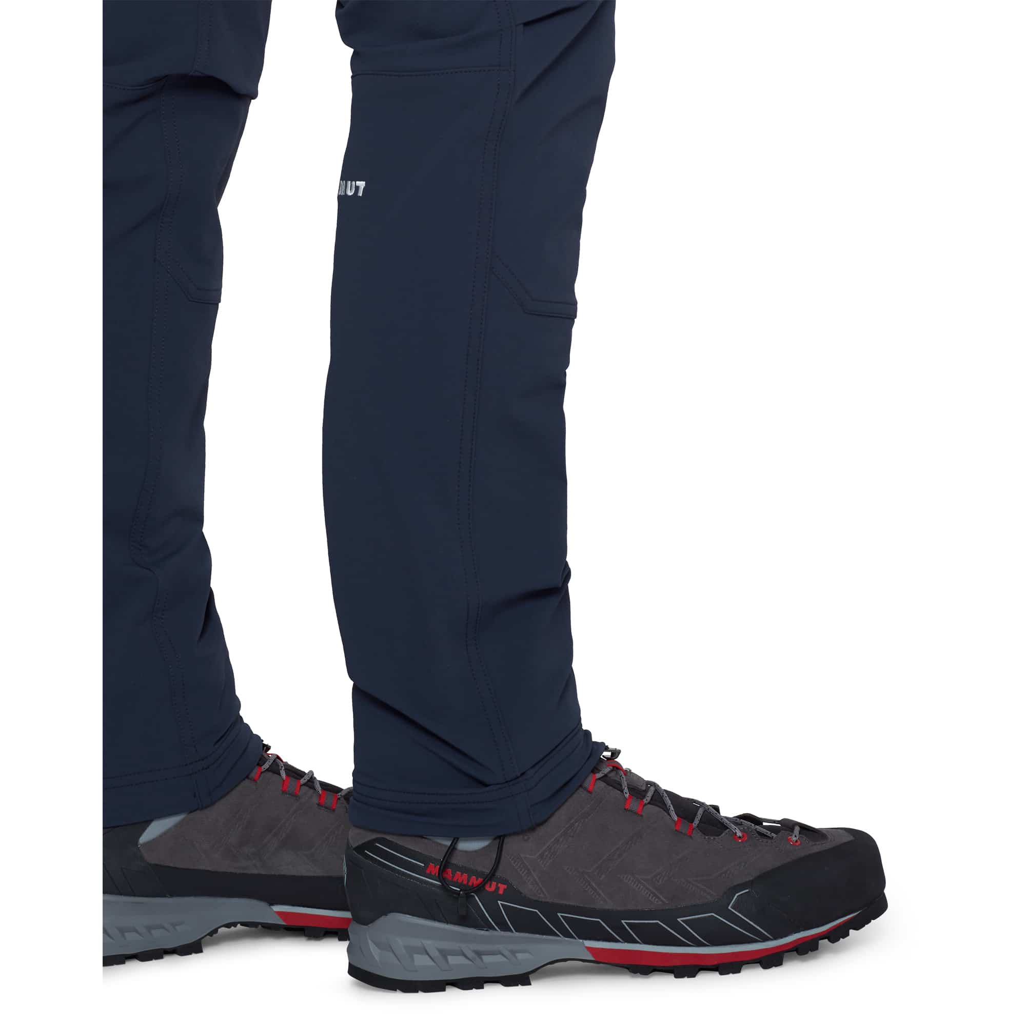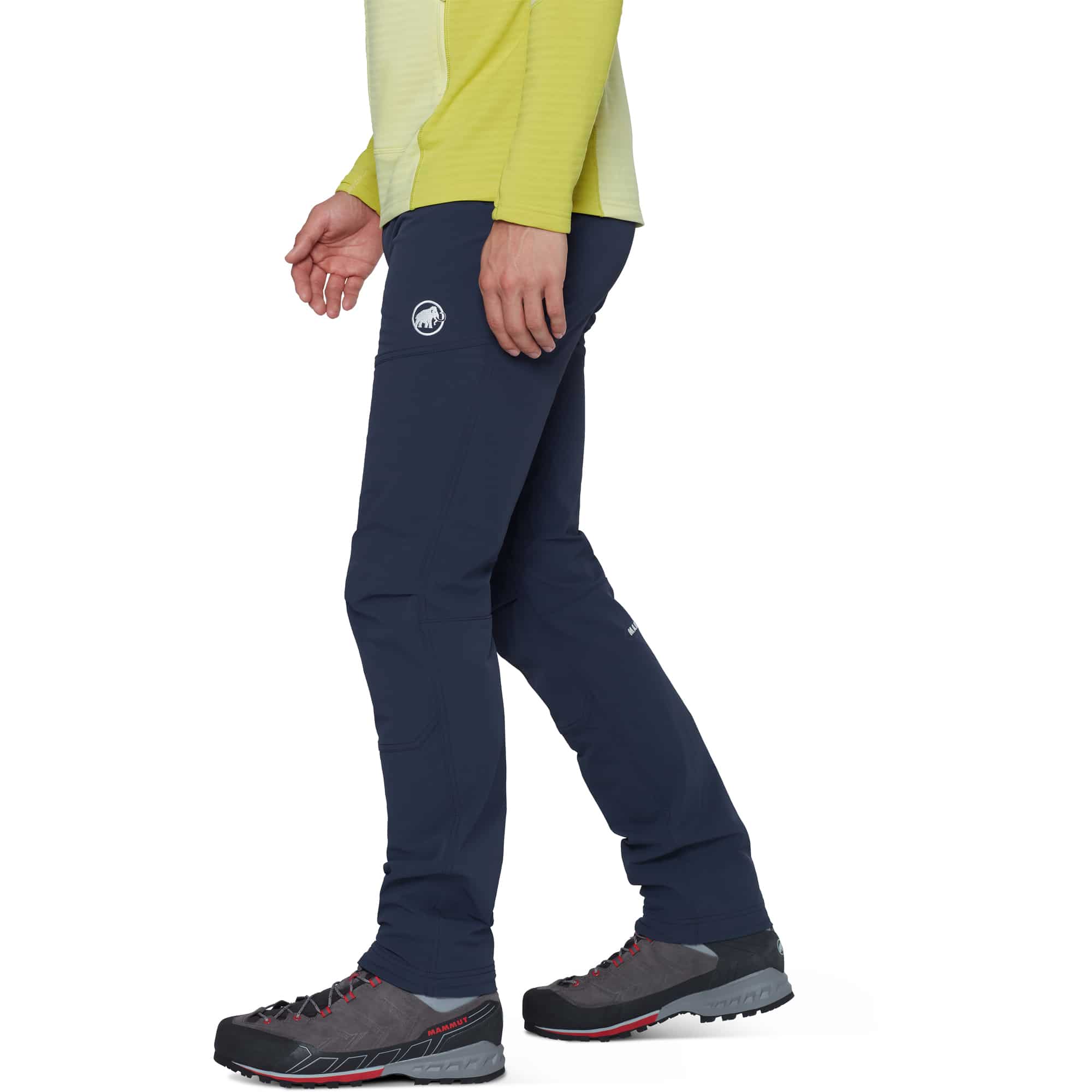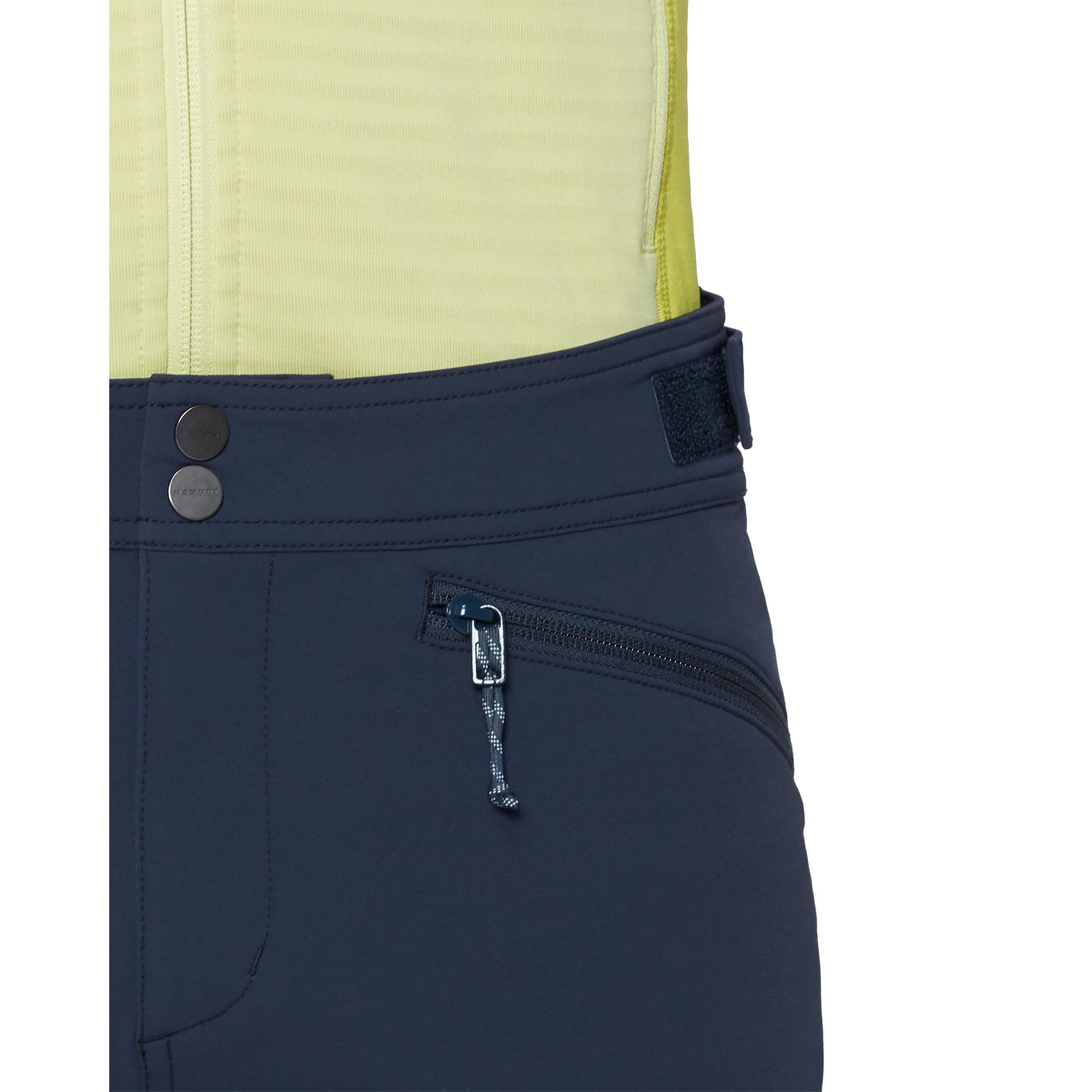 Die Mammut Taiss Herren Softshellhose ist eine strapazierfähige Hose für anspruchsvolle Touren in den Bergen und wurde speziell für Klettern, Bergsteigen und alpine Unternehmungen entwickelt. Das robuste Softshell-Doppelgewebe überzeugt durch hohe Abriebfestigkeit gegenüber Fels und Eis, während die Mammut FLEXGUARD Technologie mit 4-Wege-Stretch maximale Bewegungsfreiheit beim Klettern oder Steigeisengehen ermöglicht. Die windabweisende und atmungsaktive Materialkonstruktion wird durch eine wasserabweisende Imprägnierung ergänzt, die bei leichten Schauern zuverlässig schützt. Ein regulierbarer Bund mit Klettverschluss sorgt für ganztägigen Tragekomfort, verstellbare Beinabschlüsse mit Kordelzug verbessern die Sicht auf die Fußposition, und der verstaubare Befestigungshaken gewährleistet optimalen Halt über Bergschuhen. Klettergurtkompatible Reißverschlusstaschen bieten sicheren Stauraum für wichtige Essentials.