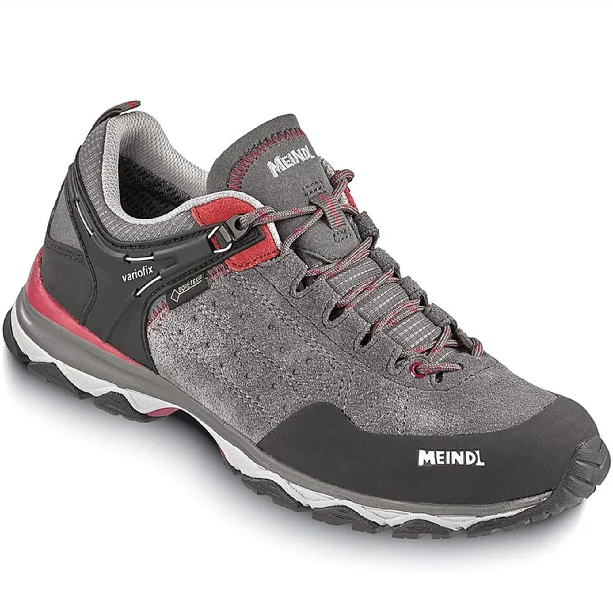 Der Ontario GTX von Meindl ist ein sportlicher Outdoorschuh für Damen. Der leichtgewichtige Multifunktionsschuh kommt mit einem atmungsaktiven GORE-TEX® Futter, um einen optimalen Regenschutz zu bieten. Das robuste Außenmaterial aus Veloursleder und Mesh mit abriebfesten Verstärkungen schützt dabei vor spitzen Steinen und scharfen Kanten. Zudem verfügt der Multi-Low-Schuh über ein atmungsaktives AIR-ACTIVE® Fußbett und eine strapazierfähige Gummiprofilsohle, die auch auf langen Touren einen hohen Gehkomfort ermöglichen. Das variofix®-Schnürsystem sorgt für eine perfekte Anpassung im Fersenbereich.
