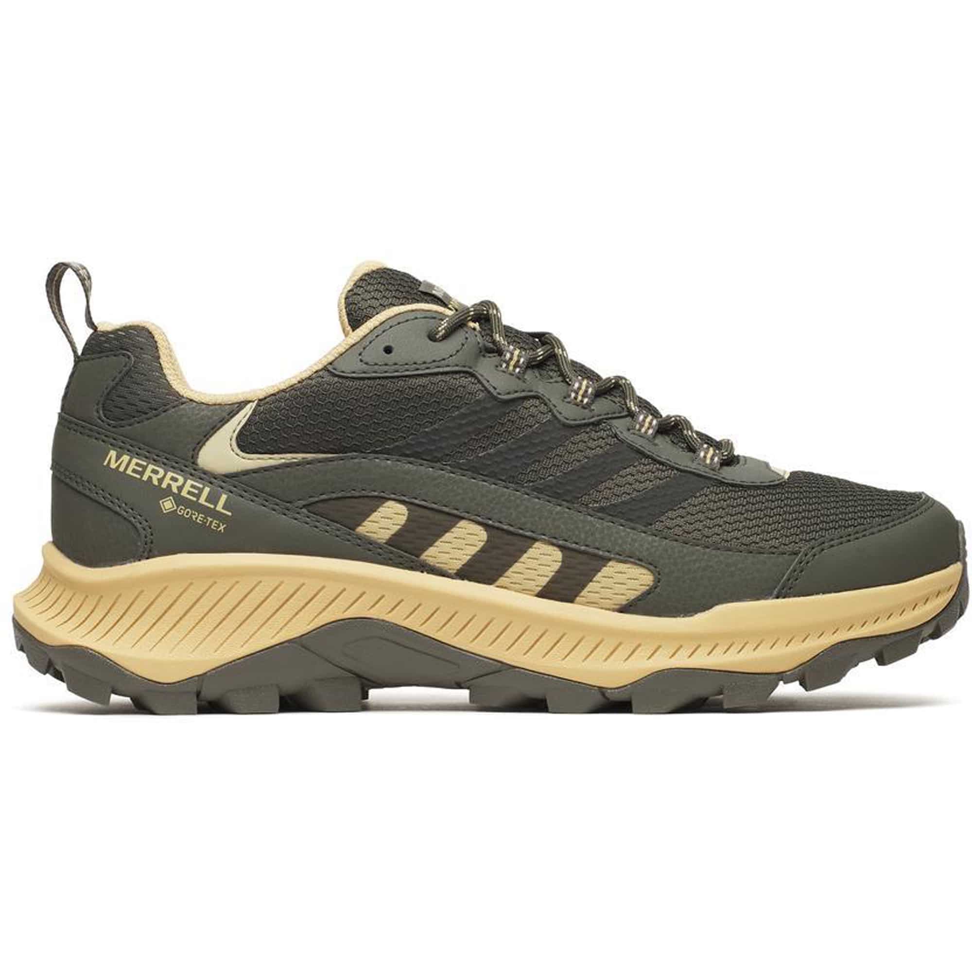 Die Speed Strike 2 Gore-Tex Herren Multifunktionsschuhe von Merrell setzen neue Maßstäbe für aktive Outdoor-Enthusiasten. Mit einer außergewöhnlich atmungsaktiven, wasserdichten GORE-TEX Membran trotzen diese Schuhe auch den widrigsten Wetterbedingungen. Das Obermaterial besteht aus wasserdichtem Kunstleder und Ripstop, sodass sie optimalen Schutz bieten. Besonders hervorzuheben ist die nachhaltige Fertigung: Schnürsenkel und Gewebe sind zu 100 % recycelt. Der wattierte Kragen sorgt für zusätzlichen Komfort, während die durchgehende Zunge Schmutz effektiv abweist. Die abriebfeste Fersen- und Zehenkappe aus synthetischem Material schützt vor Stößen. Praktische Schlaufen an der Ferse erleichtern das Anziehen, und die Kompatibilität mit Karabinern sorgt für Vielseitigkeit. Das atmungsaktive Innenfutter sowie die geruchshemmende Cleansport NXT Technologie halten deine Füße frisch. Erlebe Stabilität und Tragekomfort mit der leichten Zwischensohle aus EVA-Schaum und der strapazierfähigen Gummilaufsohle – bereit für dein nächstes Abenteuer!