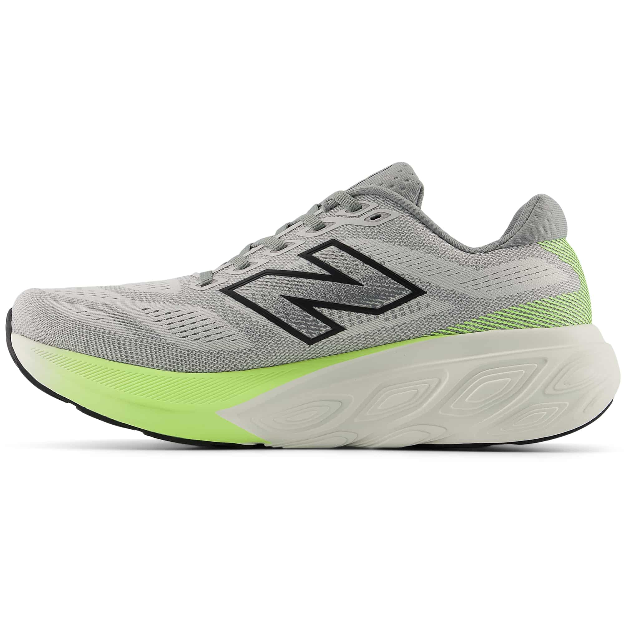 Die Fresh Foam-Technologie von New Balance ist eine speziell entwickelte Mittelsohle aus leichtem, weichem Schaumstoff, die für außergewöhnliche Dämpfung, Komfort und gleichmäßige Stoßabsorption sorgt. Sie bietet eine reaktionsfreudige Energierückgabe und ein weiches, stabilisierendes Laufgefühl, das besonders auf langen Strecken und bei regelmäßigem Training die Ermüdung reduziert.