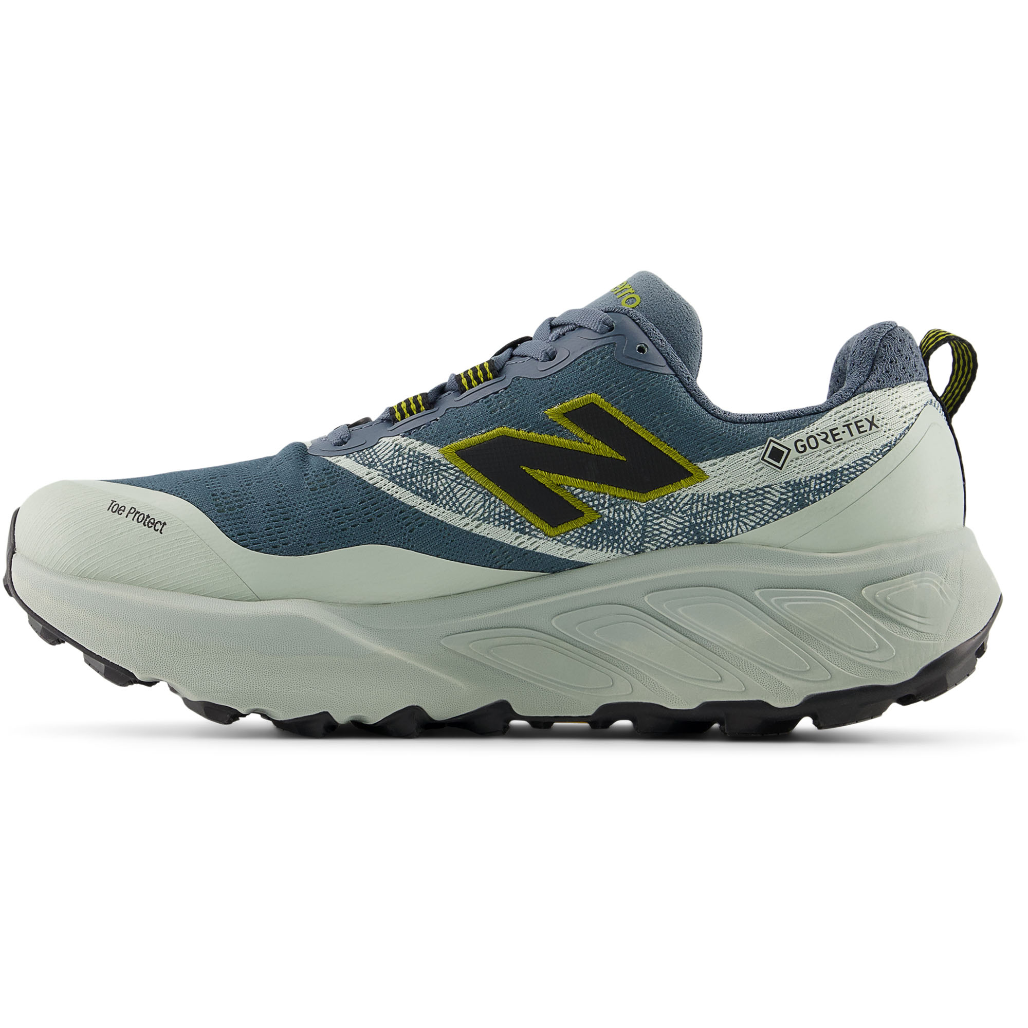 Der New Balance Fresh Foam X Hierro v9 GORE‑TEX® ist ein wasserdichter Trailrunning- und Wanderschuh für anspruchsvolles Gelände, der durch die GORE‑TEX®-Membran Schutz vor Nässe und Wind bietet und gleichzeitig atmungsaktiv bleibt. Die Fresh Foam X-Zwischensohle mit Dual-Density-Technologie sorgt für optimale Dämpfung und Stabilität auf unebenem Untergrund, während die Vibram® Megagrip™-Außensohle mit Traction-Lug™-Profil sicheren Halt auf nassen und trockenen Trails garantiert. Toe-Protect-Technologie schützt die Zehen vor Steinen und Geröll, die gefaltete Zunge verbessert den Sitz und hält Schmutz fern. Das Obermaterial aus atmungsaktivem Mesh und Synthetik in Kombination mit klassischem Schnürsystem gewährleistet Komfort, Passform und Langlebigkeit bei Outdoor-Aktivitäten.