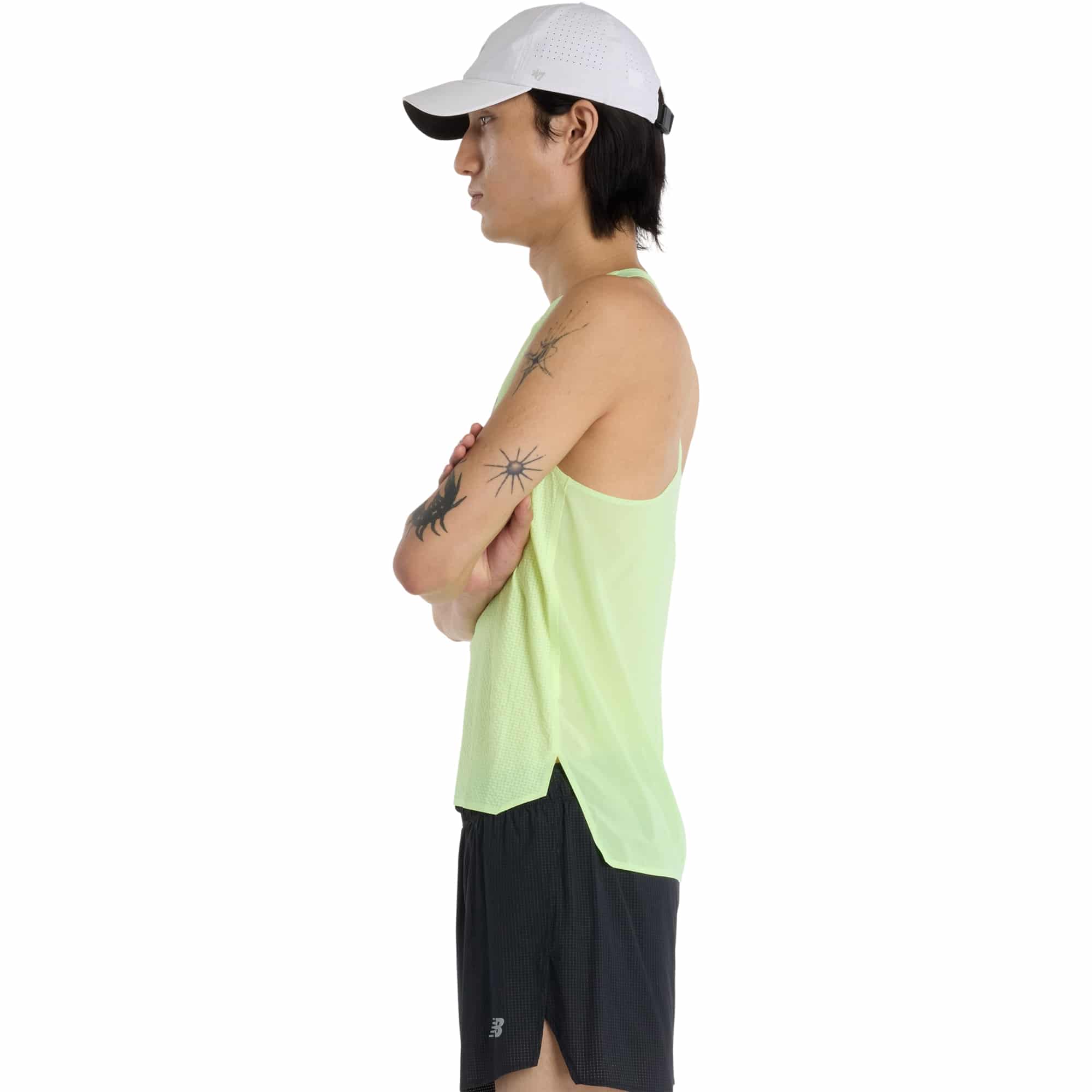 Das Race Day Ultra Light Singlet Laufshirt für Herren von New Balance wurde speziell für ambitionierte Läufer entwickelt, die am Wettkampftag alles geben wollen. Mit seinem extrem leichten Design unterstützt es dich dabei, dein volles Tempo zu entfalten – ganz ohne Ablenkung. Das atmungsaktive, schnelltrocknende Material sorgt für ein angenehmes Körperklima, selbst bei intensiver Belastung. Die feuchtigkeitsableitende NB ICEx Technologie hält deine Haut angenehm trocken, sodass du dich ganz auf deine Performance konzentrieren kannst. Mit seiner minimalistischen, sportlichen Passform und clever platzierten Nähten ist dieses Shirt wie gemacht für persönliche Bestzeiten – egal ob auf der Straße oder der Laufbahn.