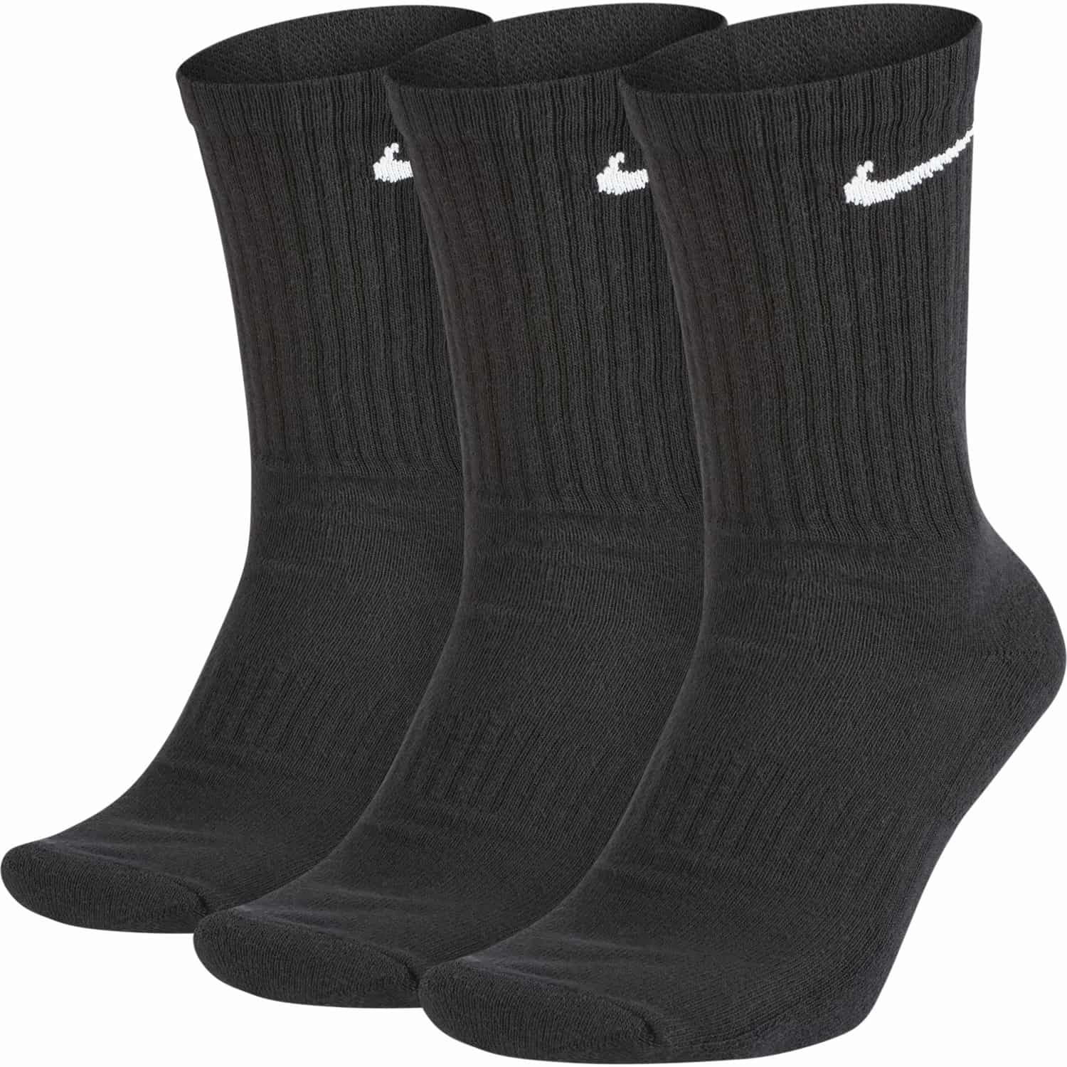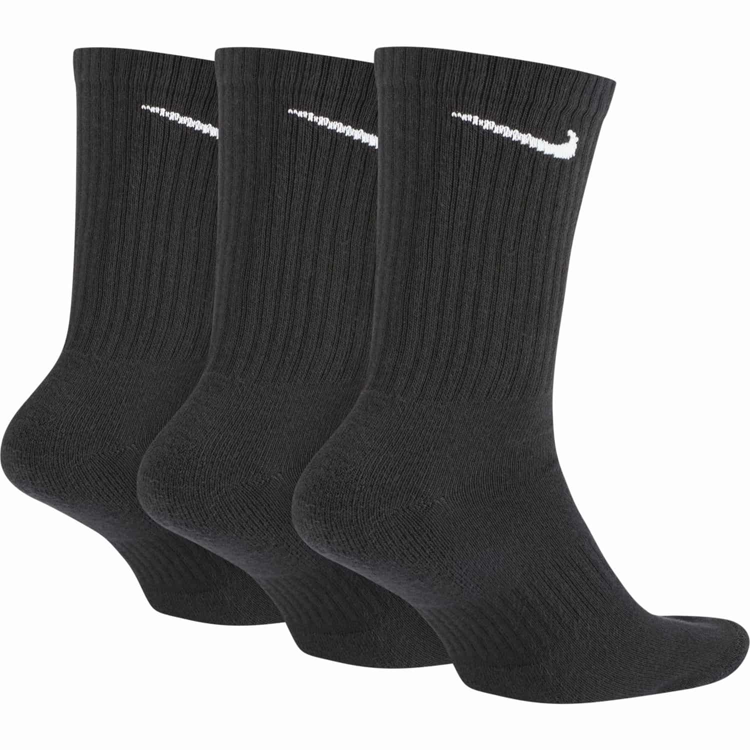 Mit den Nike Everyday Cushioned Socken schaffst du dein Workout. Schweißableitende Technologie hält dich kühl und trocken und die dicke Terry-Sohle sorgt für Tragekomfort, wenn du schwere Gewichte hebst und noch länger läufst. Das bandierte Fußgewölbe sorgt für ein eng anliegendes, stützendes Tragegefühl. Das Paket mit drei Paaren bedeutet, dass du immer einen Backup-Plan hast.