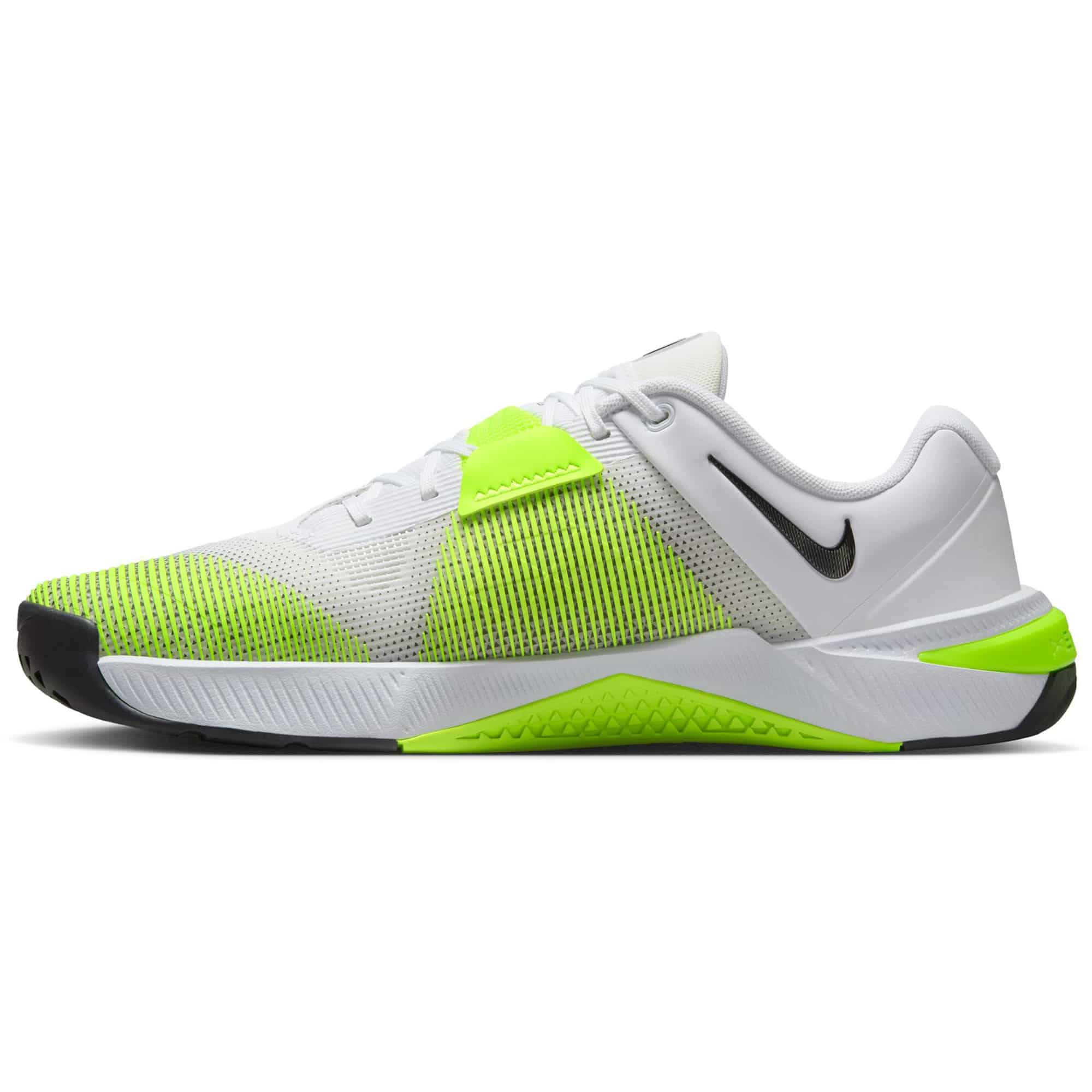 Der Nike Metcon 10 ist ein vielseitiger Workout-Schuh für Herren, der speziell für intensive Trainingseinheiten entwickelt wurde und dir hilft, dein Crosstraining-Potenzial voll auszuschöpfen. Seine extrastarke Hyperlift Plate unter der Ferse sorgt für maximale Stabilität beim Heben schwerer Gewichte – etwa bei Kniebeugen, Cleans oder Kreuzheben – ohne dabei das natürliche Laufgefühl zu beeinträchtigen. Gleichzeitig bietet der breitere Zehenbereich im Vergleich zum Metcon 9 mehr Platz, damit sich die Zehen besser ausbreiten und die Kraft optimal über den gesamten Fuß verteilt werden kann. Für noch mehr Dynamik und Beweglichkeit ist der Metcon 10 mit einer Mittelsohle aus leichtem ReactX-Schaumstoff ausgestattet, die eine höhere Energierückgabe und verbesserte Dämpfung bietet. Flexkerben in der Außensohle unterstützen schnelle, explosive Bewegungen wie Box Jumps oder Sprints und sorgen für eine reaktionsfreudige Federung. Auch in puncto Rutschfestigkeit und Langlebigkeit setzt der Schuh neue Maßstäbe: Eine griffige Textur im Mittelfuß- und Zehenbereich bietet hervorragenden Halt, selbst auf glatten Böden. Das überarbeitete Traktionsprofil sorgt zudem für eine stabile, flache Auflagefläche beim Gewichtheben. Für sicheren Halt sorgt ein Mittelfußband, das beim Schnüren den Fuß fest umschließt, während ein robuster Ferseneinsatz und eine verstärkte Schnürsenkeleinfassung zusätzlichen Support bieten. Das atmungsaktive Mesh-Obermaterial hält den Fuß angenehm kühl, während die Gummiummantelung der Mittelsohle nun leichter und schmaler gestaltet ist als beim Vorgängermodell. Ein strapazierfähiger Fersen-Clip aus Kunststoff bietet zusätzliche Stabilität – selbst bei Handstand-Push-ups. Mit seiner Kombination aus Stabilität, Reaktionsfreude und Haltbarkeit ist der Nike Metcon 10 der ideale Trainingspartner für alle, die im Gym alles geben wollen.
