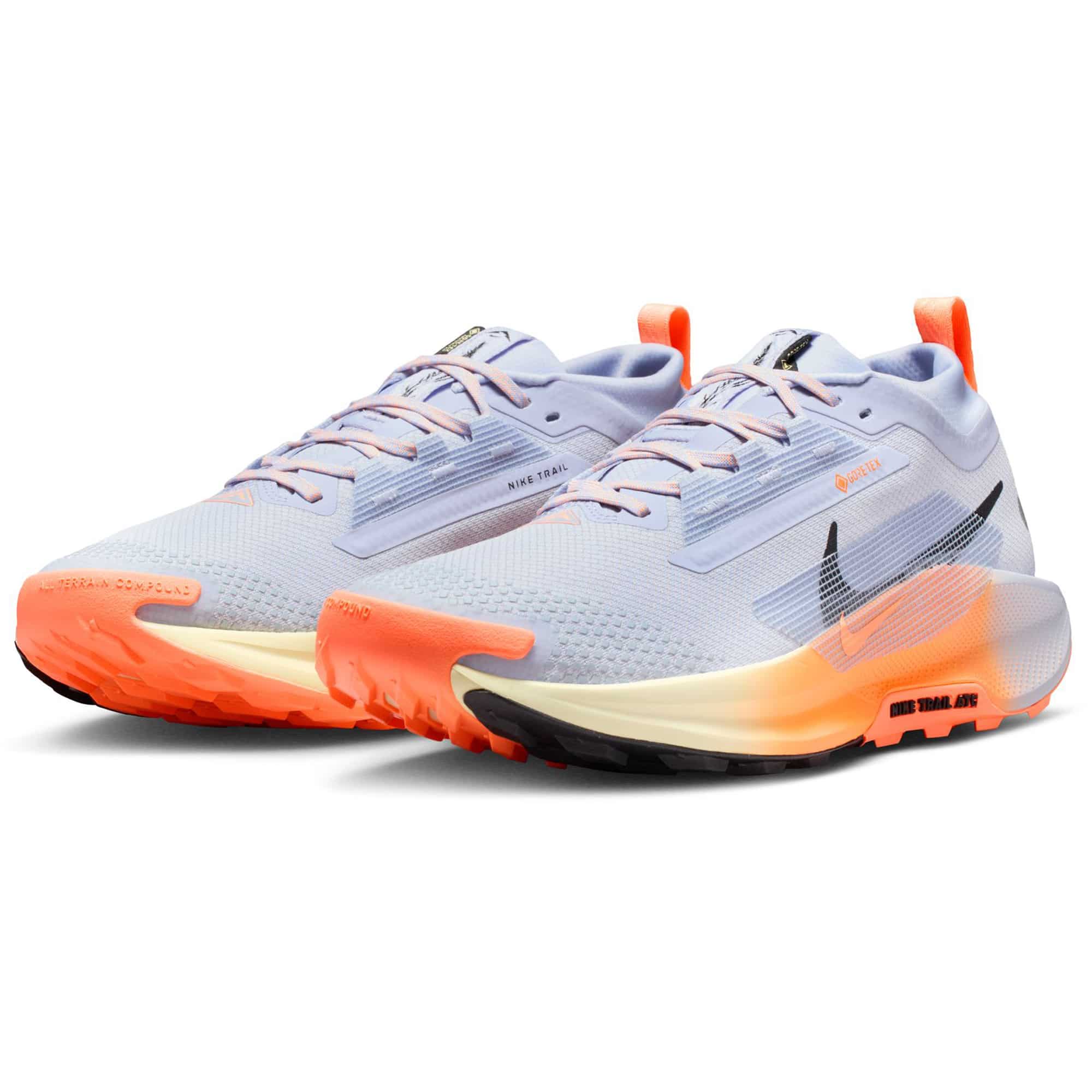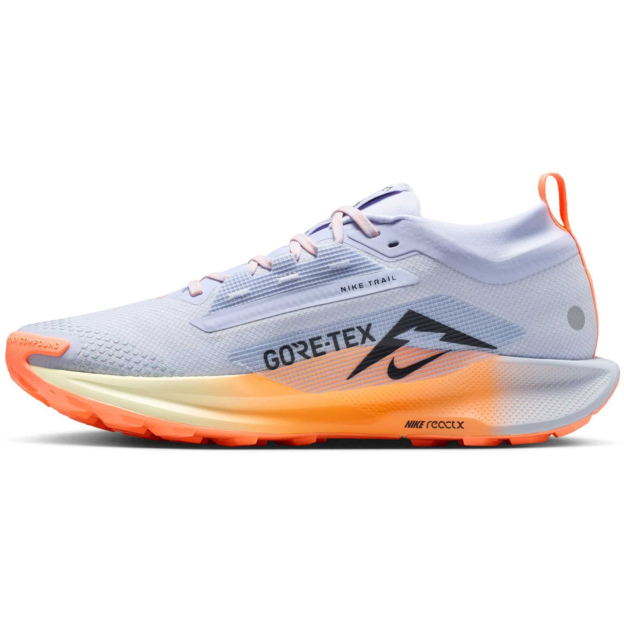 Der Nike Pegasus Trail 5 GORE-TEX ist der ideale Begleiter für Trailläufe bei jedem Wetter. Mit einem wasserdichten GORE-TEX-Obermaterial und einer 3D-gedruckten Zehenkappe bleiben deine Füße auch bei nassen Bedingungen trocken und geschützt. Die ReactX-Mittelsohle sorgt für eine reaktionsfreudige Dämpfung und bietet eine exzellente Energierückgabe, während das geringe Gewicht für einen angenehmen Tragekomfort sorgt. Besonders die Außensohle mit Nike Trail ATC-Technologie ist für jedes Gelände geeignet und liefert sowohl auf nassen als auch trockenen Böden optimalen Grip. Der robuste, hohe Schuhkragen verhindert das Eindringen von Schmutz und Steinen, sodass du dich voll auf deinen Lauf konzentrieren kannst. Reflektierende Details an der Ferse bieten erhöhte Sichtbarkeit bei schlechten Lichtverhältnissen.