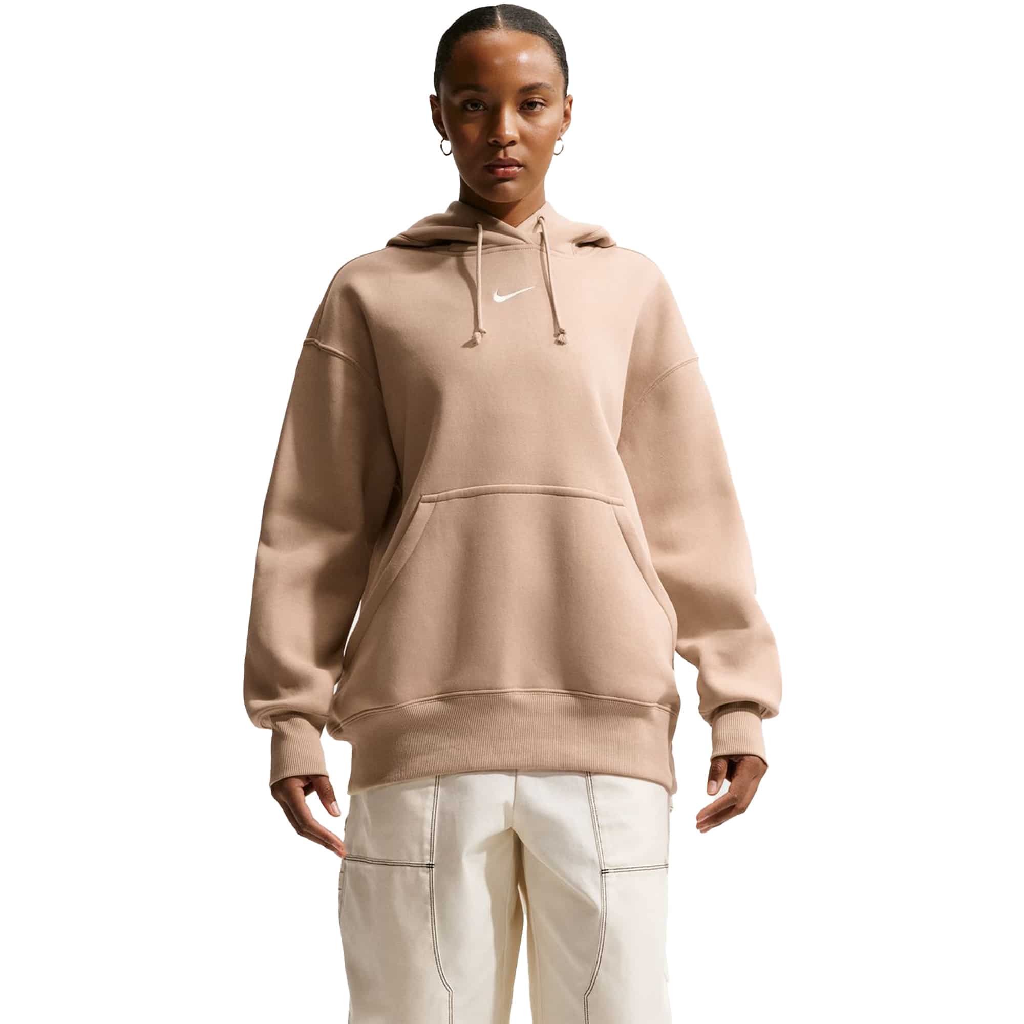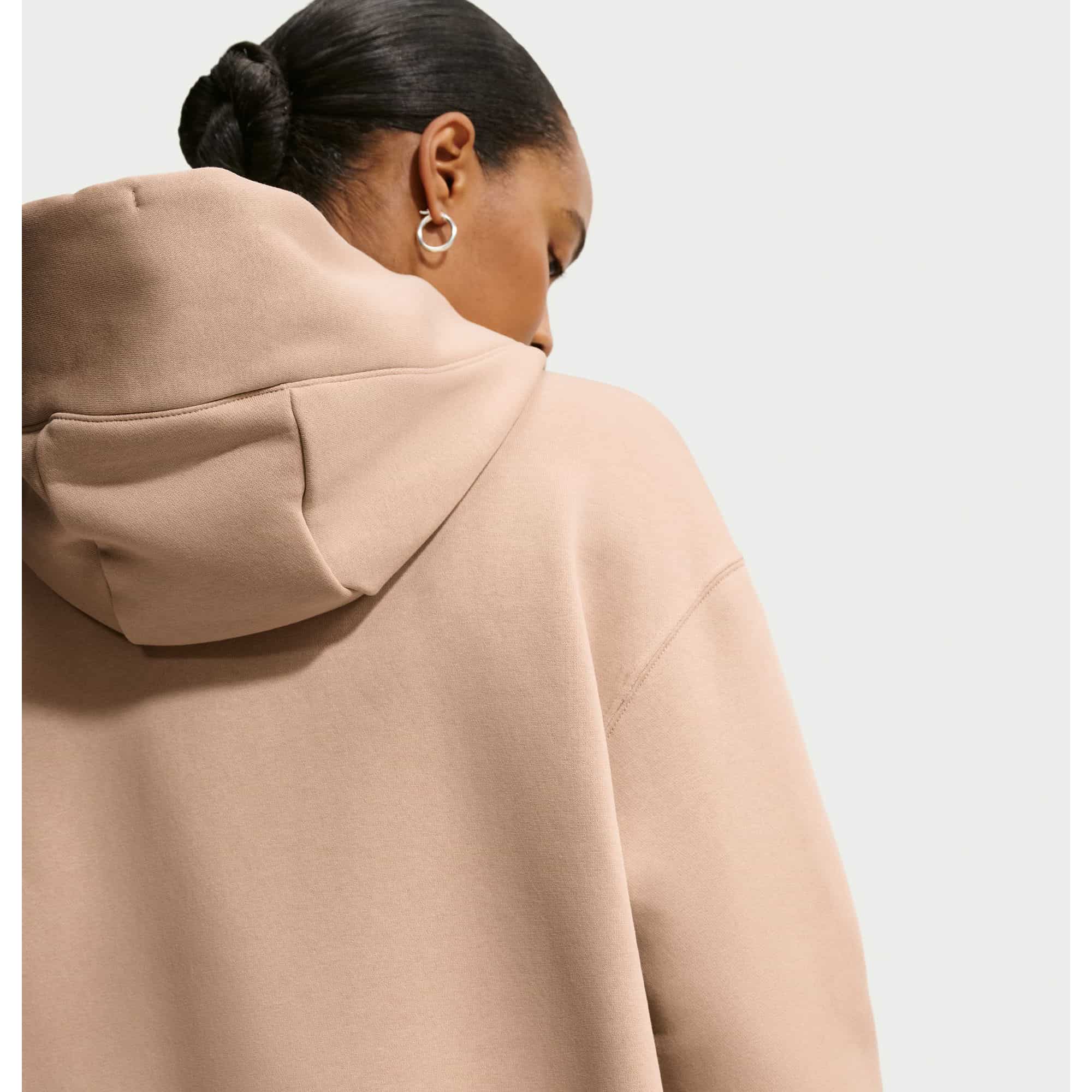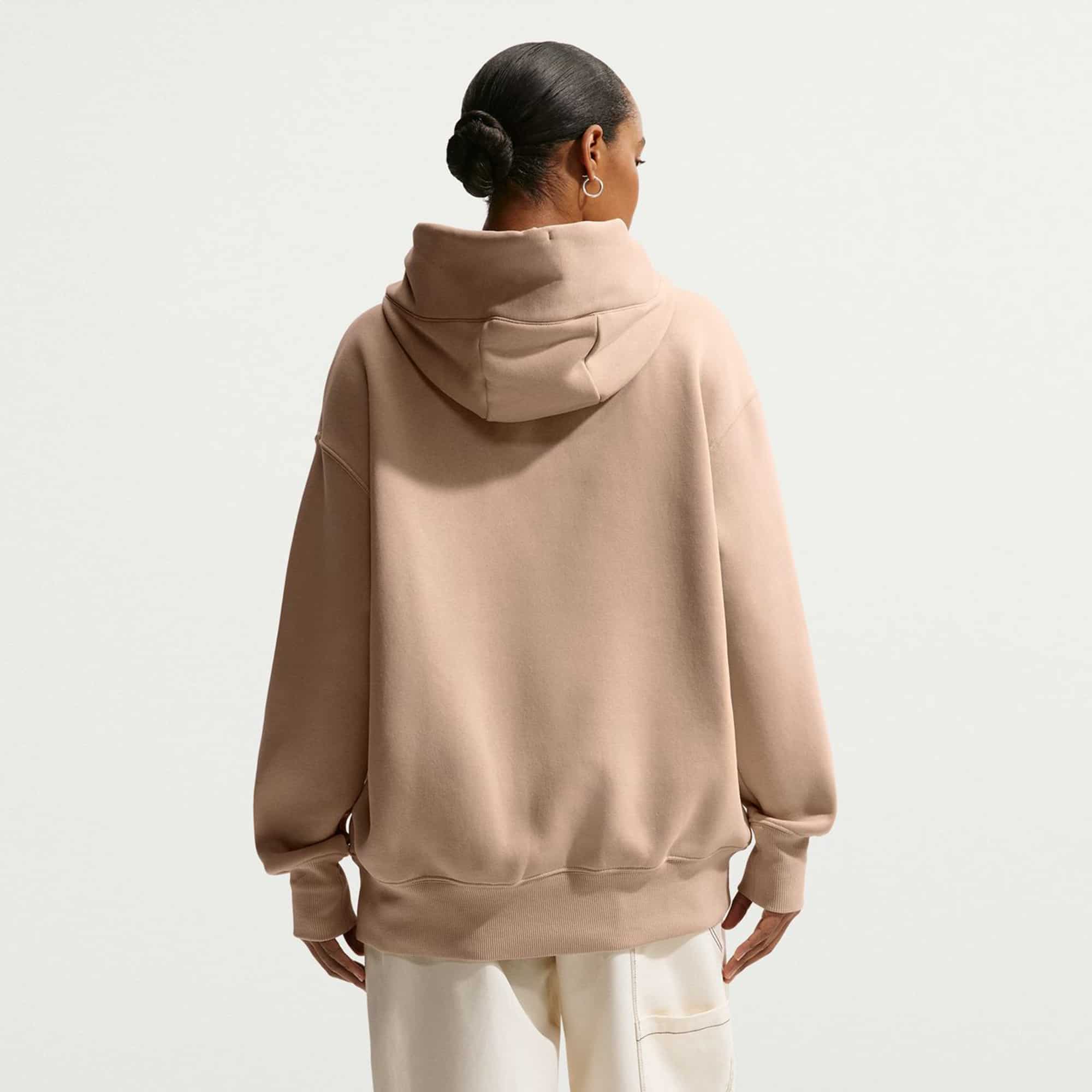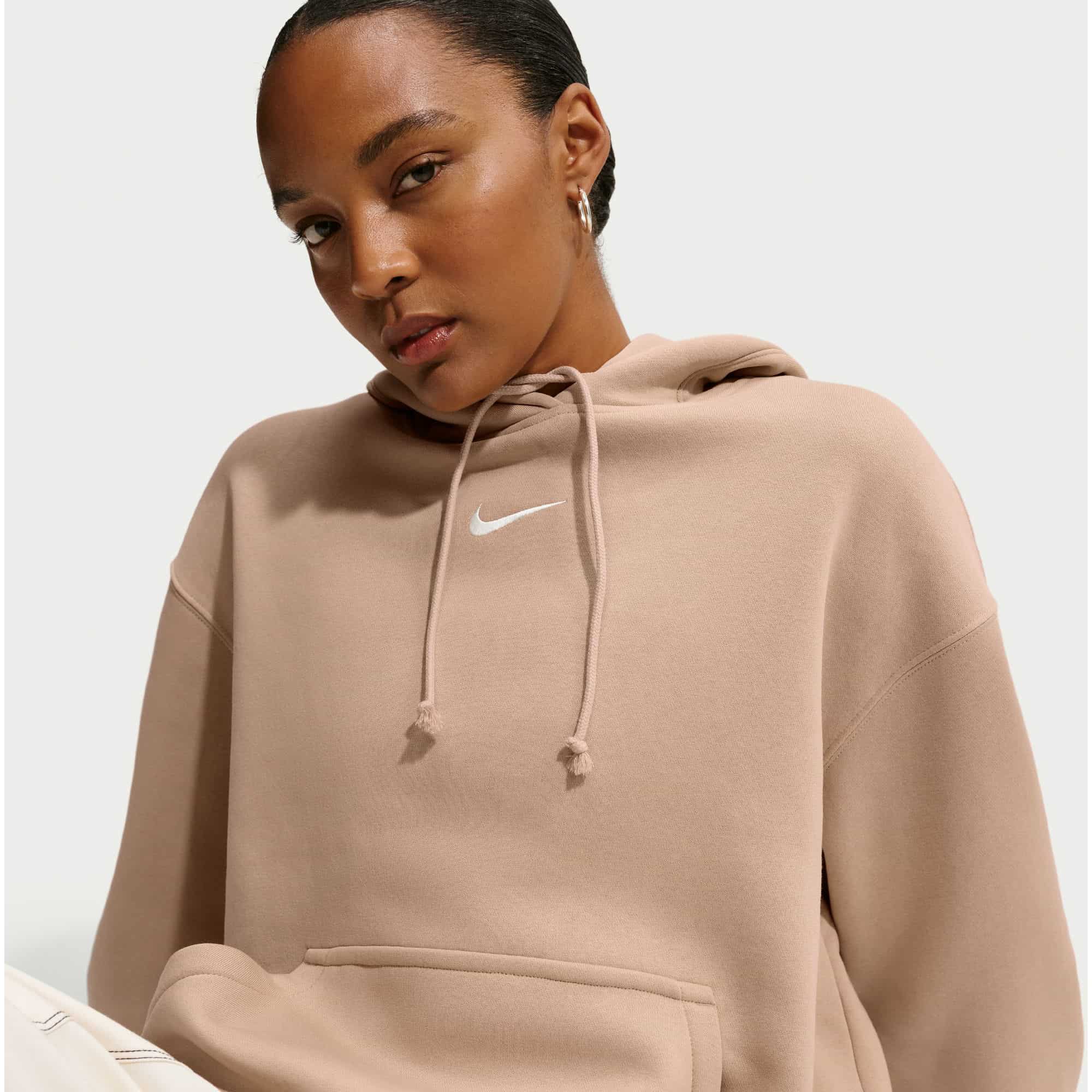 Die neue Nike Luxus-Loungewear vereint Stil, Komfort und Vielseitigkeit in einem. Dieser klassische Phoenix Fleece Damen Hoodie aus mittelschwerem Fleece-Material bietet nicht nur wohltuende Wärme, sondern auch ein weiches, strukturiertes Tragegefühl. Das angeraute Fleece auf der Innenseite sorgt für kuscheligen Komfort, während die geschmeidige Außenseite für eine elegante Optik sorgt. Die tief angesetzten Schultern und großzügigen Ärmel schaffen einen entspannten Oversize-Look.