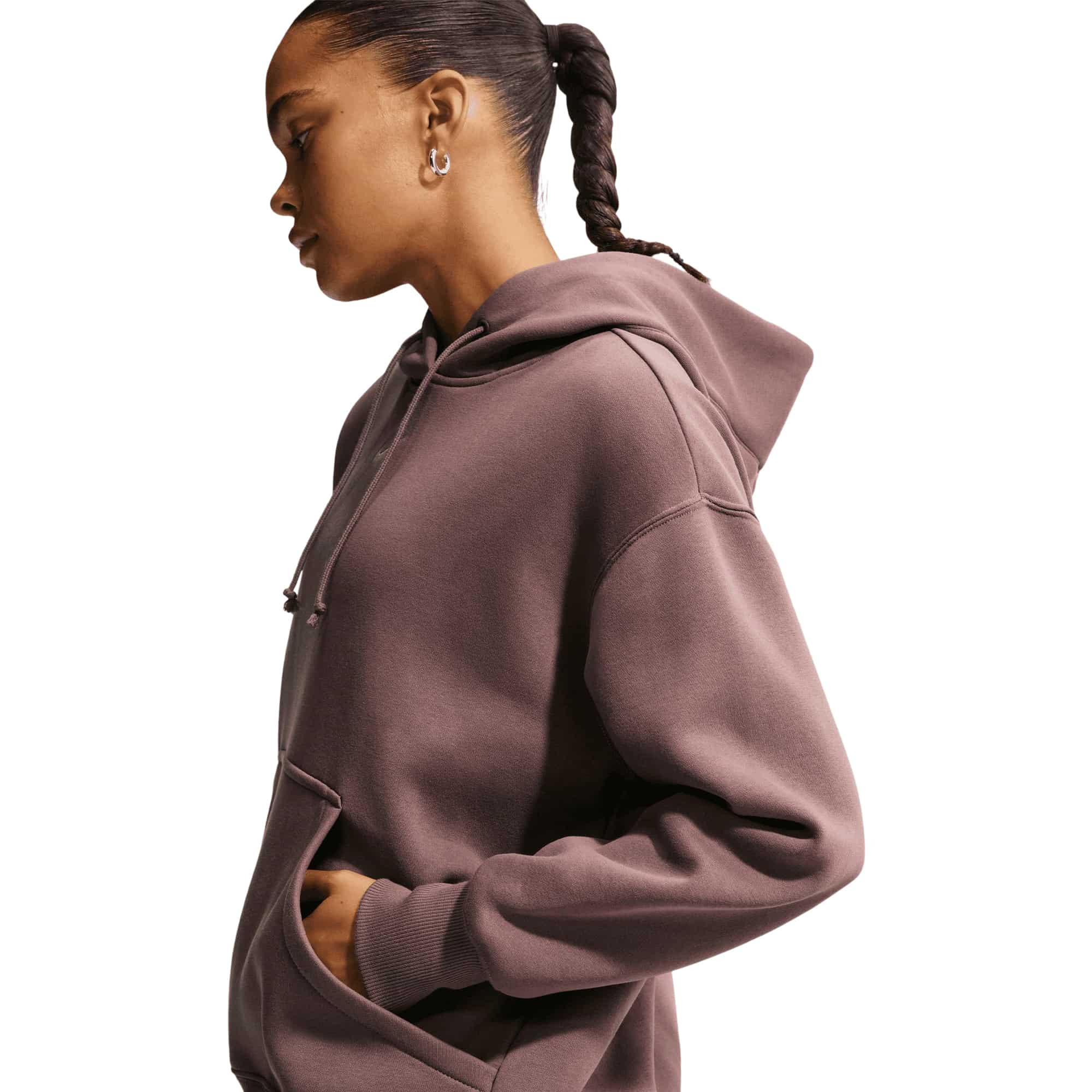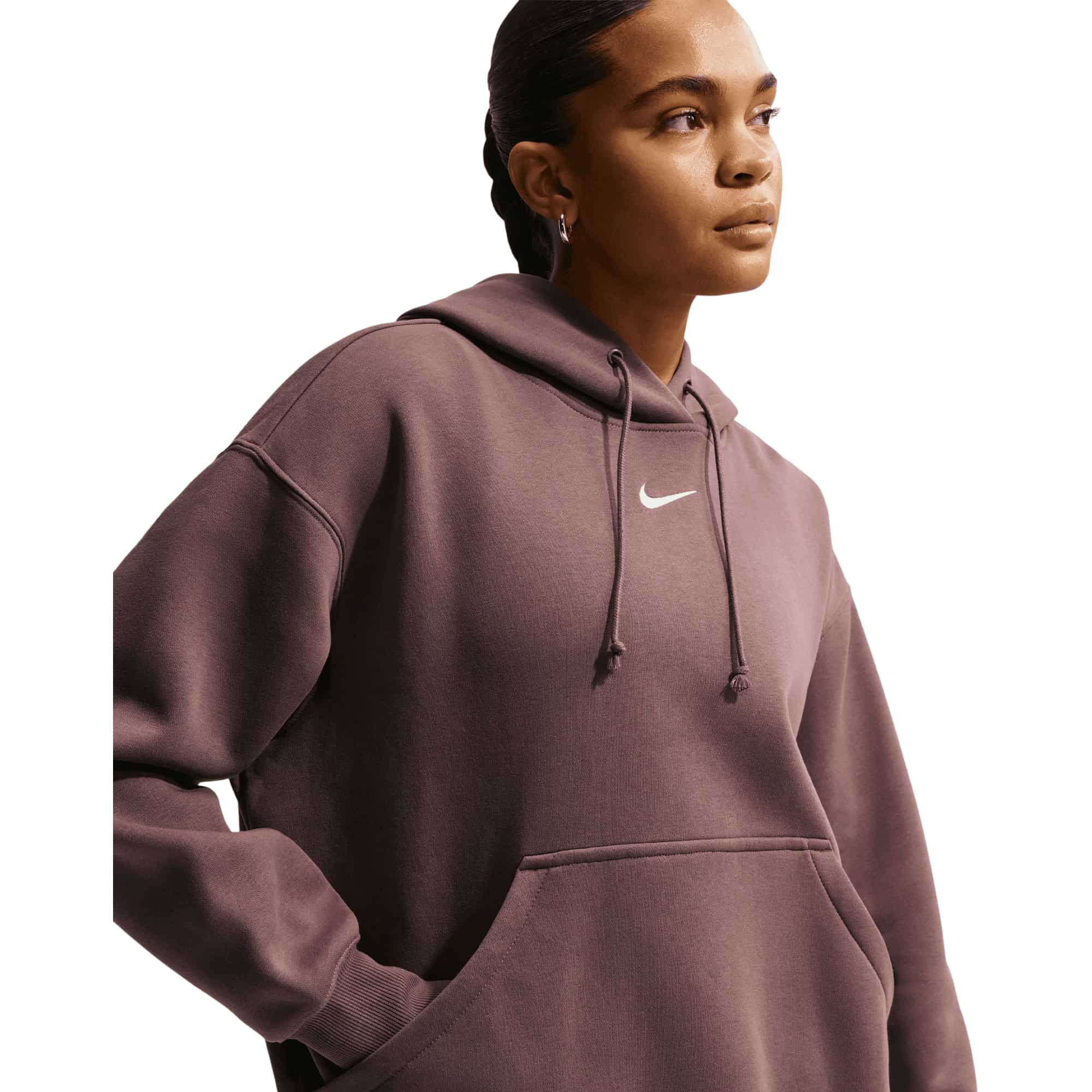 Die neue Nike Luxus-Loungewear vereint Stil, Komfort und Vielseitigkeit in einem. Dieser klassische Phoenix Fleece Damen Hoodie aus mittelschwerem Fleece-Material bietet nicht nur wohltuende Wärme, sondern auch ein weiches, strukturiertes Tragegefühl. Das angeraute Fleece auf der Innenseite sorgt für kuscheligen Komfort, während die geschmeidige Außenseite für eine elegante Optik sorgt. Die tief angesetzten Schultern und großzügigen Ärmel schaffen einen entspannten Oversize-Look.