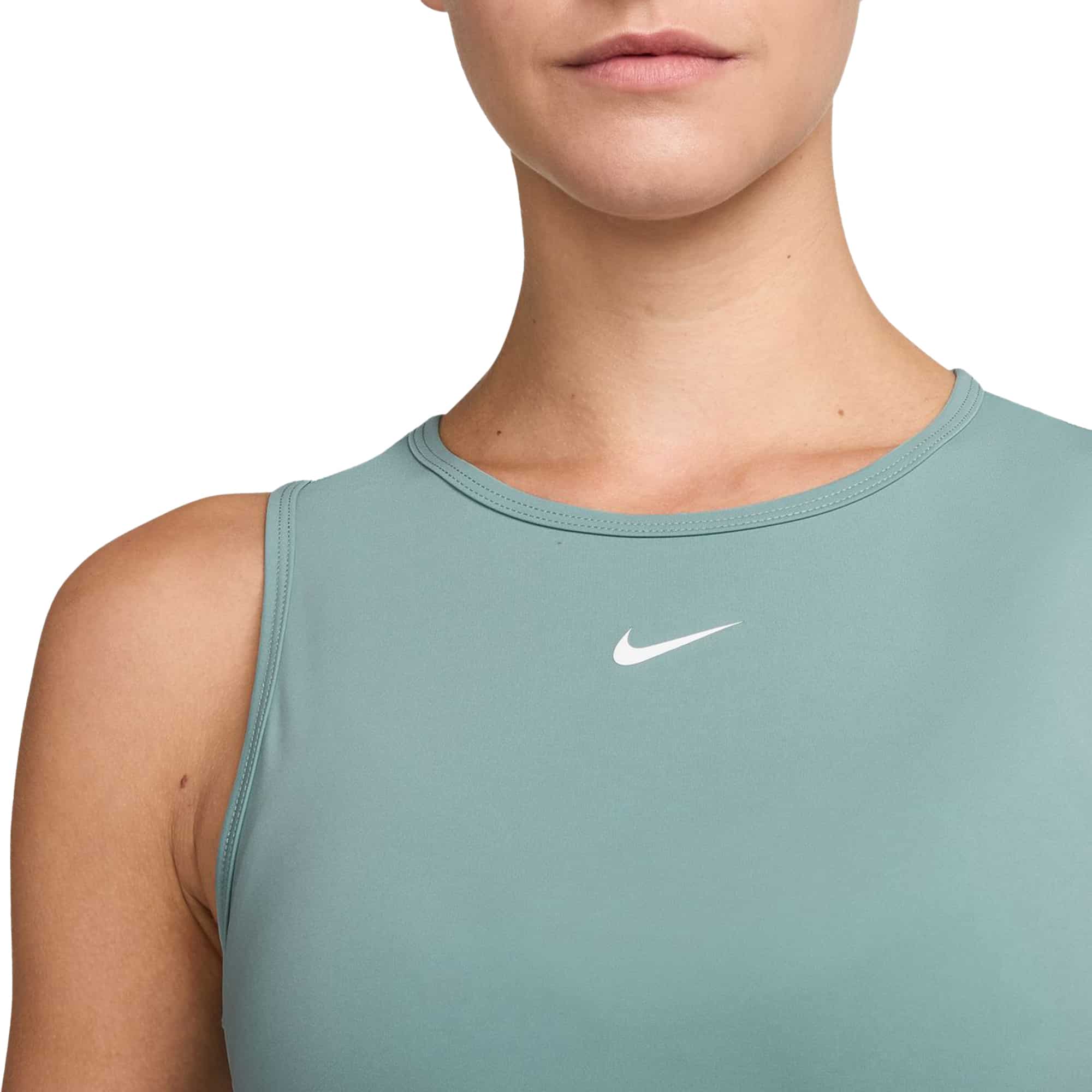 Das Pro Dri-Fit Damen Crop Top von Nike ist die perfekte Wahl für aktive Frauen, die Style und Funktionalität vereinen möchten. Dieses Tanktop überzeugt mit seiner atmungsaktiven Dri-FIT-Technologie, die Feuchtigkeit effektiv ableitet und dich kühl hält, egal wie intensiv dein Workout ist. Hergestellt aus teilweise recyceltem Material, unterstützt es eine nachhaltige Lebensweise. Das körperbetonte Design und der Rundhalsausschnitt sorgen für einen modernen Look, der sowohl im Fitnessstudio als auch in der Freizeit eine gute Figur macht. Ob beim Yoga, Laufen oder im Alltag – dieses Crop-Top bietet dir höchsten Tragekomfort dank schnelltrocknenden und kühlenden Eigenschaften. Mit einem Gewicht, das kaum spürbar ist, wird jede Bewegung zum Vergnügen.