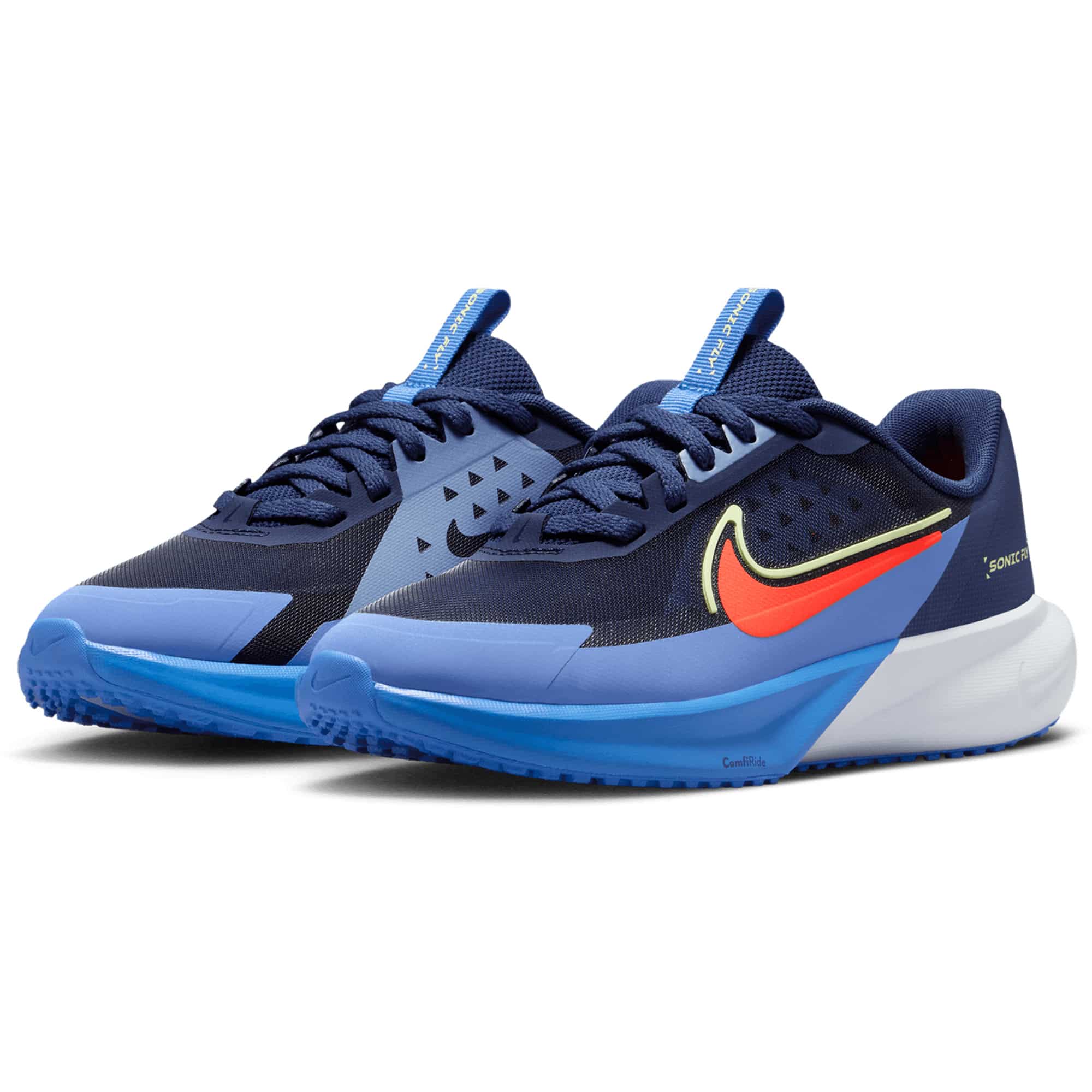 Mit dem Nike Sonic Fly Laufschuh für ältere Kinder starten junge Läuferinnen und Läufer durch. Das dynamische Design, inspiriert vom Luftstrom beim Laufen, steht für Geschwindigkeit und Stil – perfekt für Schule, Freizeit oder den Laufsport. Die Kombination aus reaktionsfreudiger Dämpfung und sicherem Halt bietet ein komfortables und unterstützendes Tragegefühl, selbst bei längeren Laufstrecken. Dank des integrierten Dynamic Fit-Bands unter den Schnürsenkeln wird der Fuß fest umschlossen – für optimale Passform und Stabilität. Das atmungsaktive Mono-Mesh-Obermaterial sorgt für angenehme Belüftung, während die strapazierfähige Gummisohle hervorragende Traktion und Grip bietet – auf Asphalt, Sportplatz oder im Gelände.
