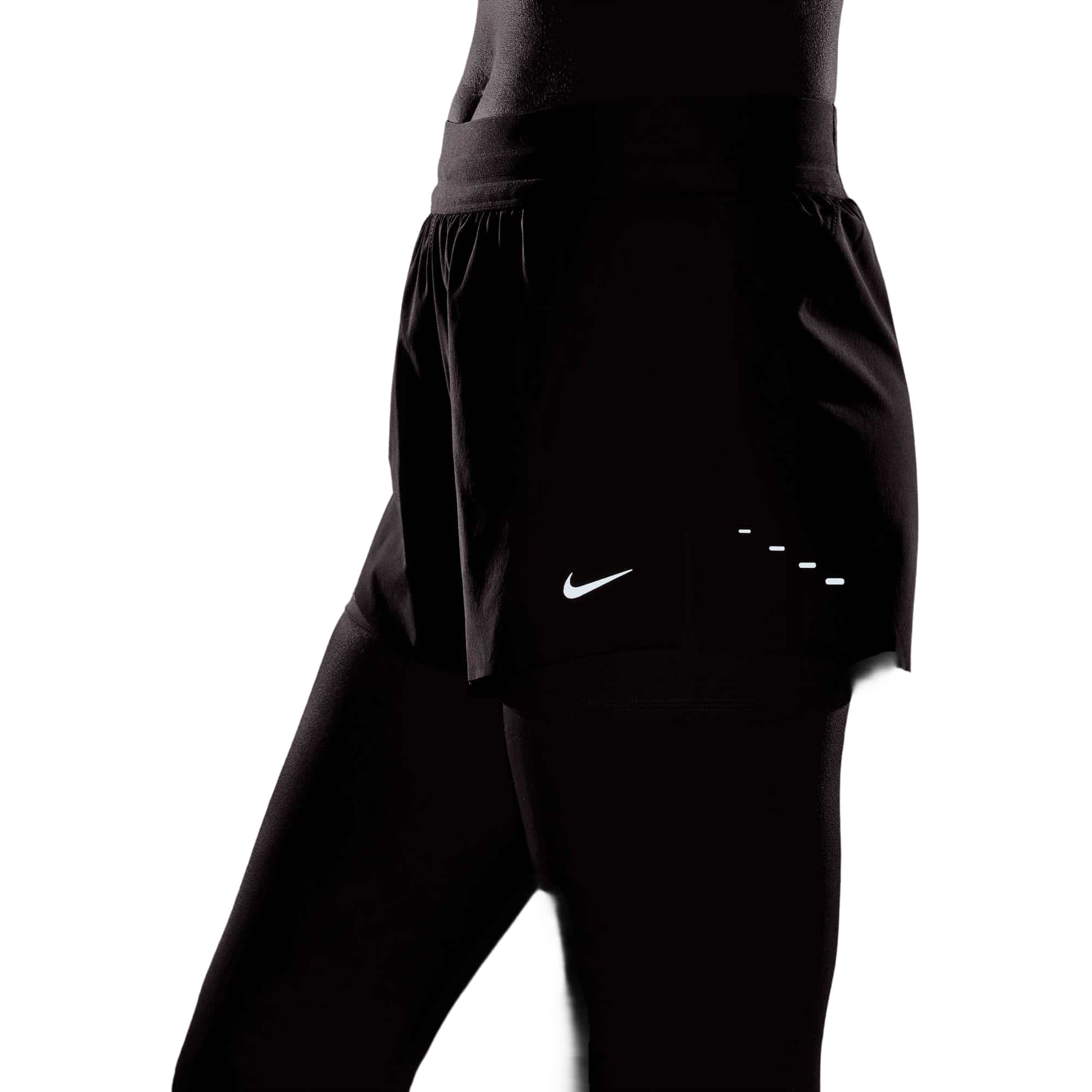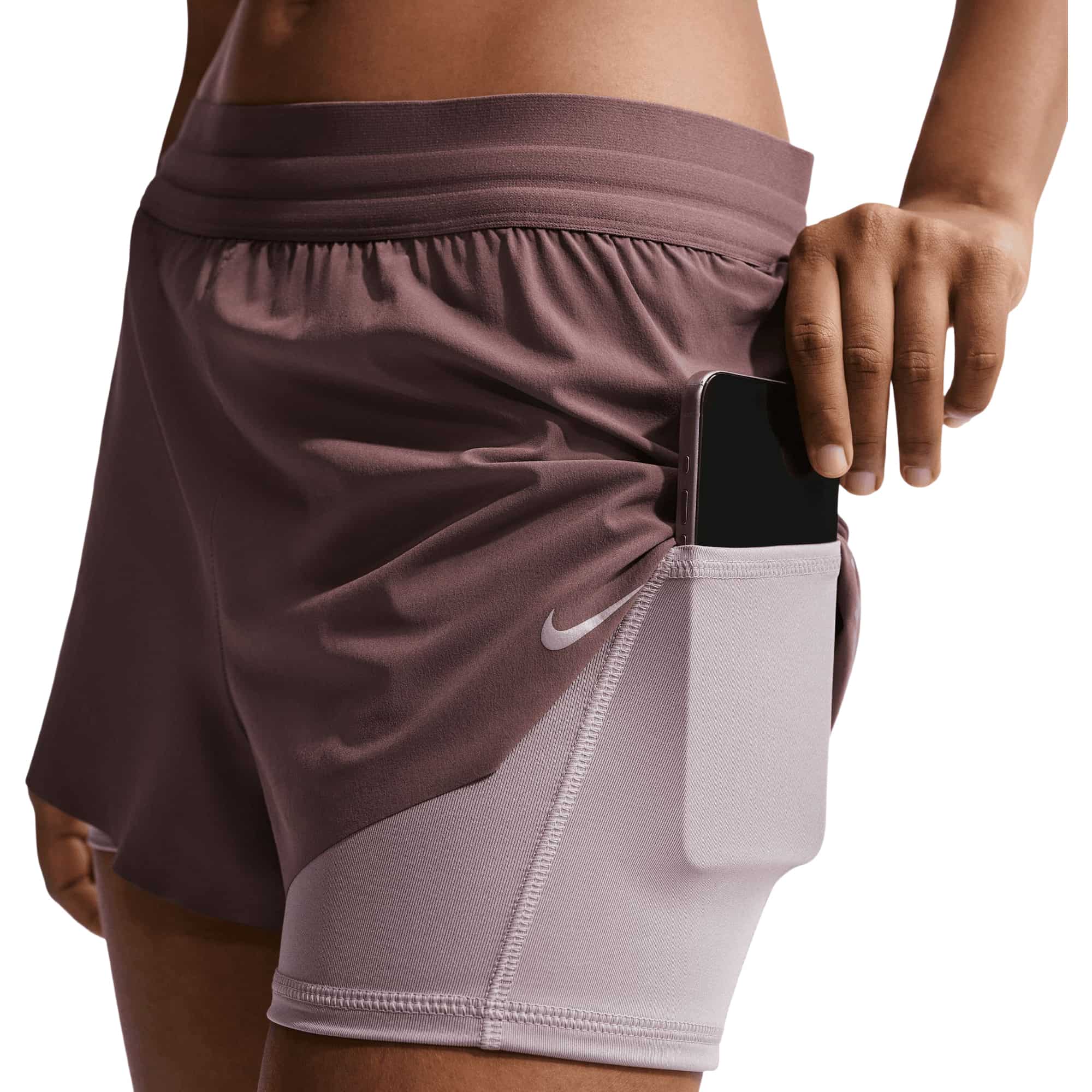 Die Nike Swift 2in1 Damen Laufshorts bieten durchdachte Funktionalität für dein Training. Die Kombination aus enger Innenshorts und lockerer Außenschicht sorgt für optimalen Tragekomfort, Halt und Schutz bei jeder Bewegung. Das leichte, elastische Material mit seitlichen Schlitzen ermöglicht uneingeschränkte Bewegungsfreiheit, während die Dri-FIT-Technologie Schweiß effektiv ableitet und für ein trockenes Tragegefühl sorgt. Praktische Einschubtaschen in den Innenshorts sowie eine Reißverschlusstasche am Bund bieten sicheren Stauraum – selbst für große Smartphones. Reflektierende Details an den Oberschenkeln erhöhen die Sichtbarkeit bei Dunkelheit.